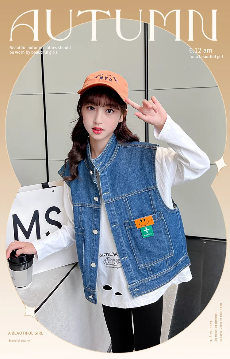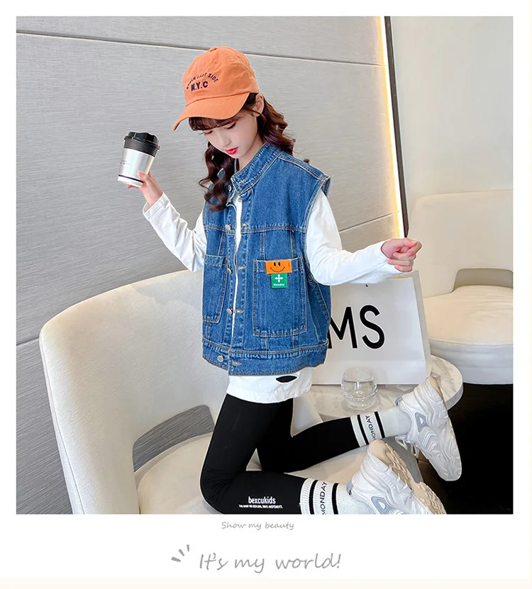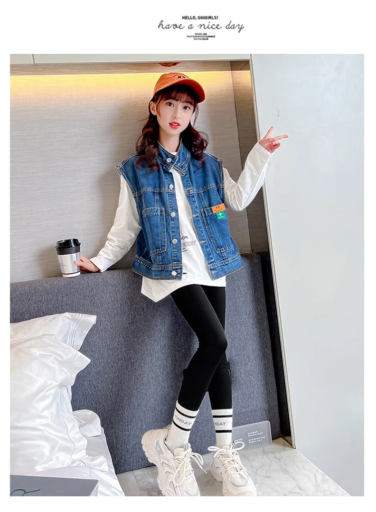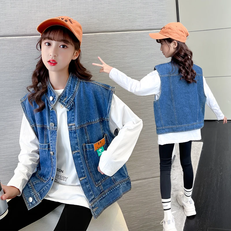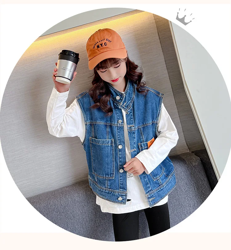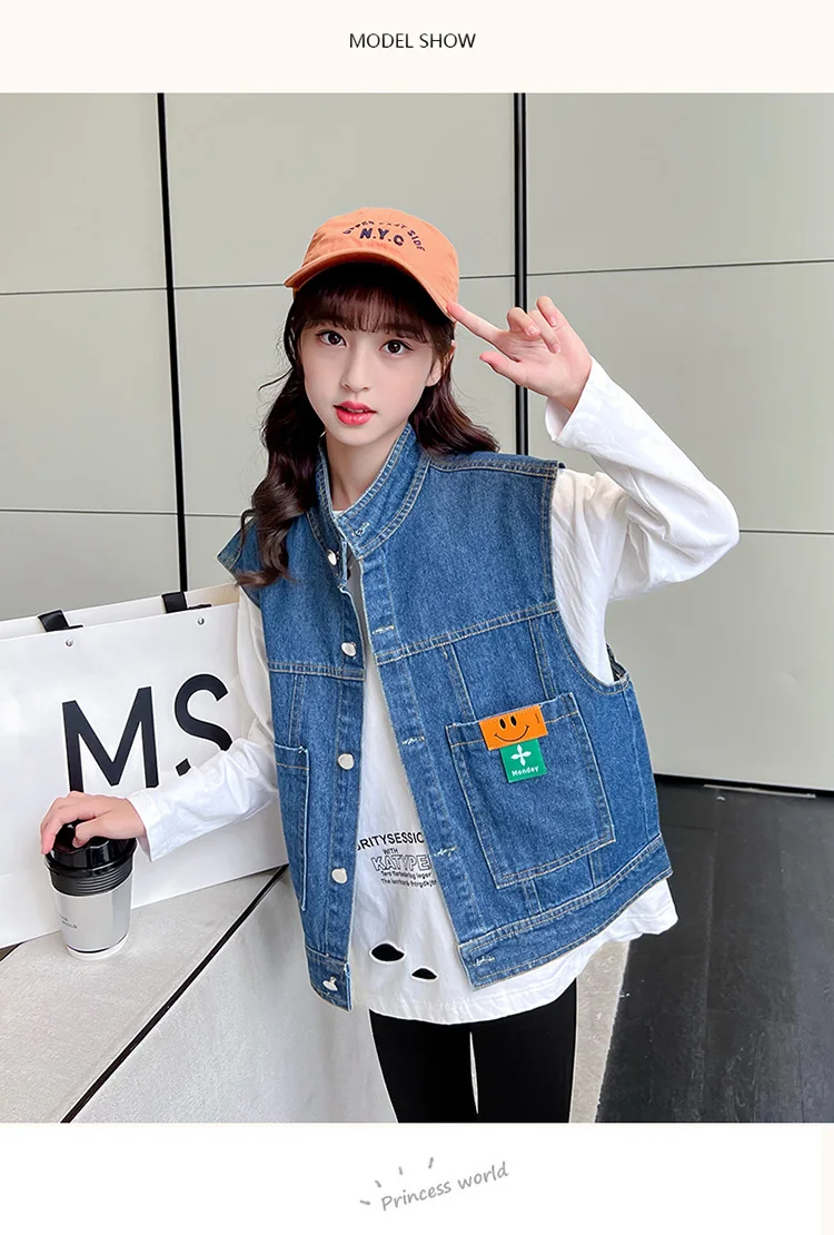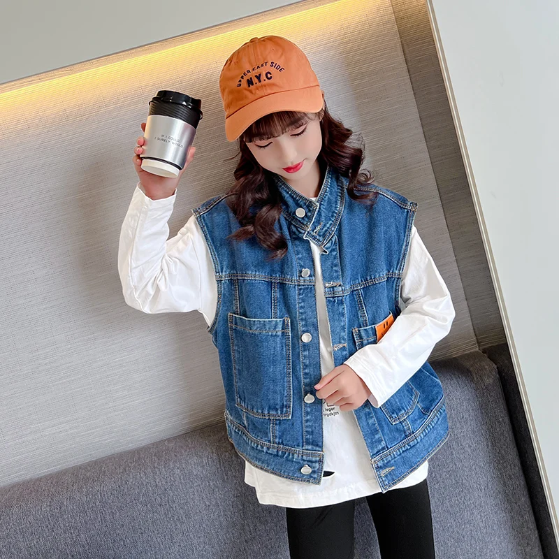 Girls Denim Vest Kids Clothing Spring Autumn Casual Jeans Vest Sleeveless Jacket Outerwear Toodler Babys Tops Children Clothes