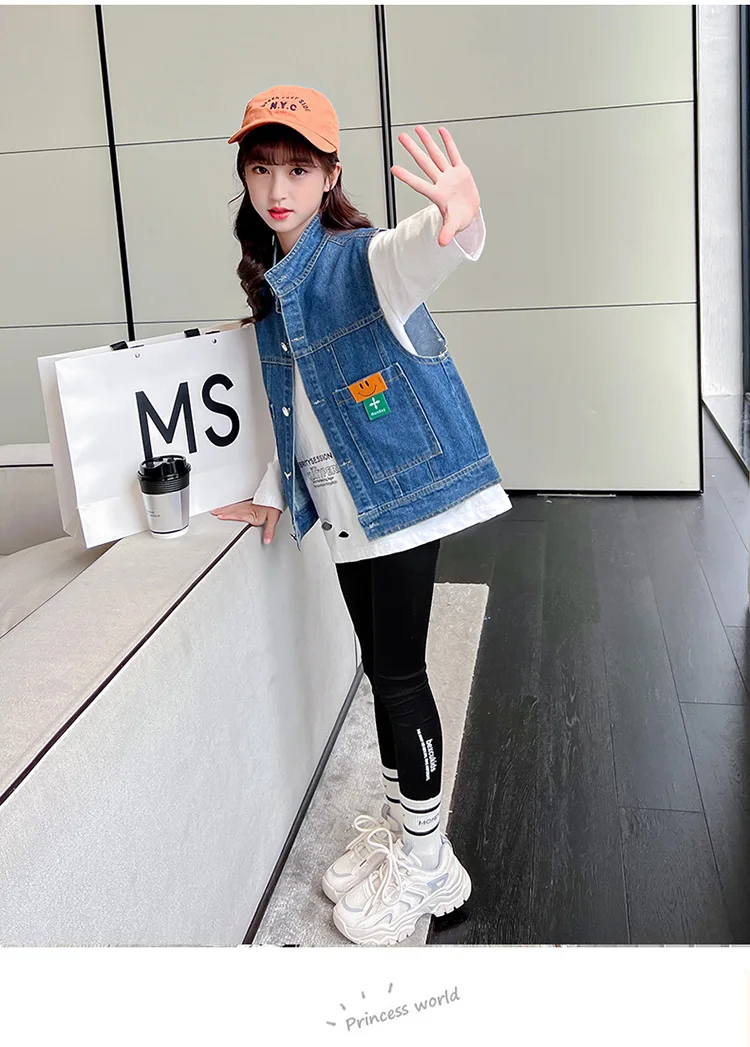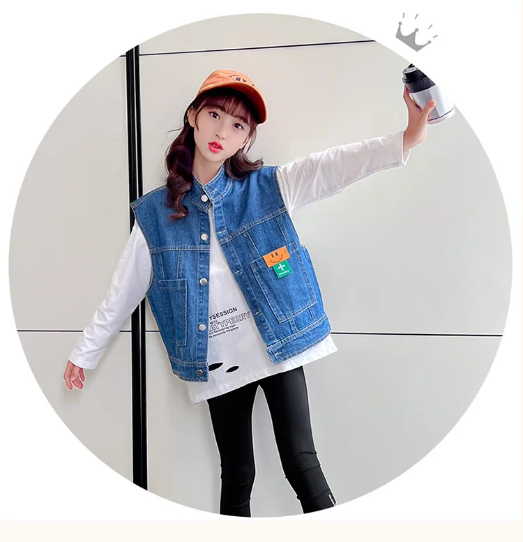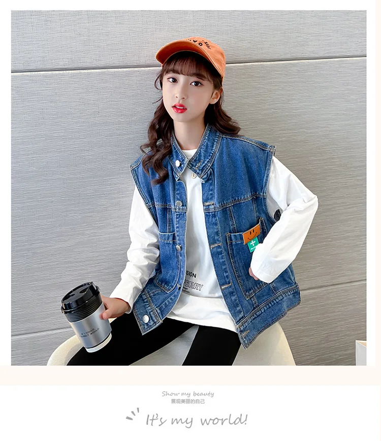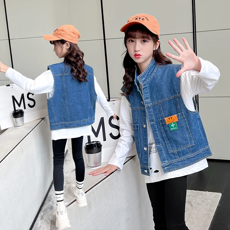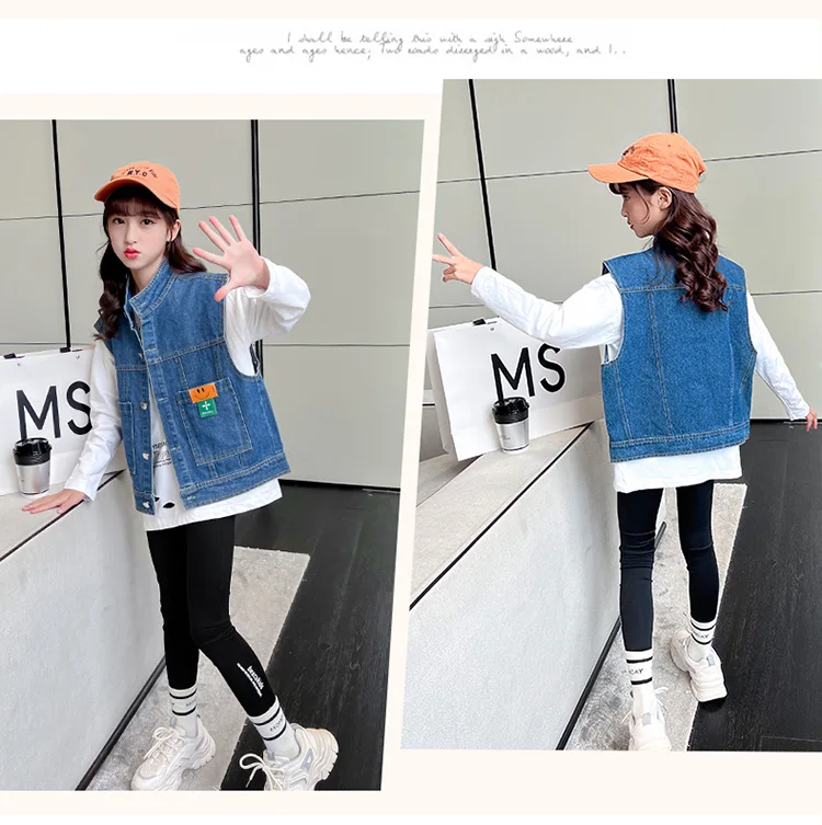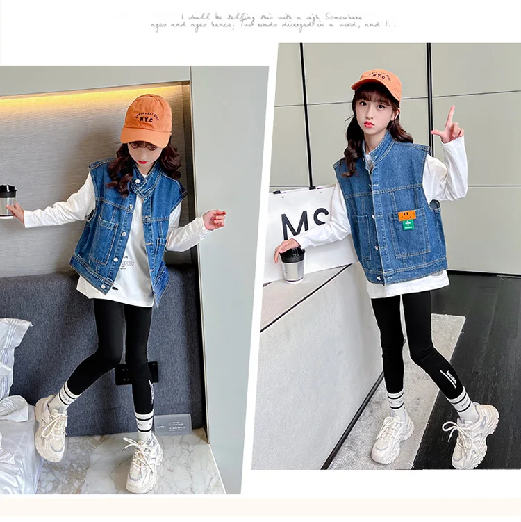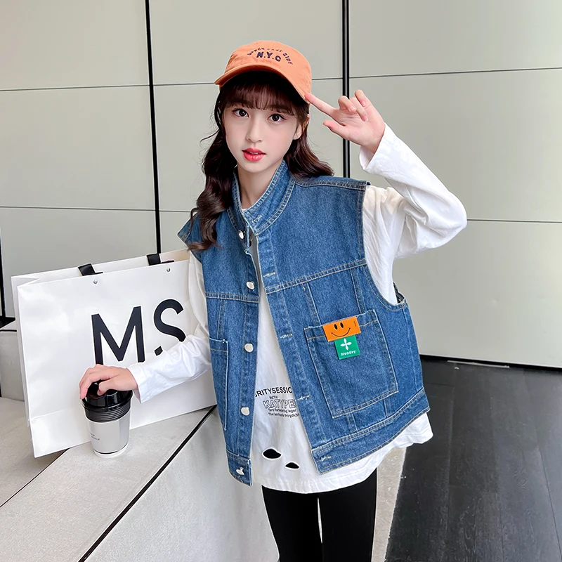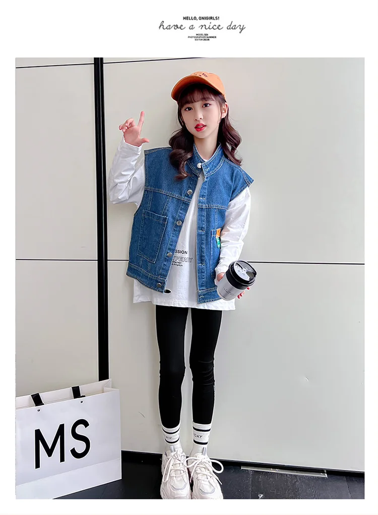 Girls Denim Vest Kids Clothing Spring Autumn Casual Jeans Vest Sleeveless Jacket Outerwear Toodler Babys Tops Children Clothes