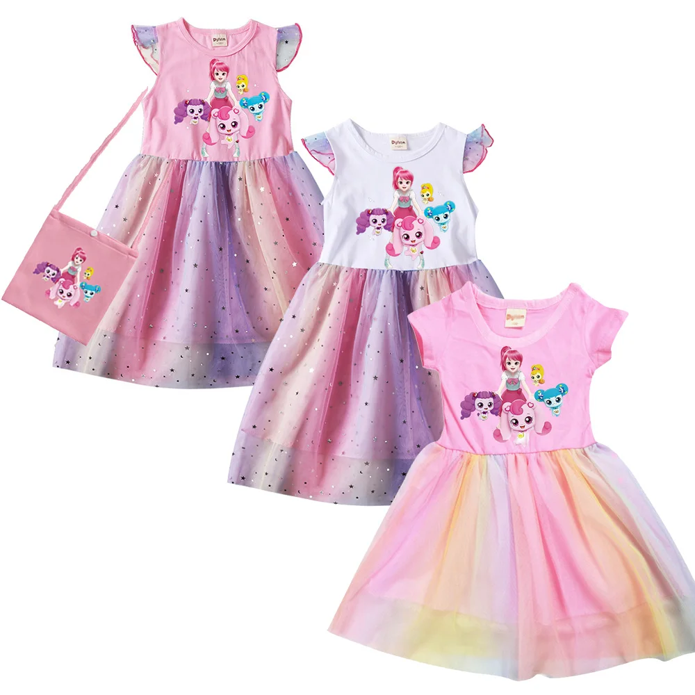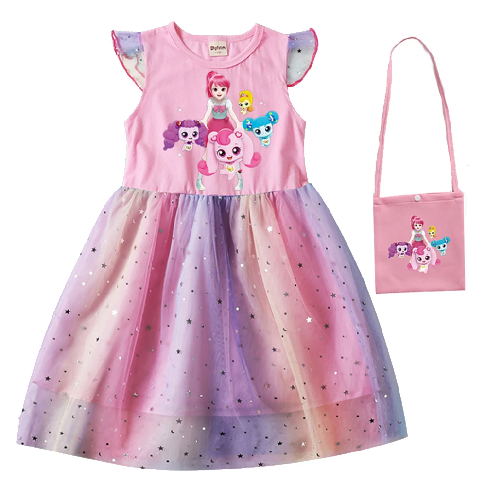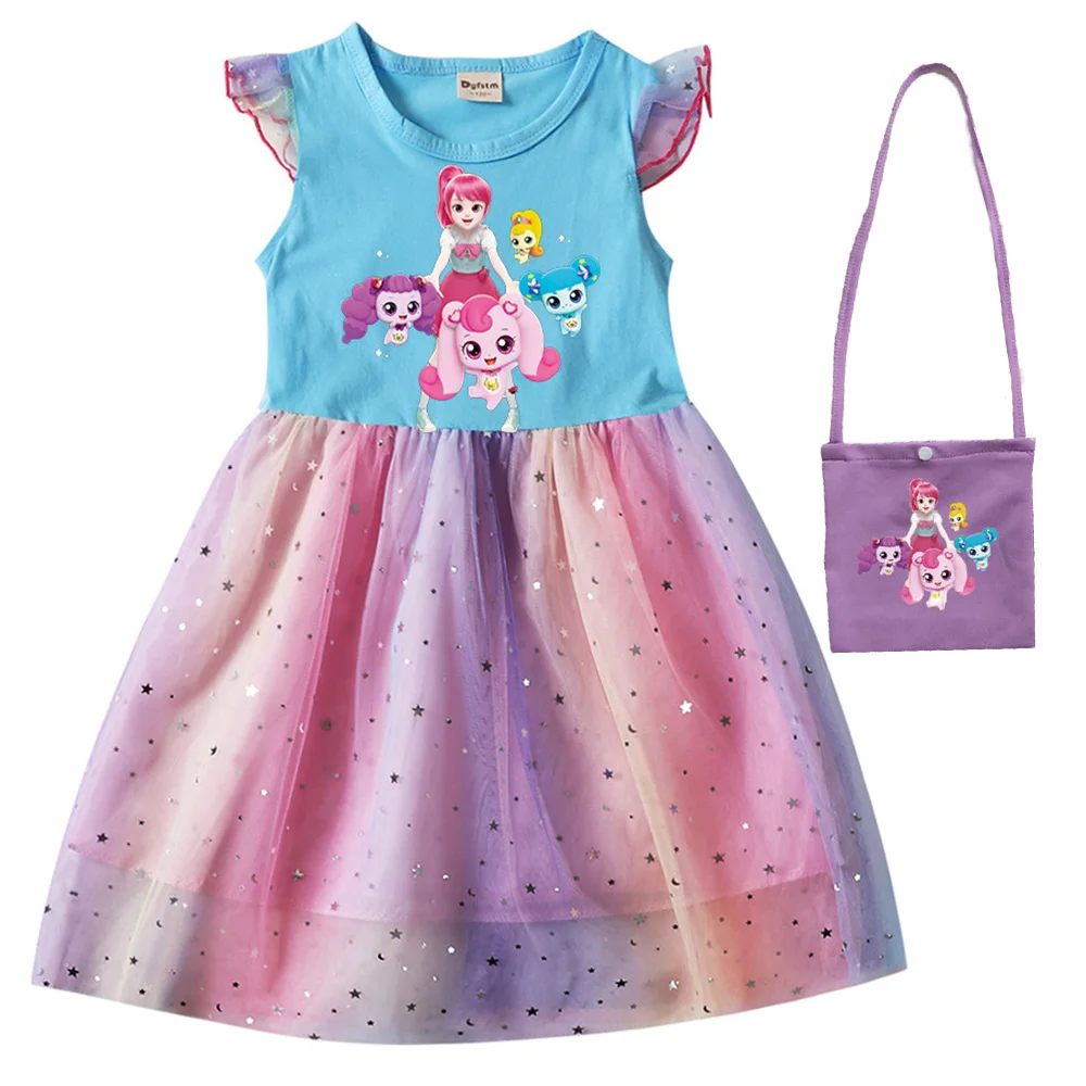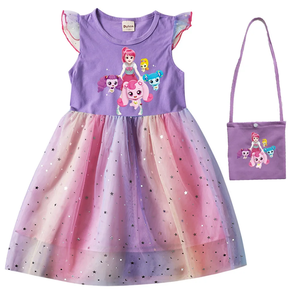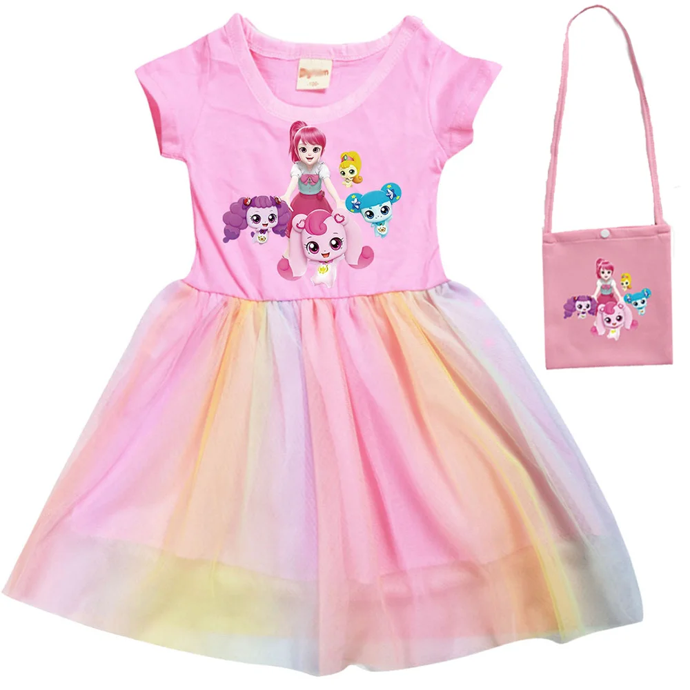 Girls Dress 2023 Summer 티니핑 Fashion Children’s Teenieping Princess Baby Girl Toddler Short Sleeve Cute Party Dresses Free Bag
