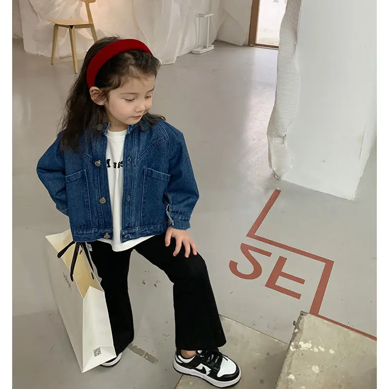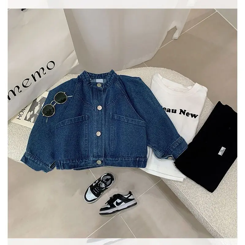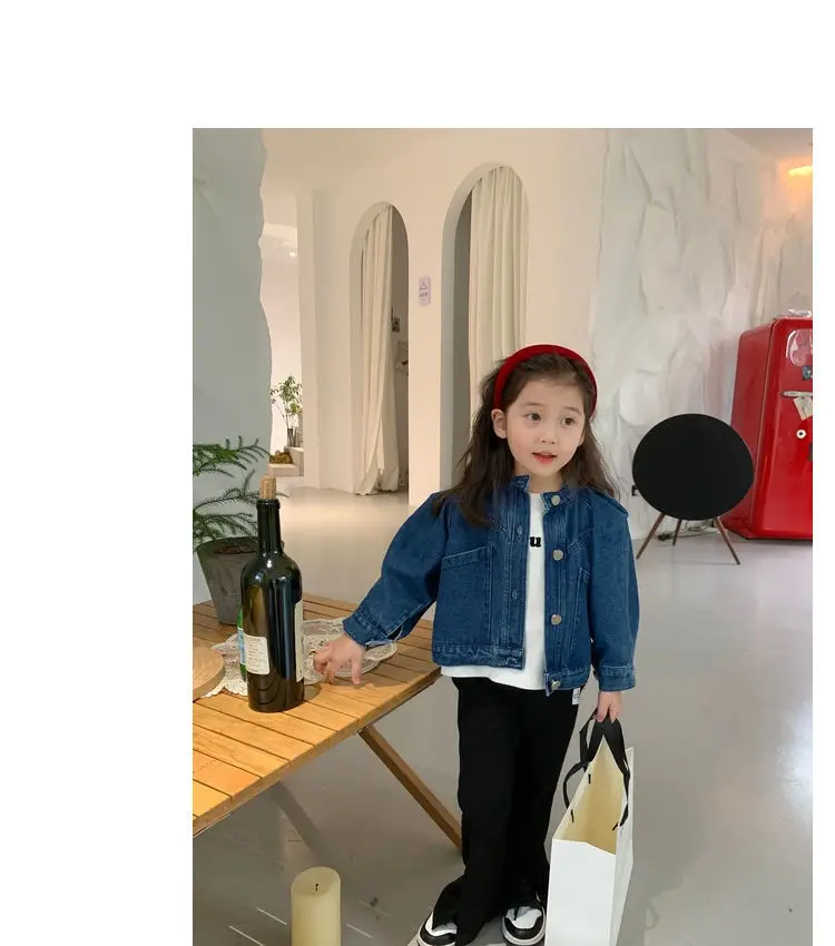 Girls’ Jean Jacket Spring and Autumn 2024 New Children’s Korean Fashion Baby Casual Denim Outerwear Top