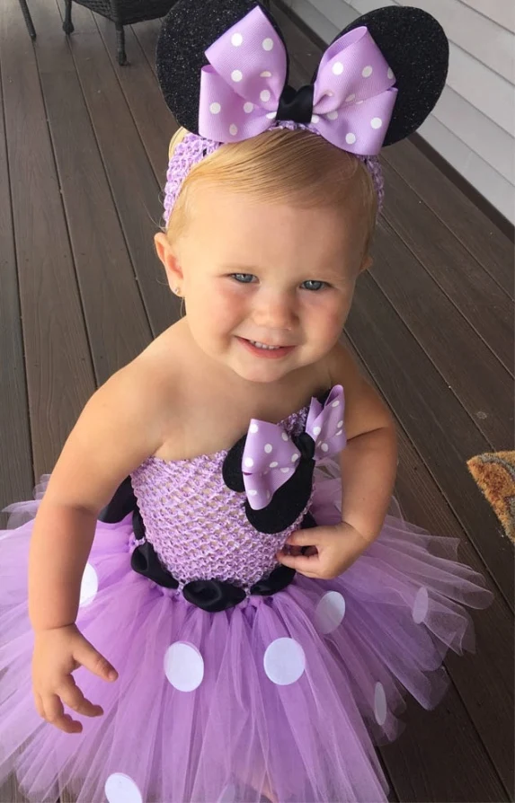 Cute Baby mickey tutu dress cosplay tulle cartoon dress with hairbow,