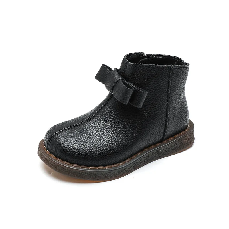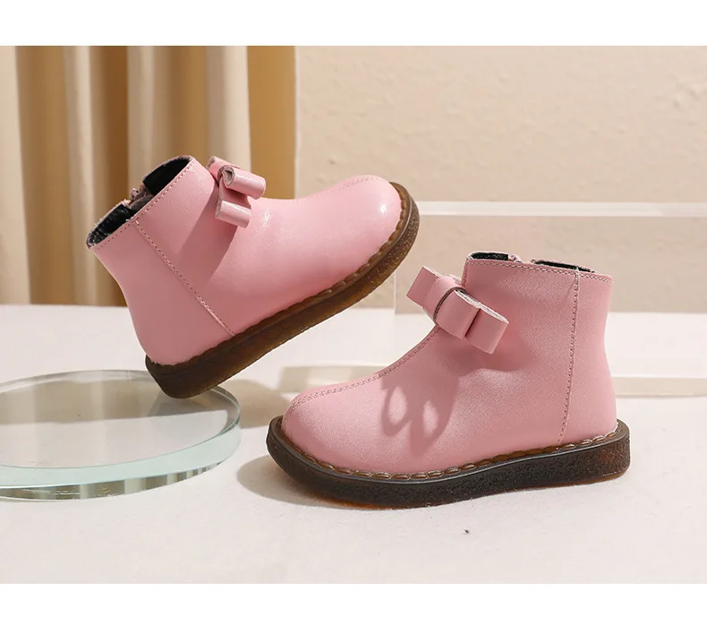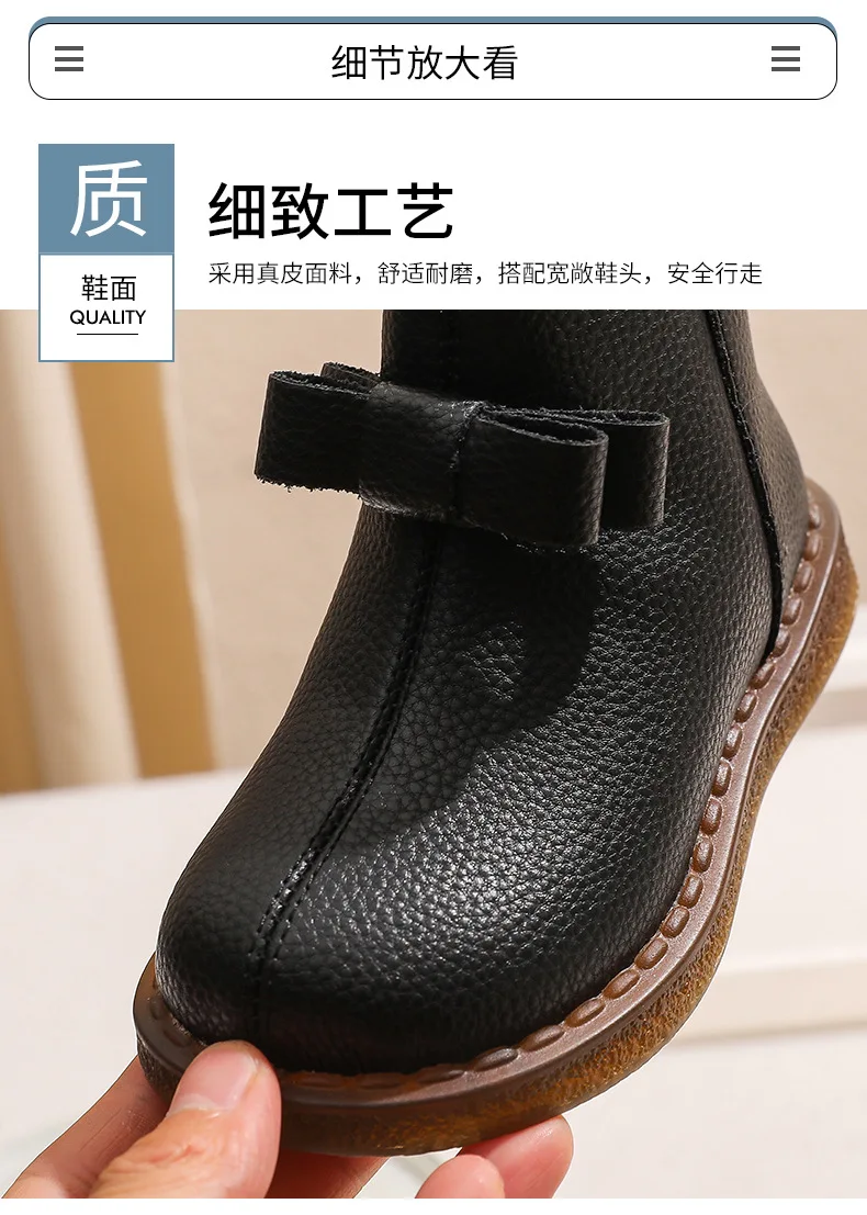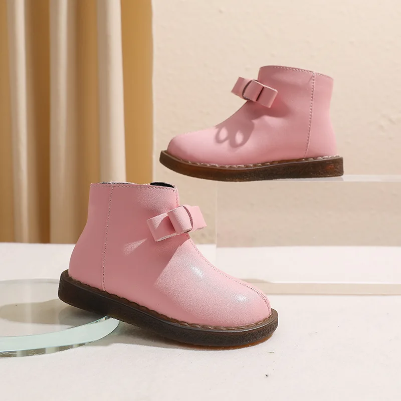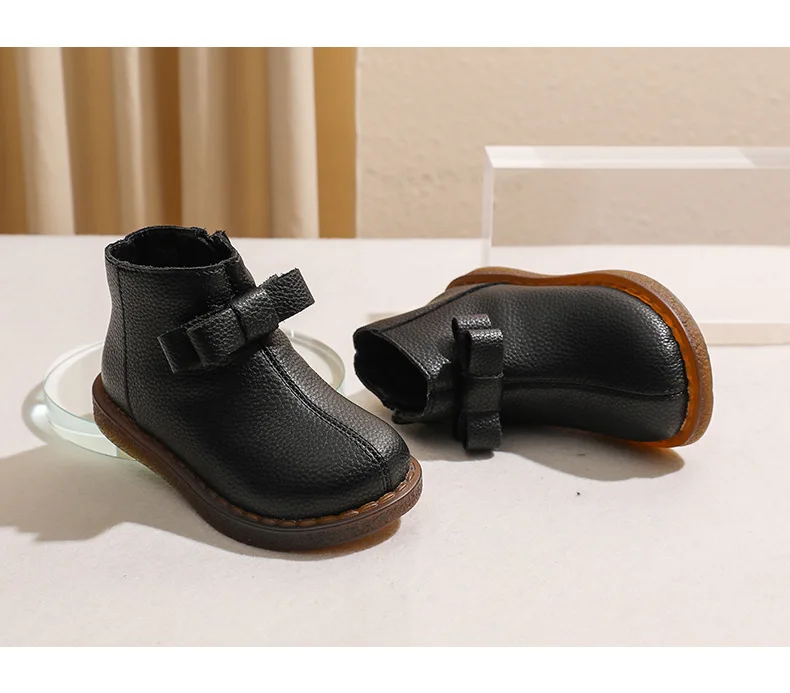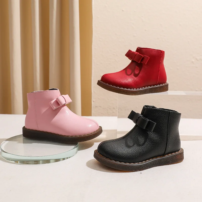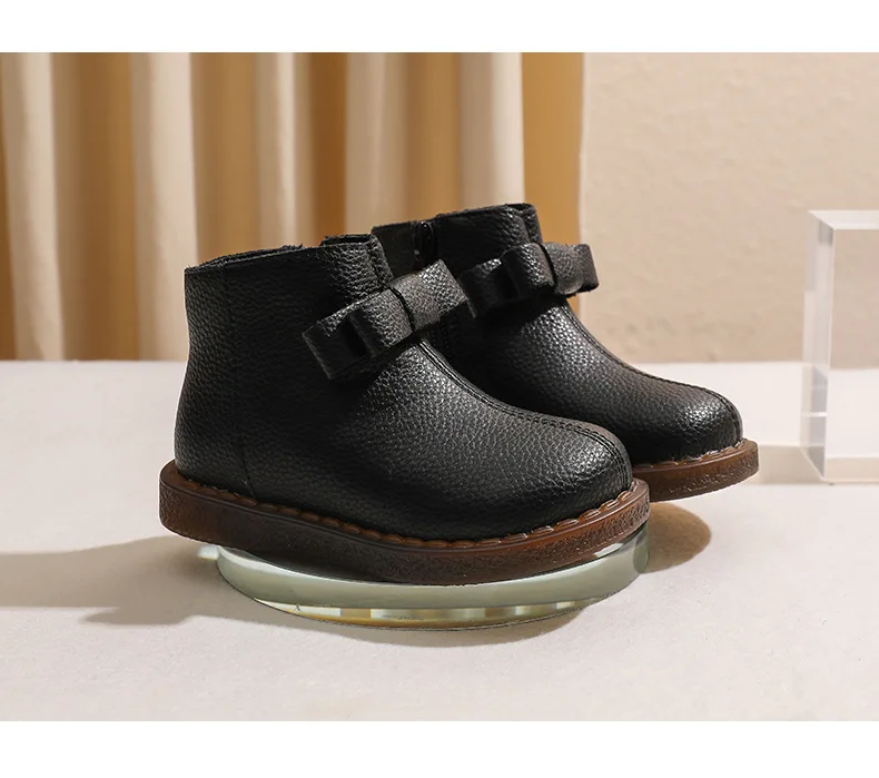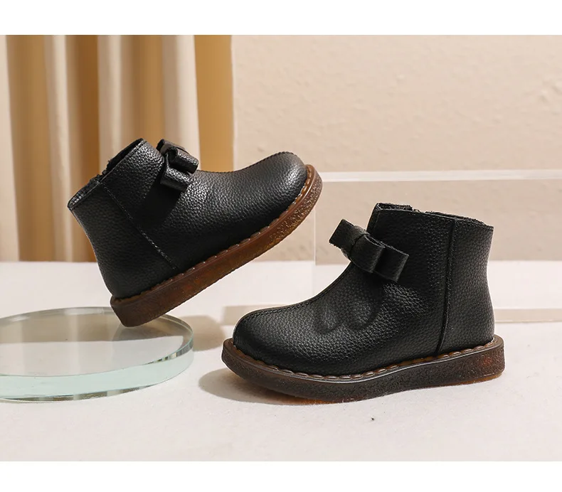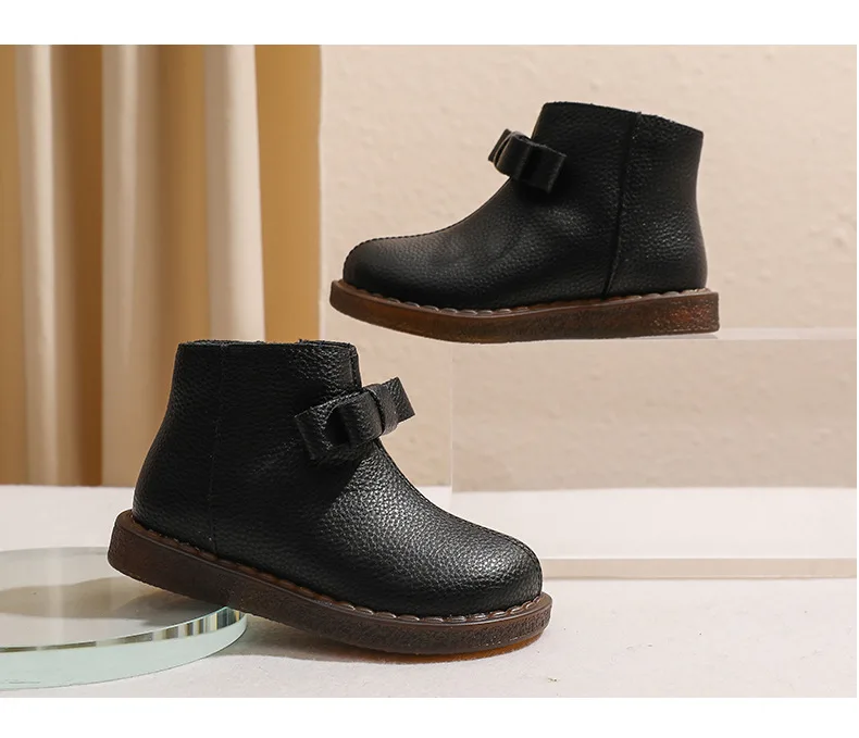 Girls’ Short Boots Bowtie Genuine Leather Autumn Girls’ Ankle Boots Children’s Winter Boot Baby Soft Soled Princess Shoes