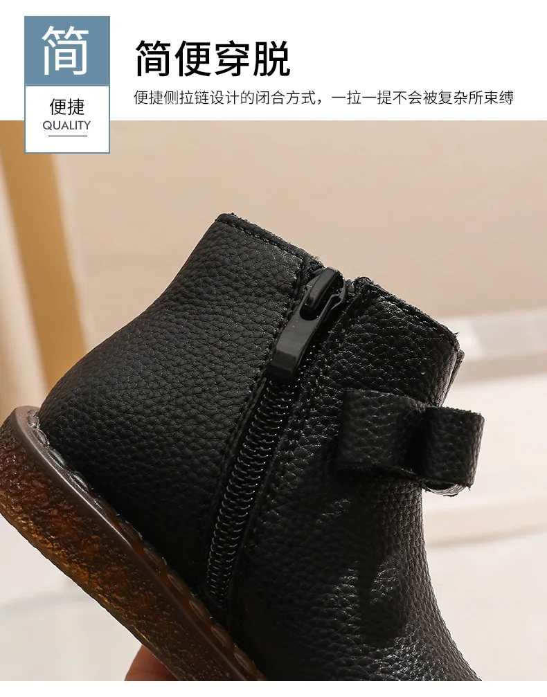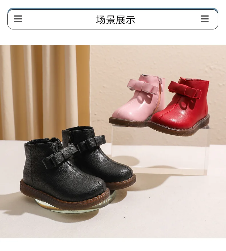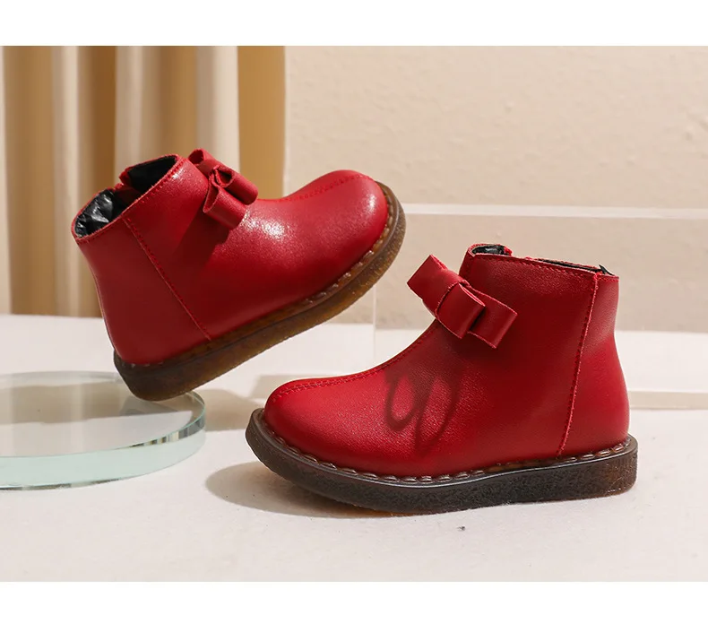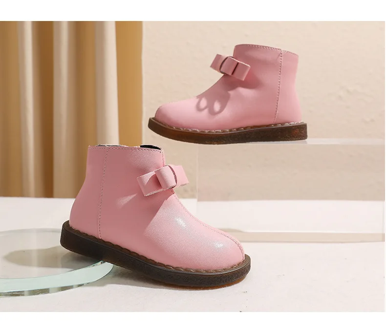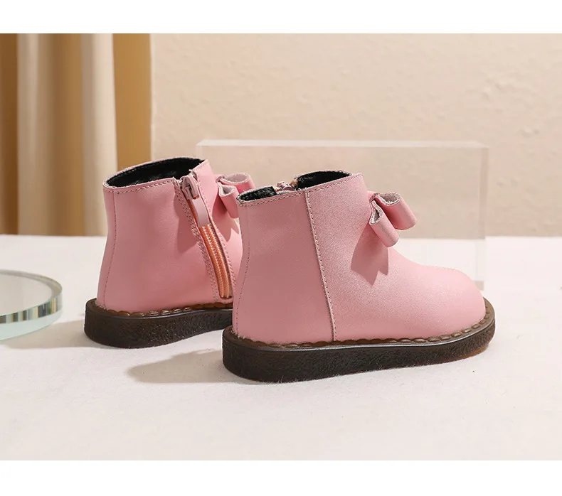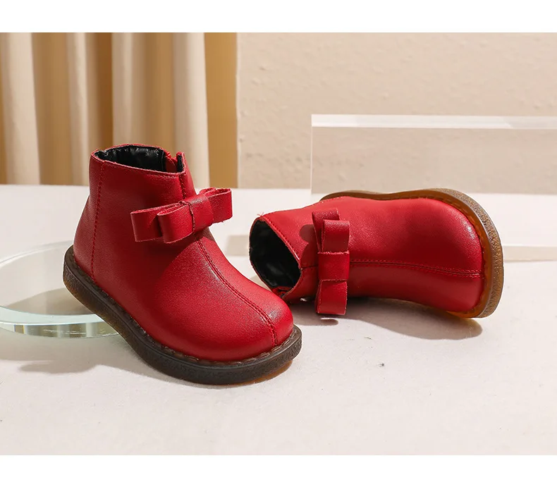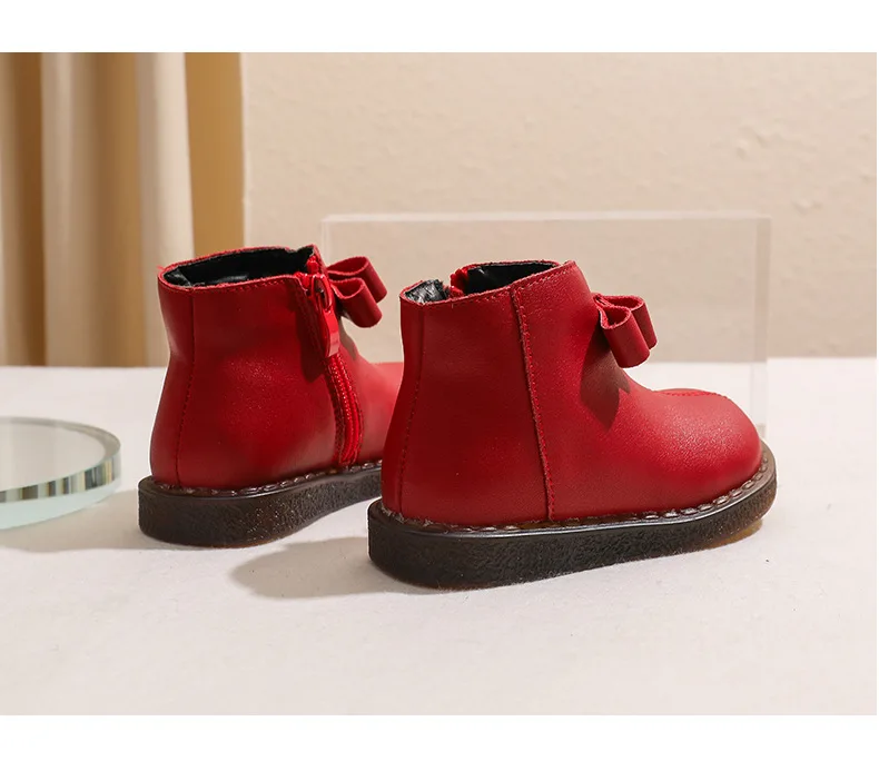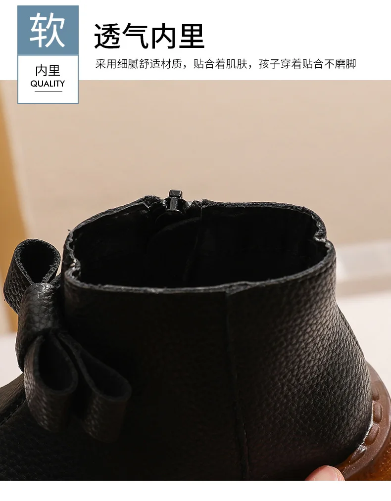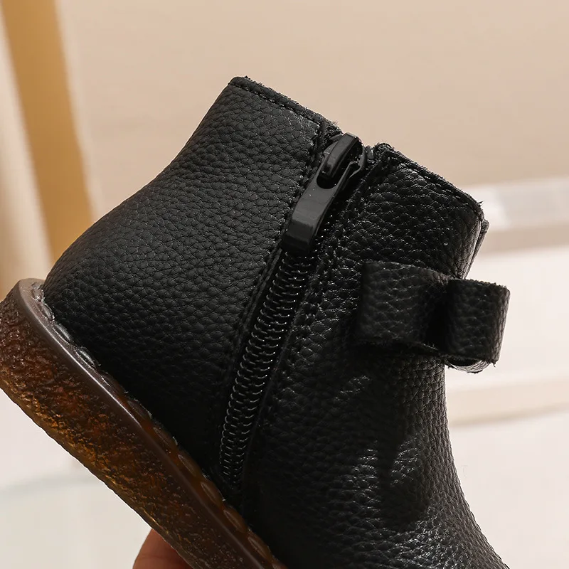 Girls’ Short Boots Bowtie Genuine Leather Autumn Girls’ Ankle Boots Children’s Winter Boot Baby Soft Soled Princess Shoes