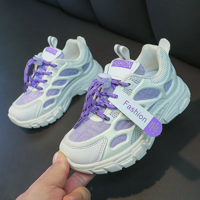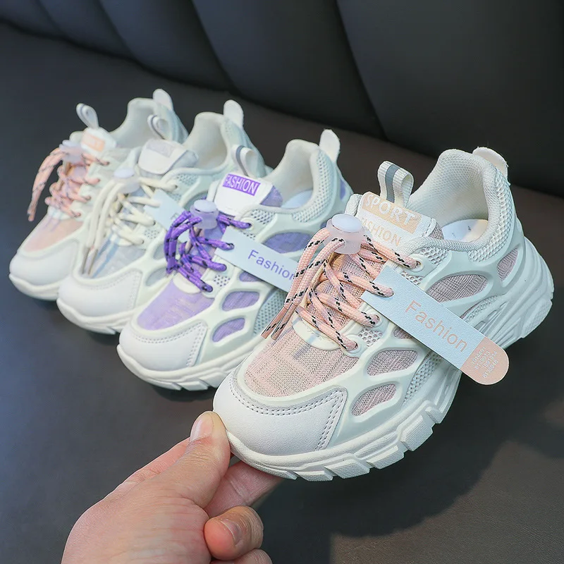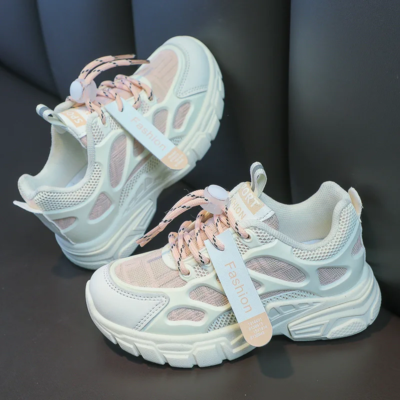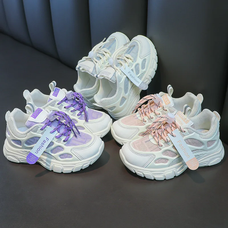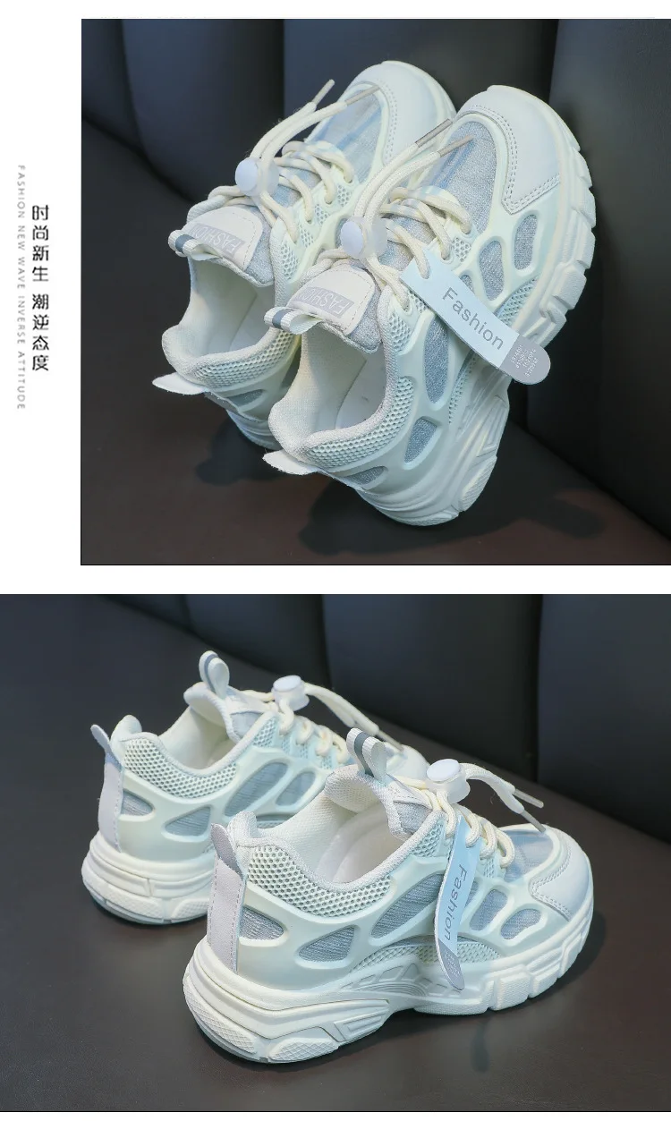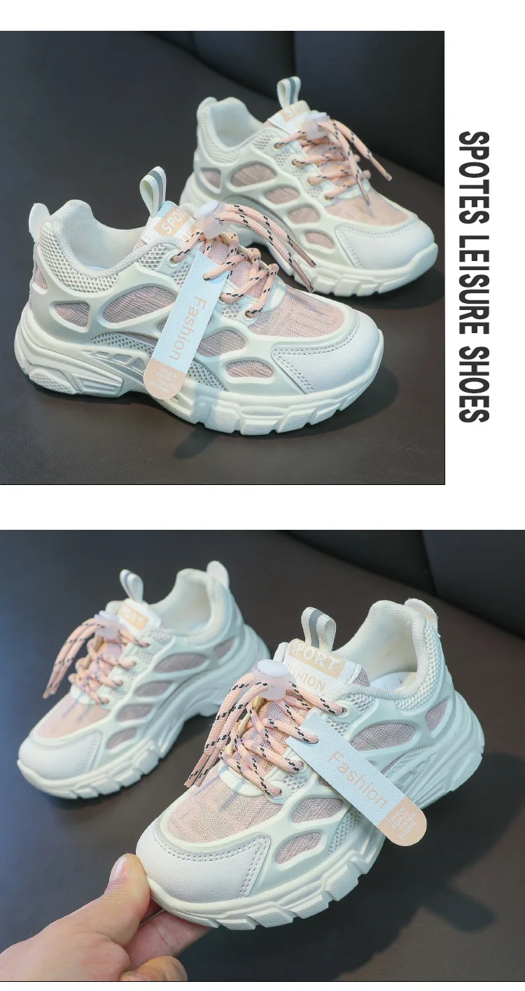 Girls Sneakers Children Shoes Breathable Mesh Light Sport Thick Bottom Tennis Running Shoes Girl Grey Shoes Kids Zapatilla