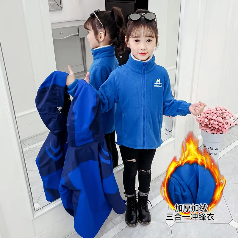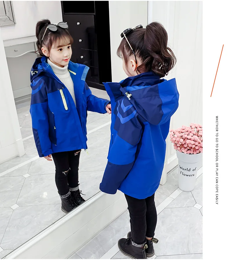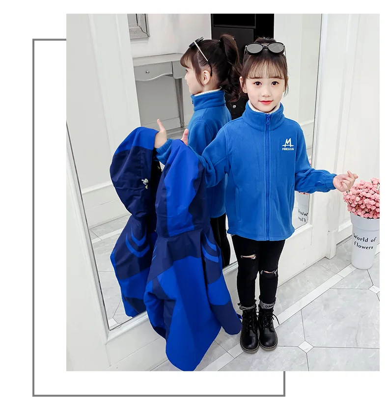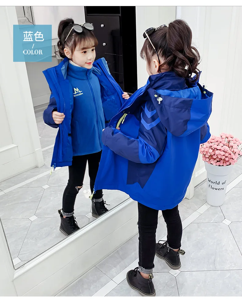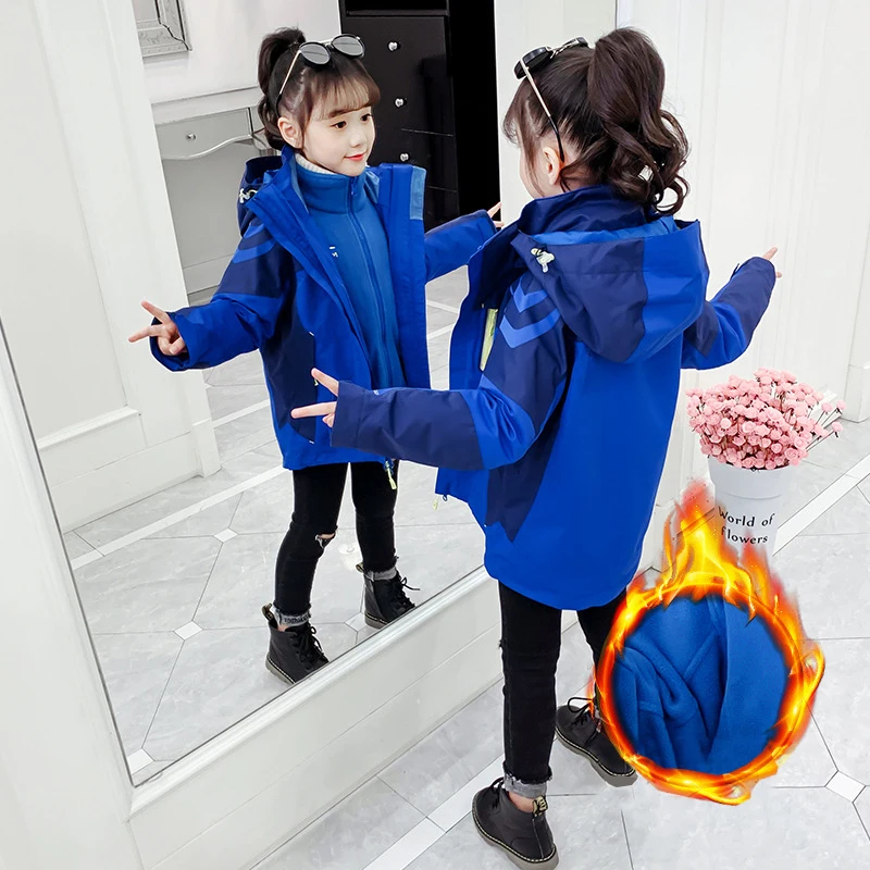 Girls’ Winter Thick Jacket Outwear Water Proof Kids Thickened Removable Liner Coat Girl Sports Uniform Snow Wear Outdoor Jackets