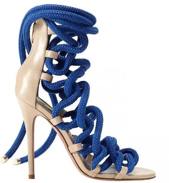 Gladiator Sandals Women Pumps Luxury Designer Rope Lace Up Strappy High Heels Sandalia Braided Leather Summer Shoes Woman 2020
