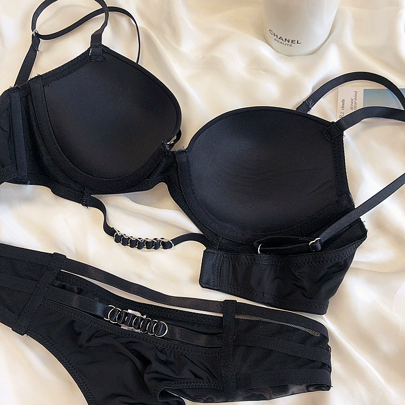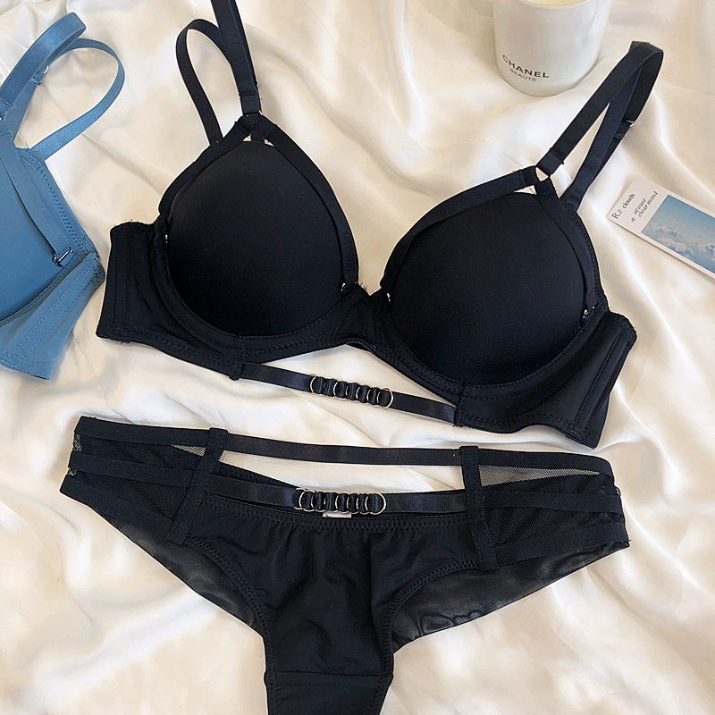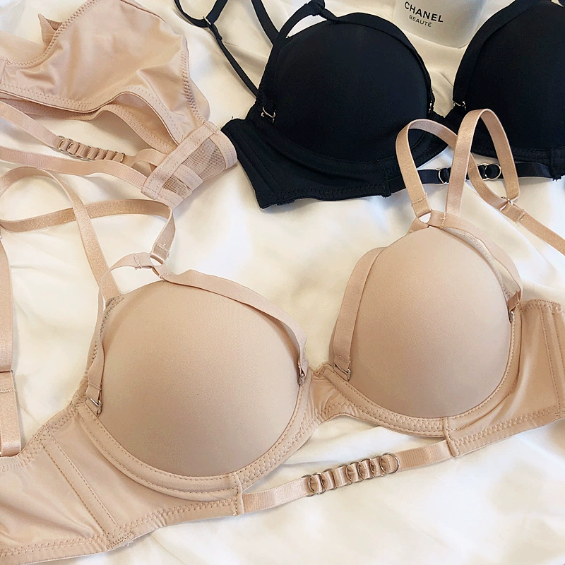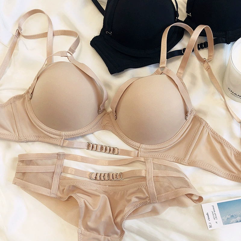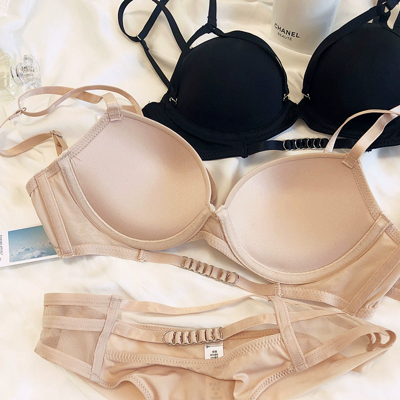Glossy sexy straps bralette upper thin lower thick gathered paired breasts anti-sagging bra soft steel ring underwear set