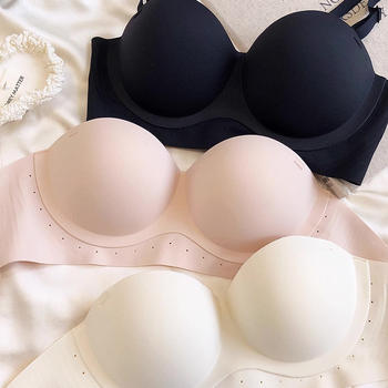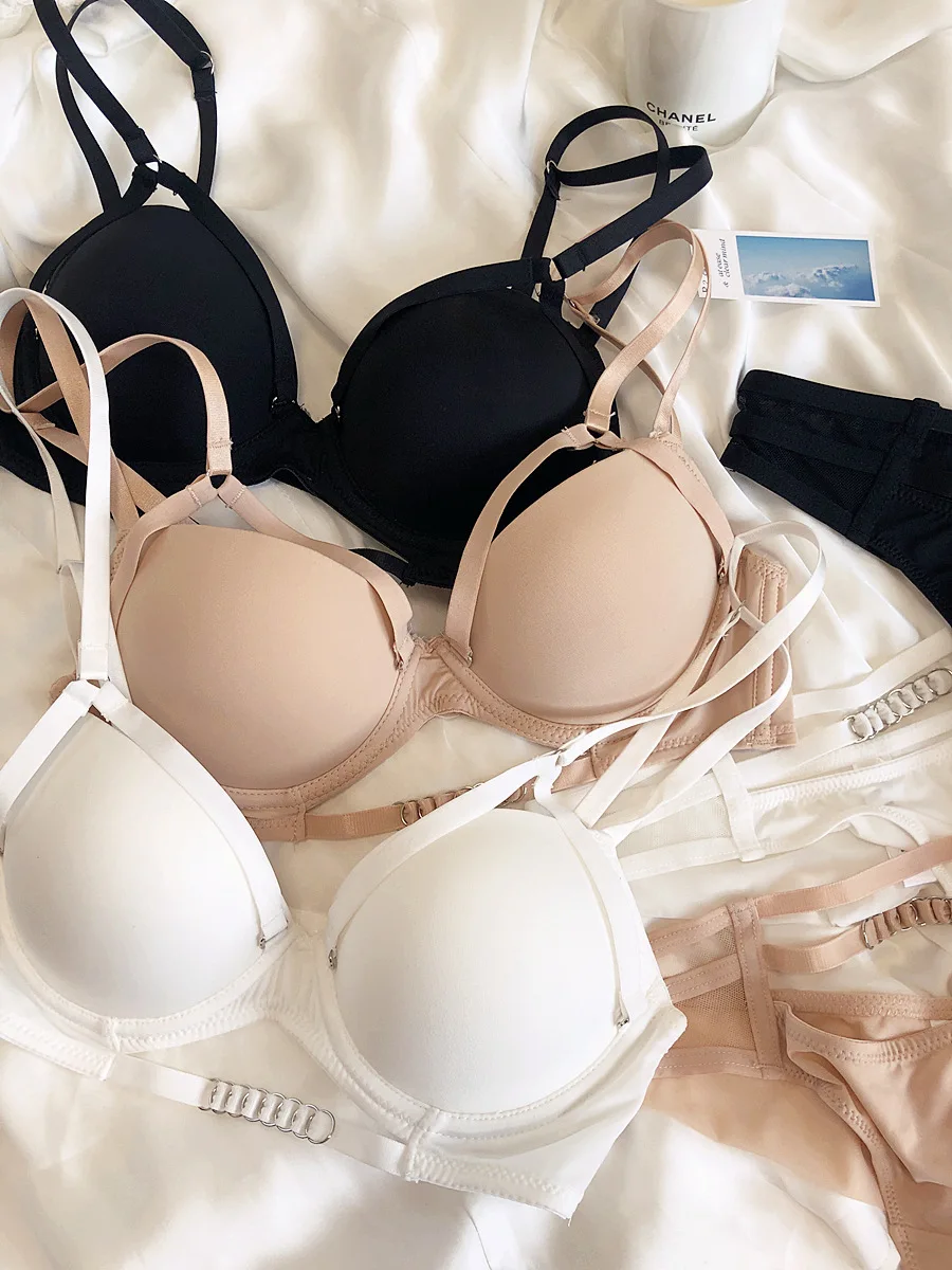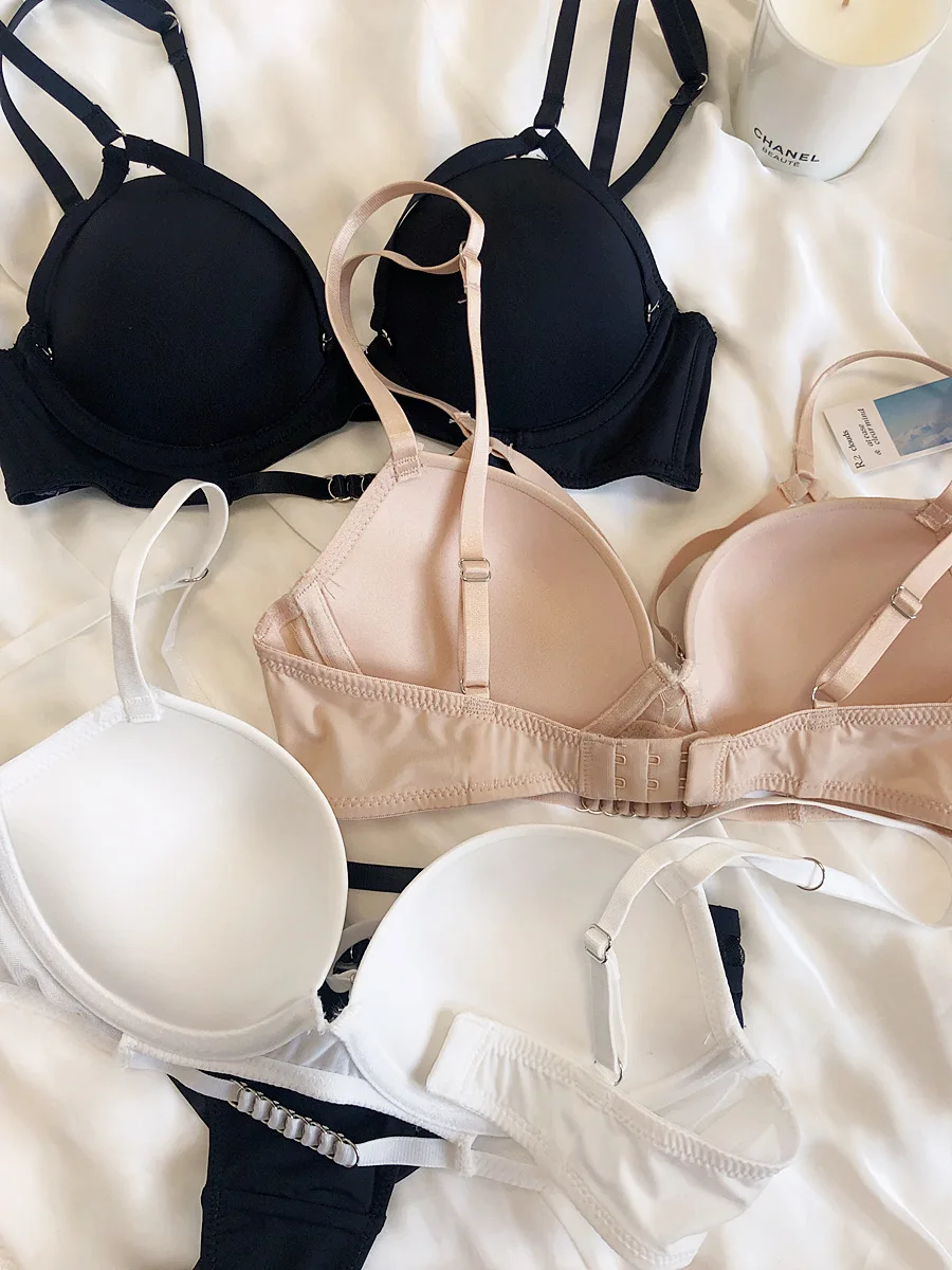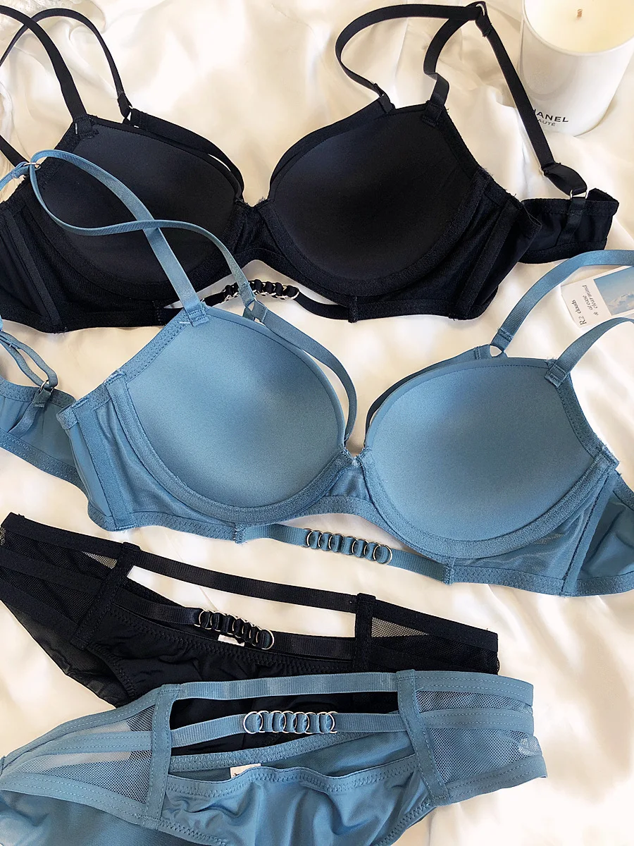 Glossy sexy straps bralette upper thin lower thick gathered paired breasts anti-sagging bra soft steel ring underwear set