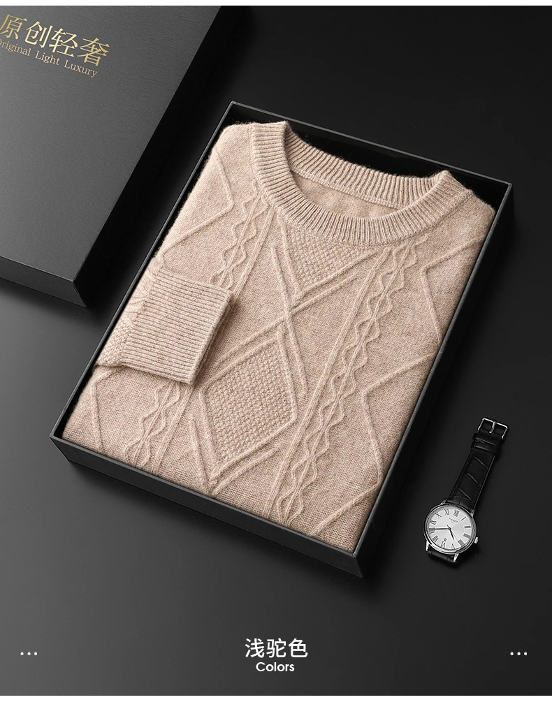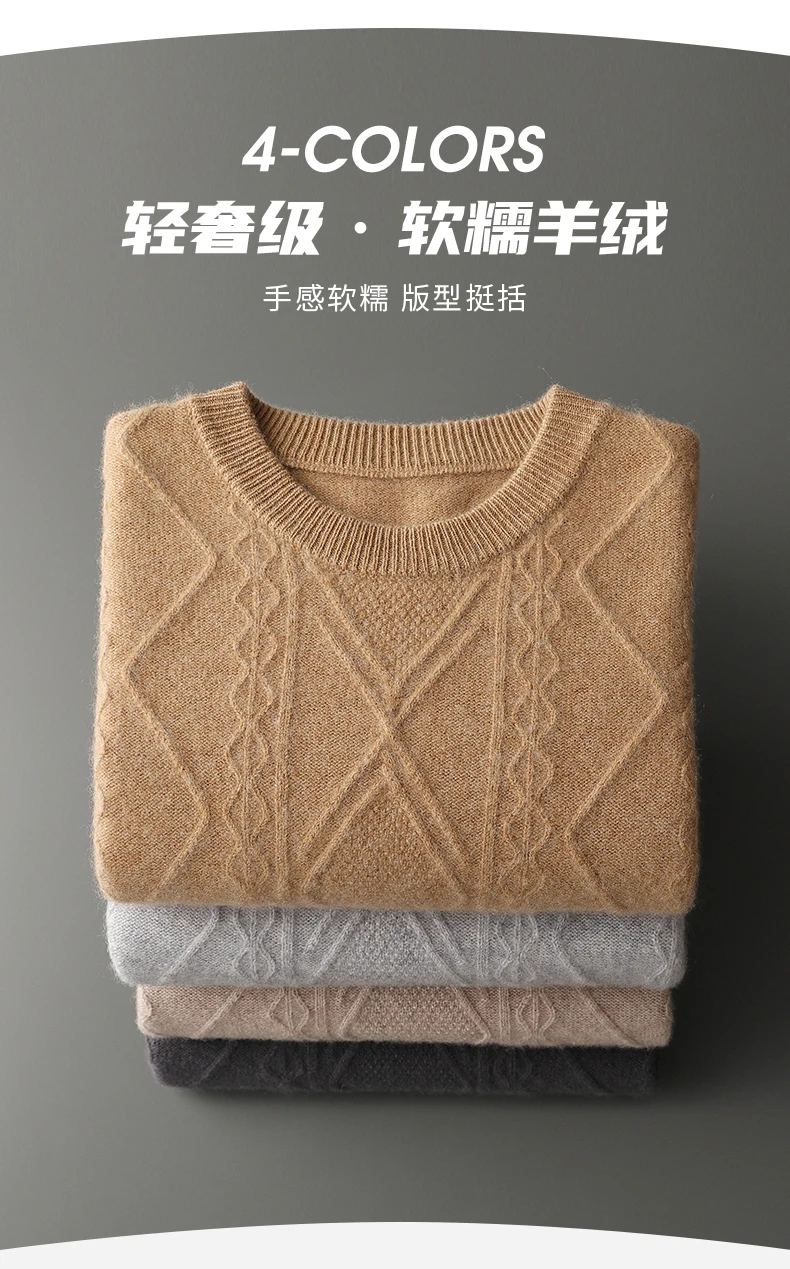 Goat Cashmere Sweaters High Stretch Knitted Soft Warm Men Pullovers 2023 Winter Male Fashion Loose Casual Tops DX01