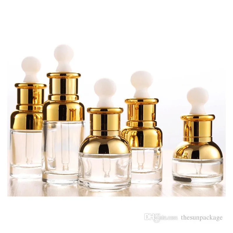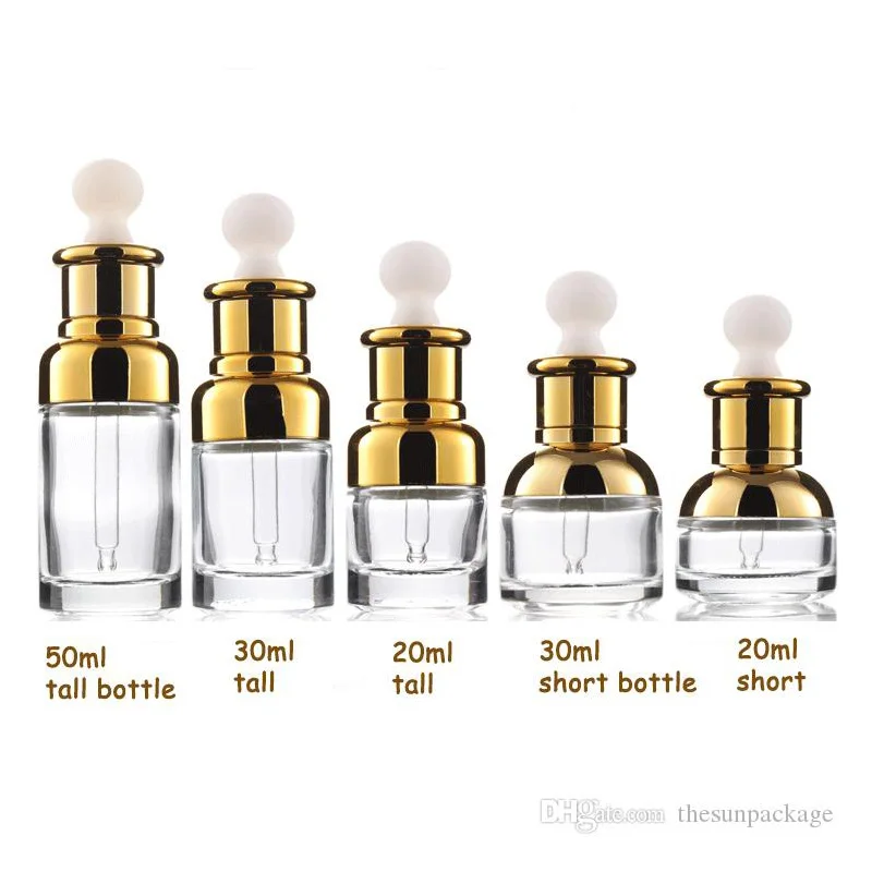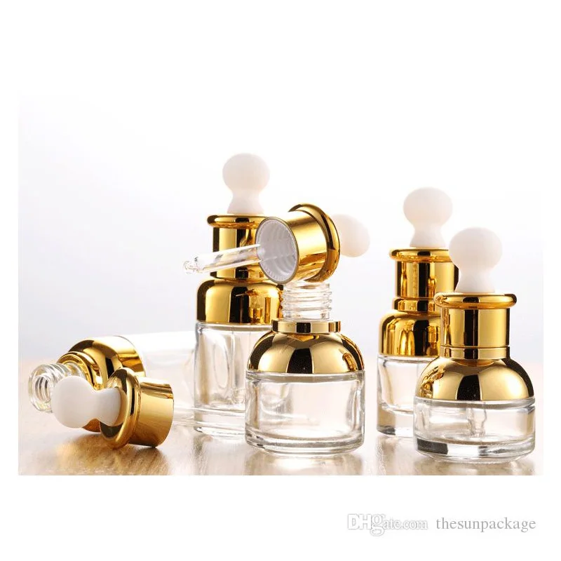Gold Glass Dropper Bottle 20 30 50ml Luxury Serum Bottle with Gold Cap for Essential Oil