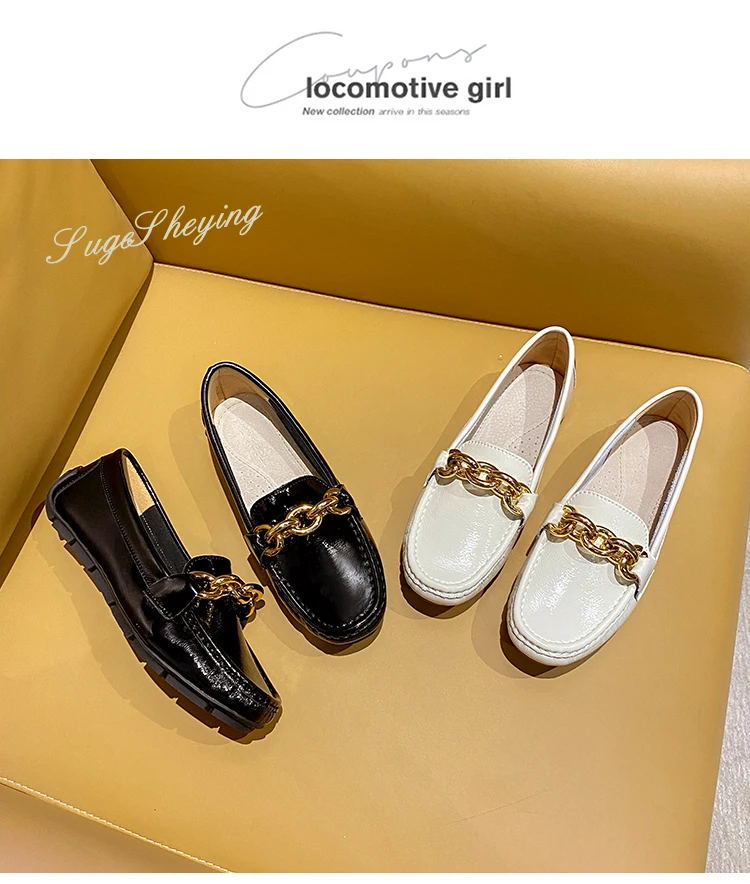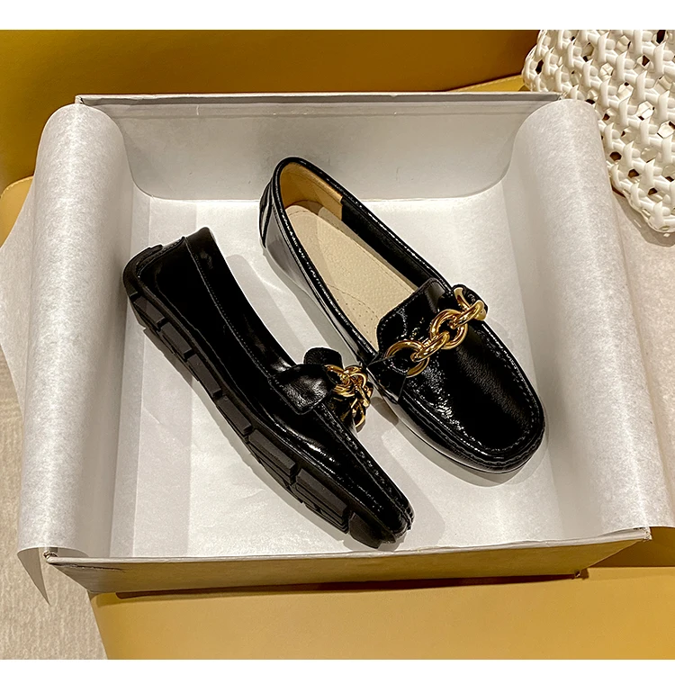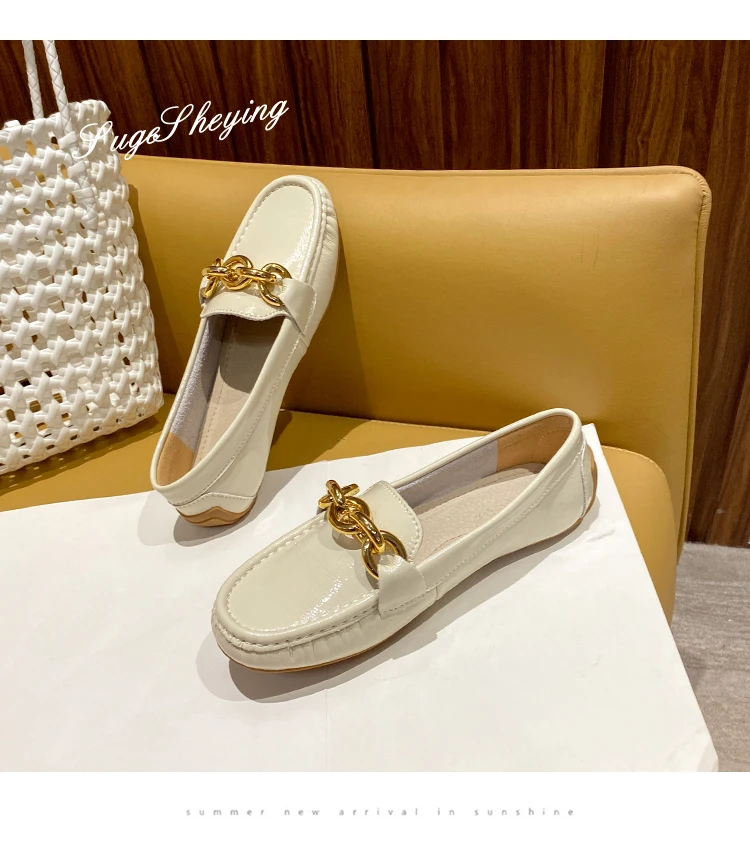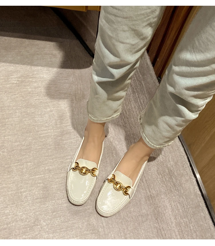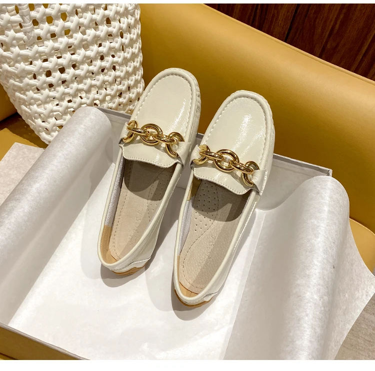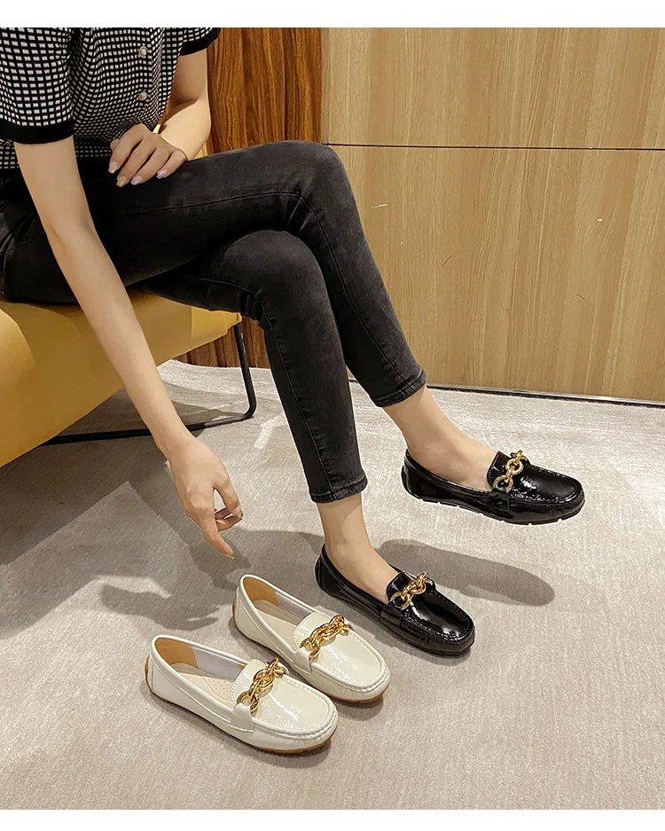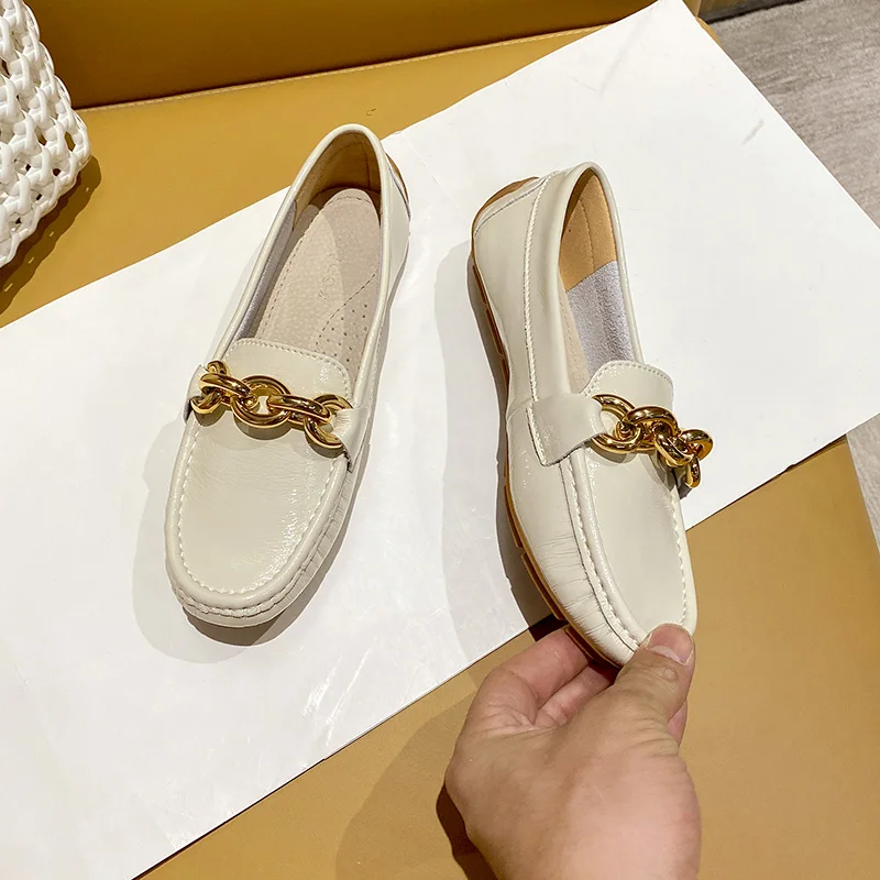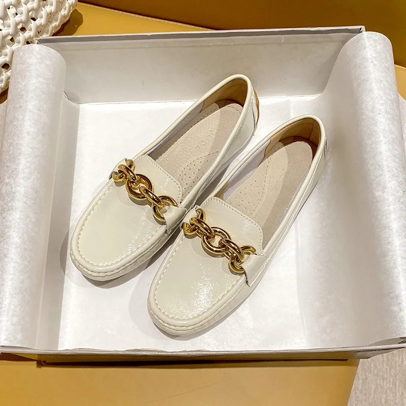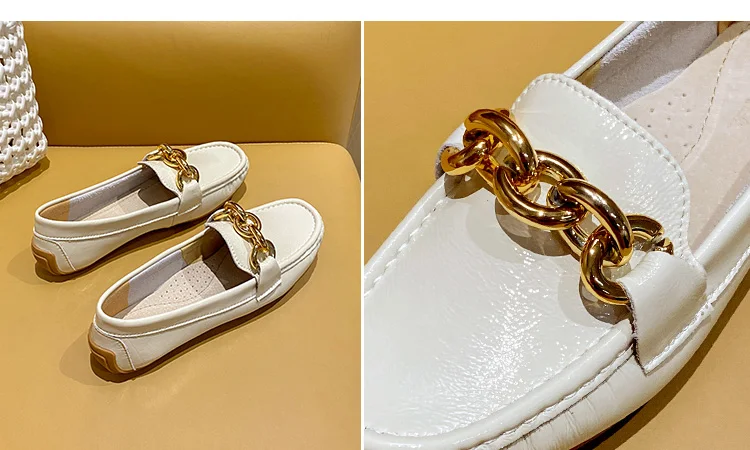Brand Metal Chain Moccasins Femmes Genuine Leather Flats
