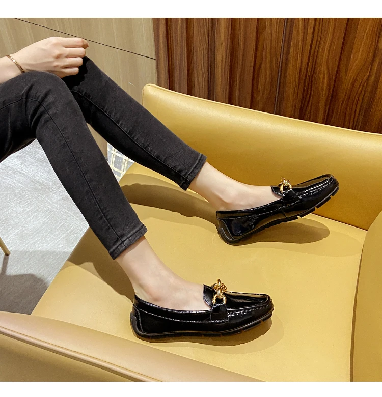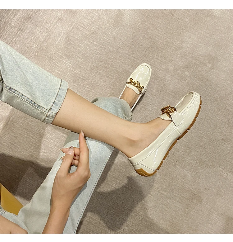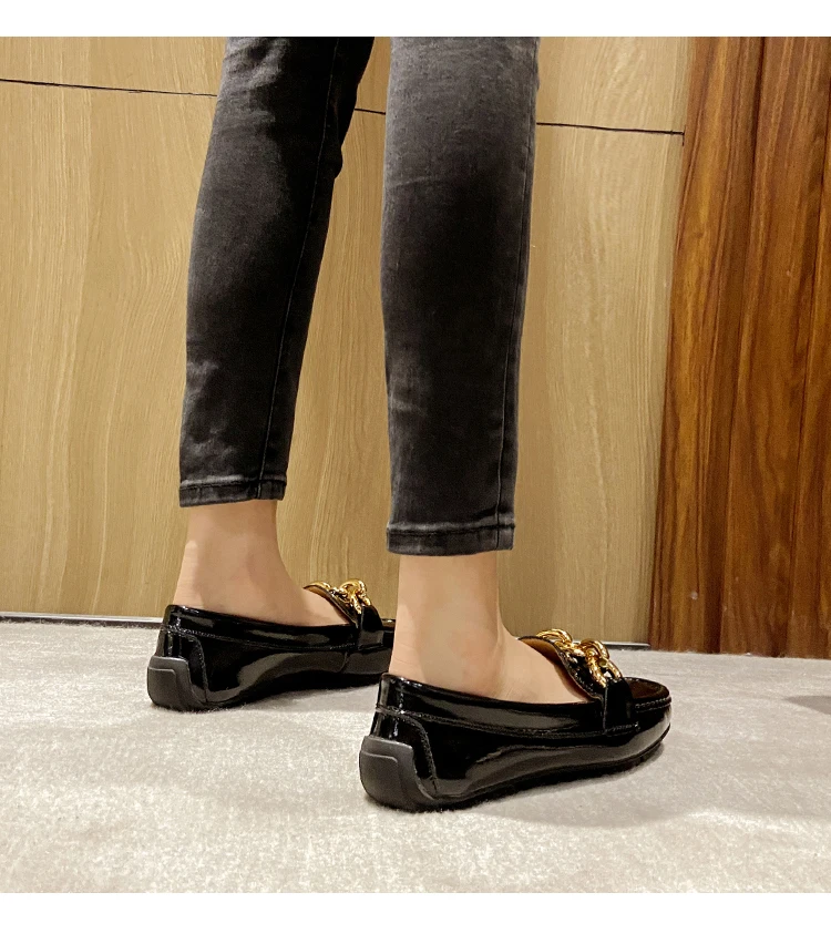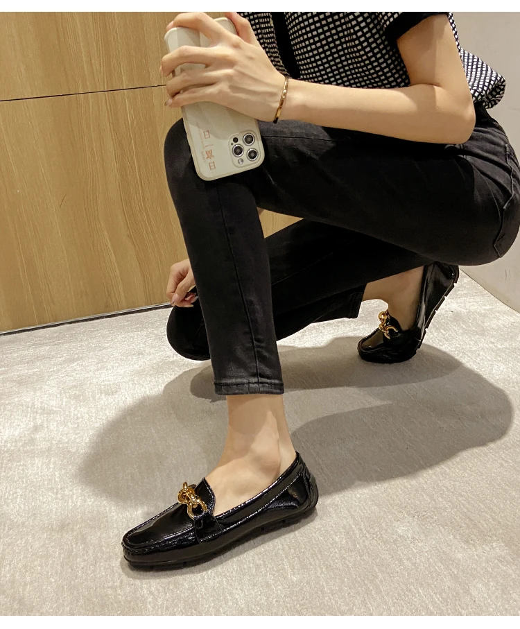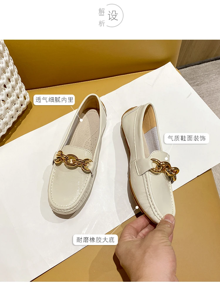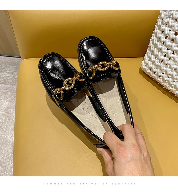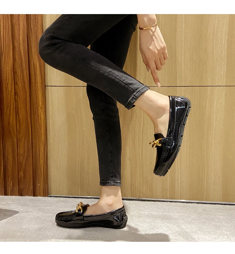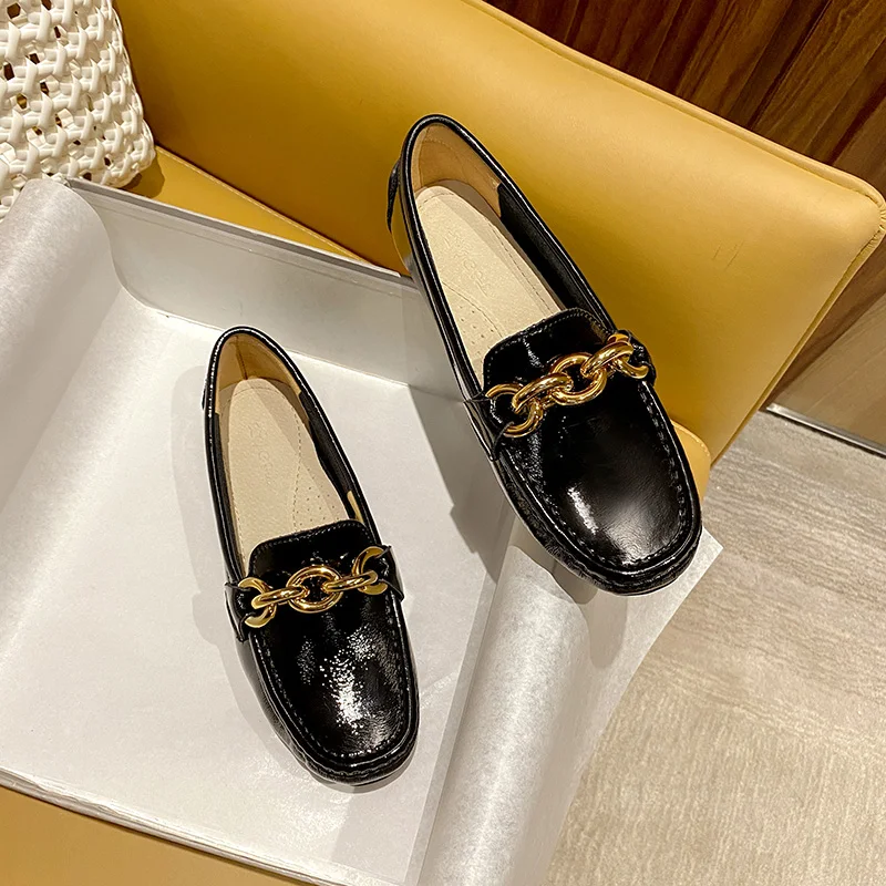 Brand Metal Chain Moccasins Femmes Genuine Leather Flats