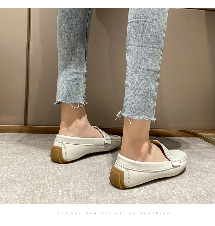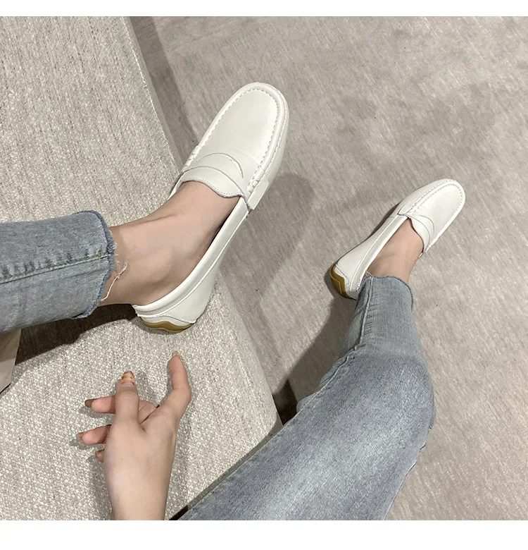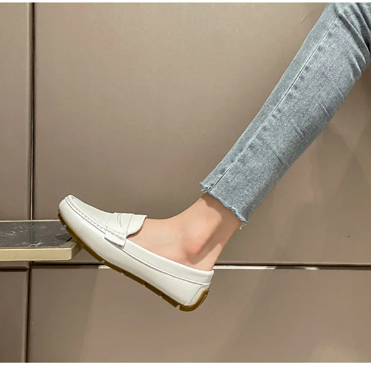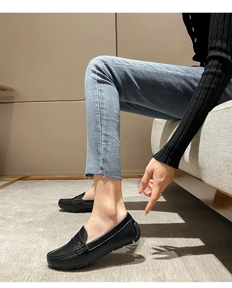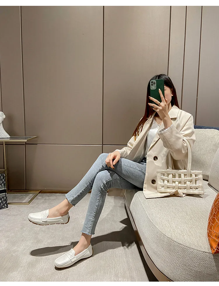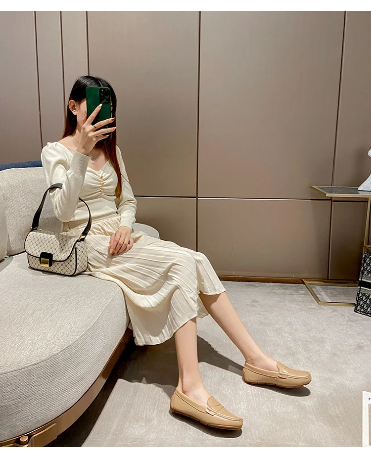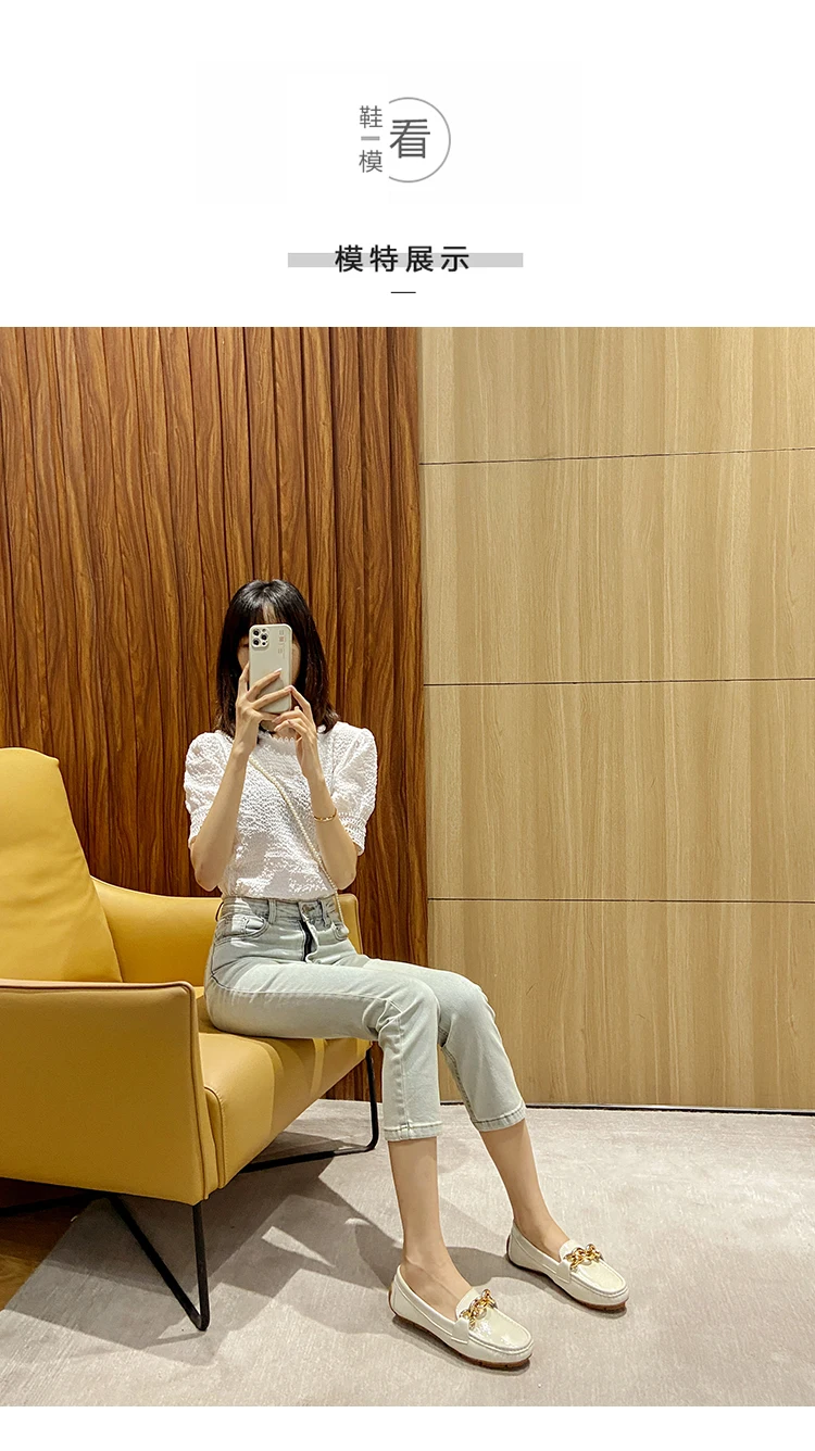 Brand Metal Chain Moccasins Femmes Genuine Leather Flats