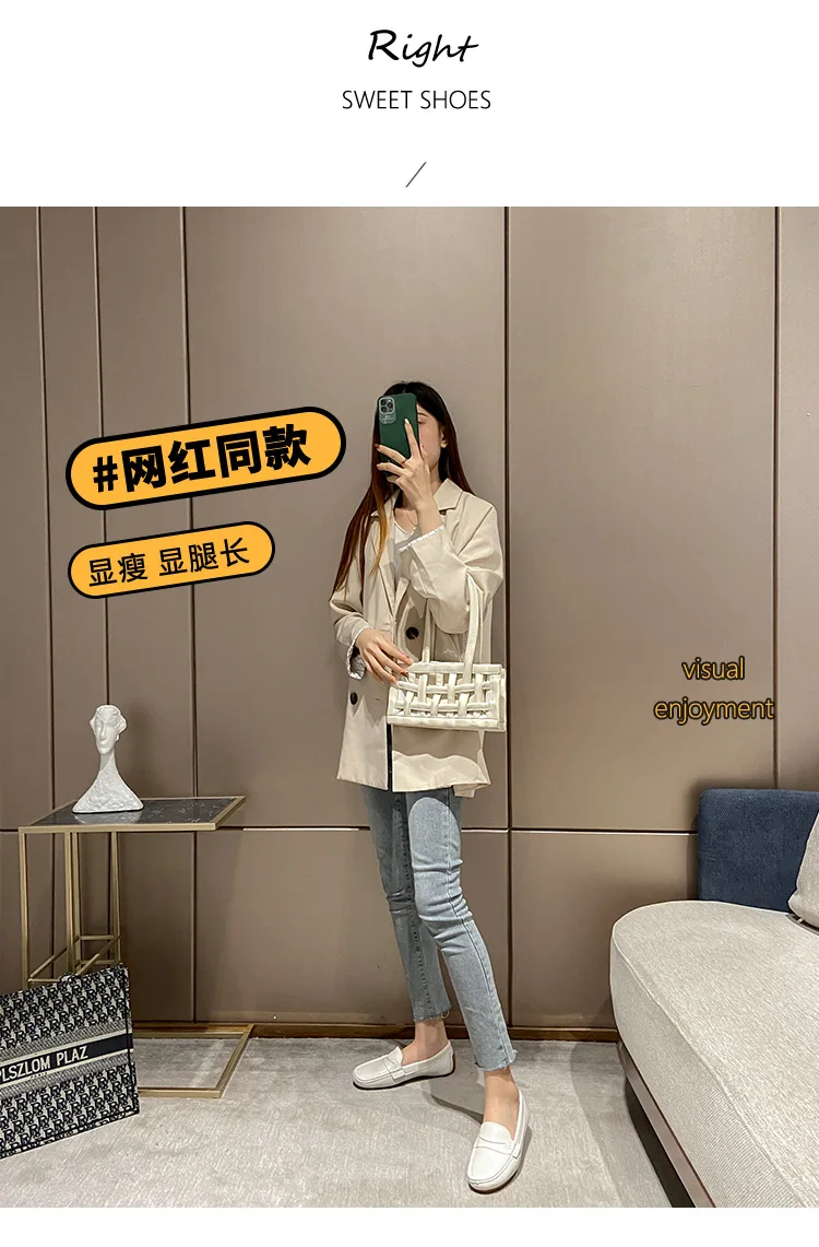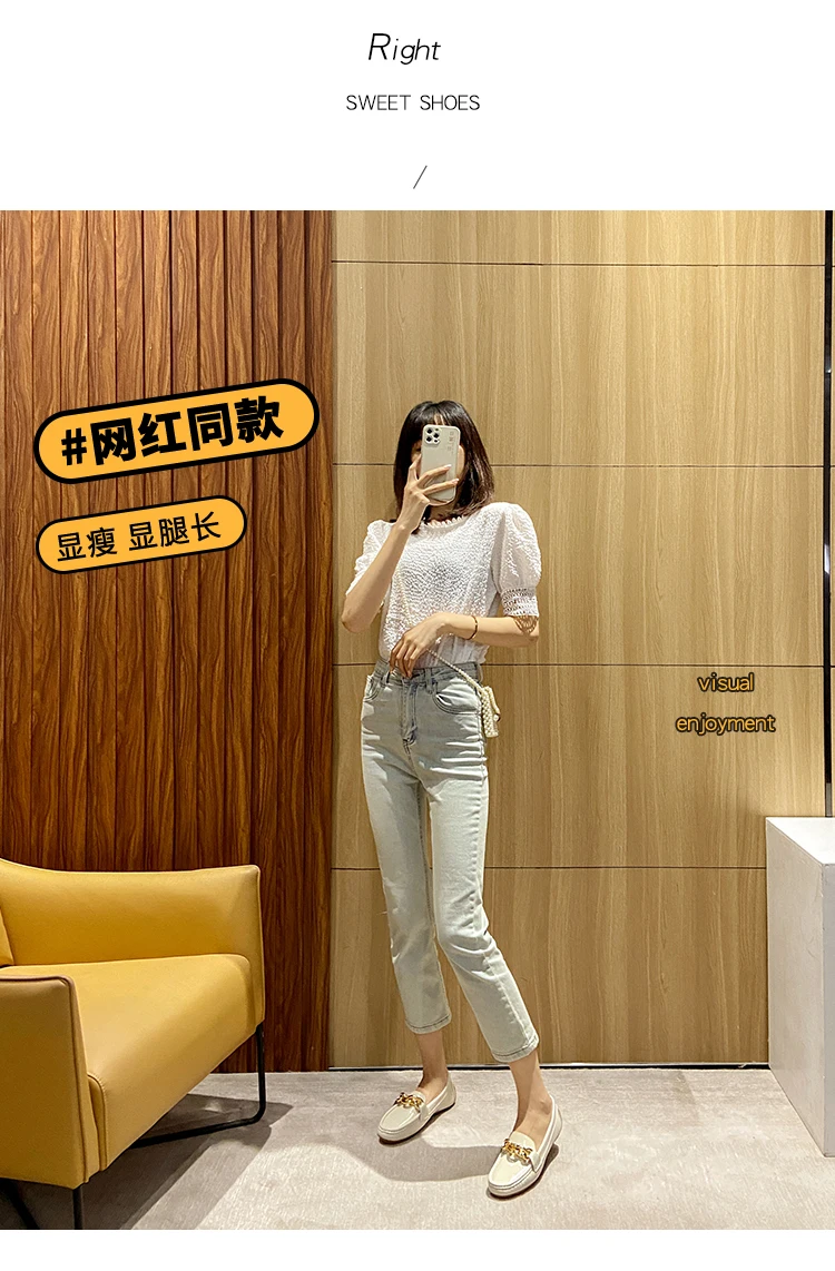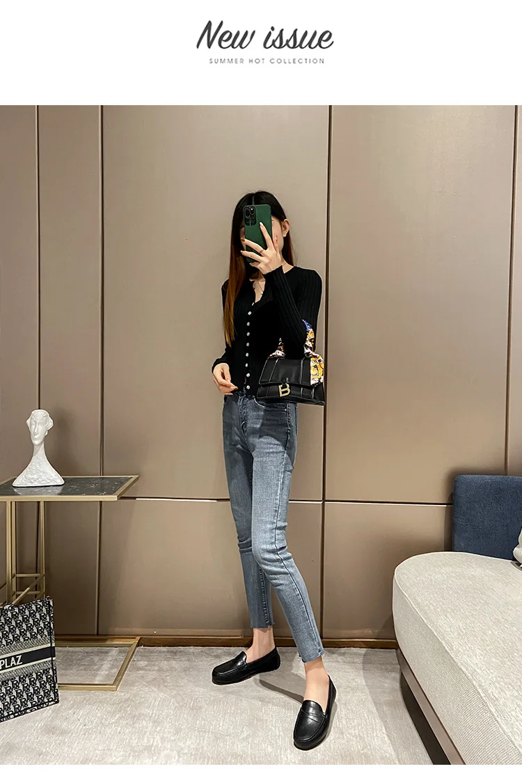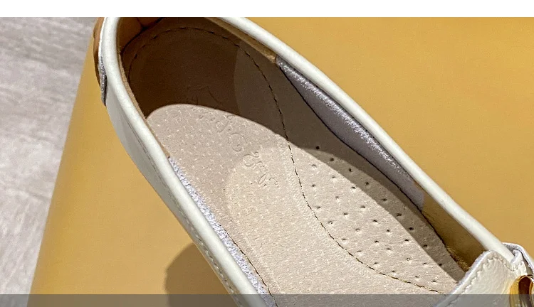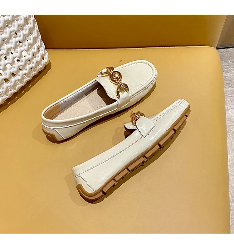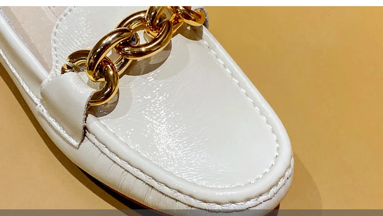 Gold Metal Chains genuine leather flat shoes woman spring autumn cowhide moccasins round toe slip on loafers pigskin espadrilles
