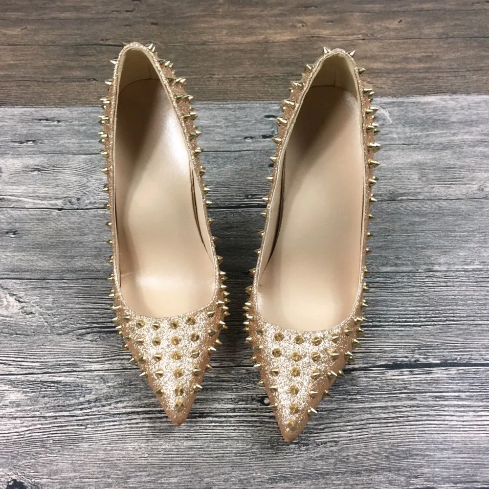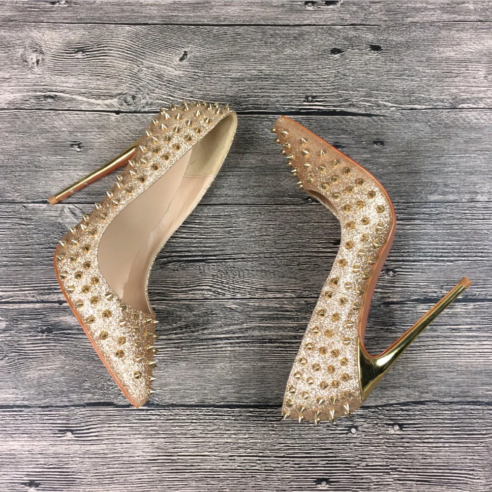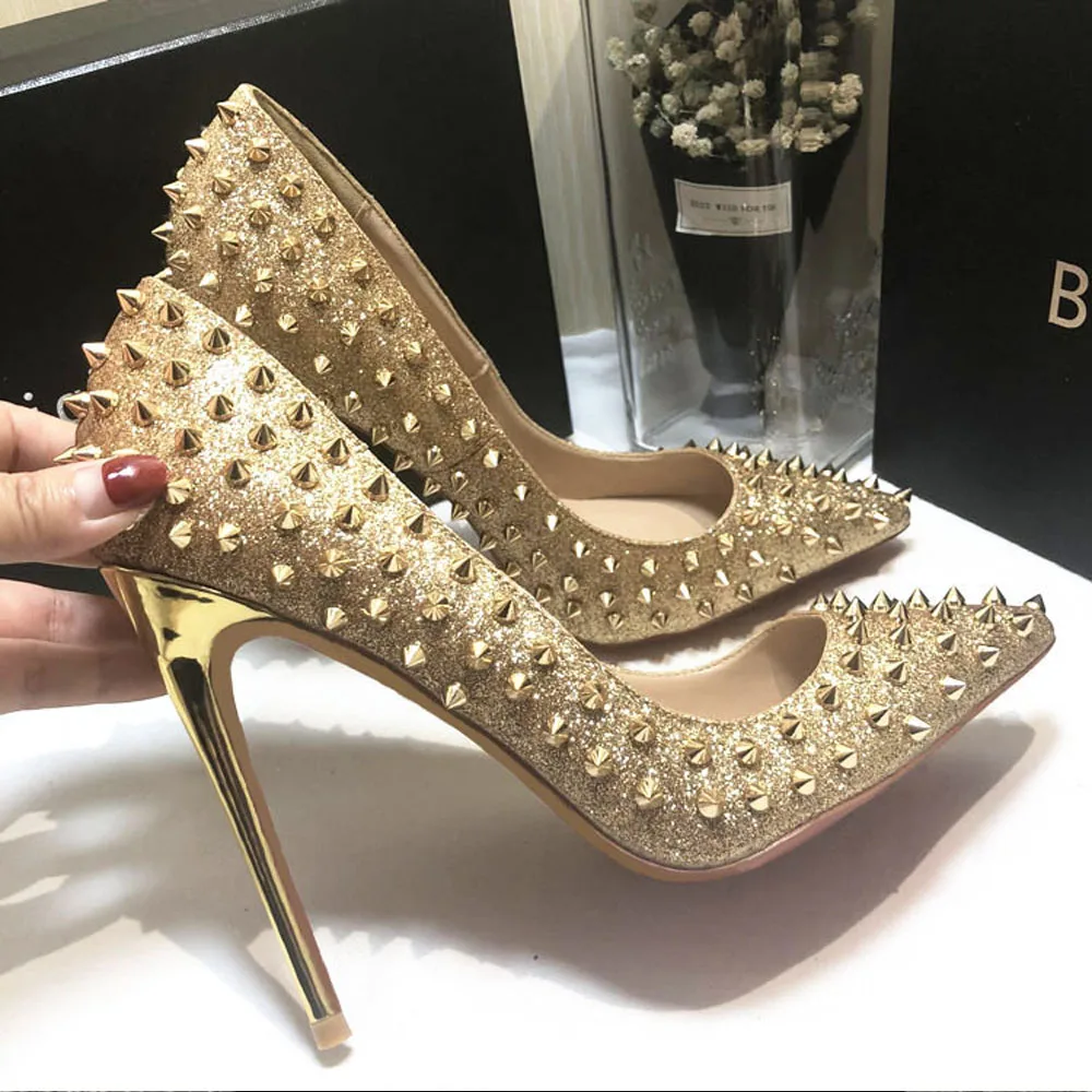 Gold needle rivets high heels patent PU leather rivets shallow heel pump pump 10 cm 12 cm shoes