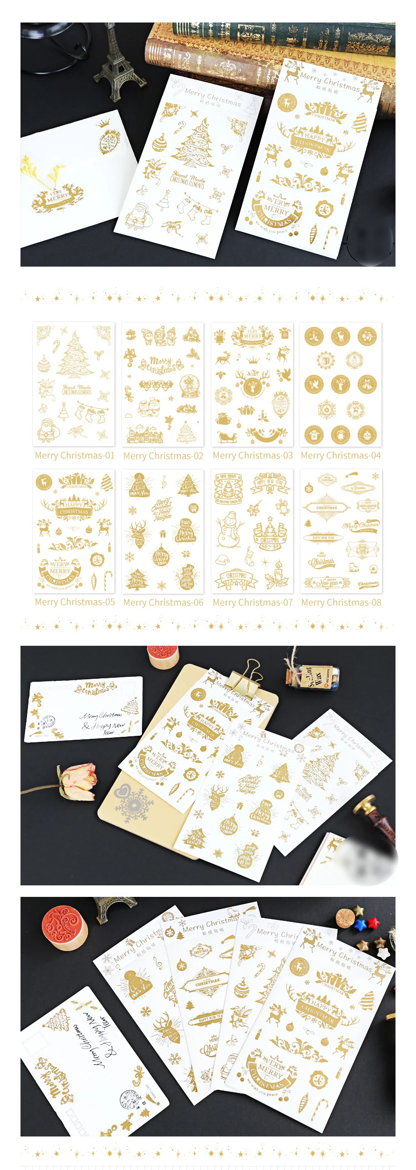 Christmas Gift Tag Stickers Modern Gold Xmas Designs 8 Pattern For Merry Christmas Holiday Gift Bags Party Supplies
