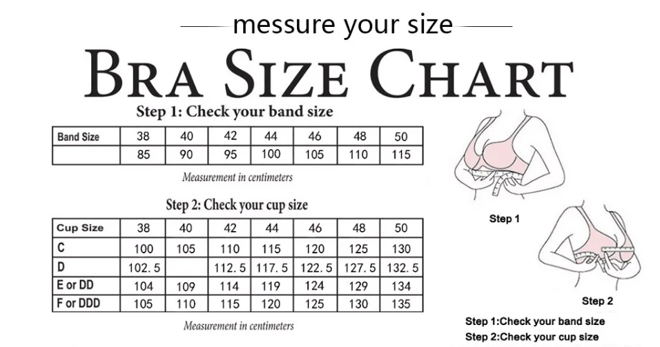 Band Size :34=75 36 =80 38=85 40=90 42=95 44=100 46=105 48=110 50=115 52=120