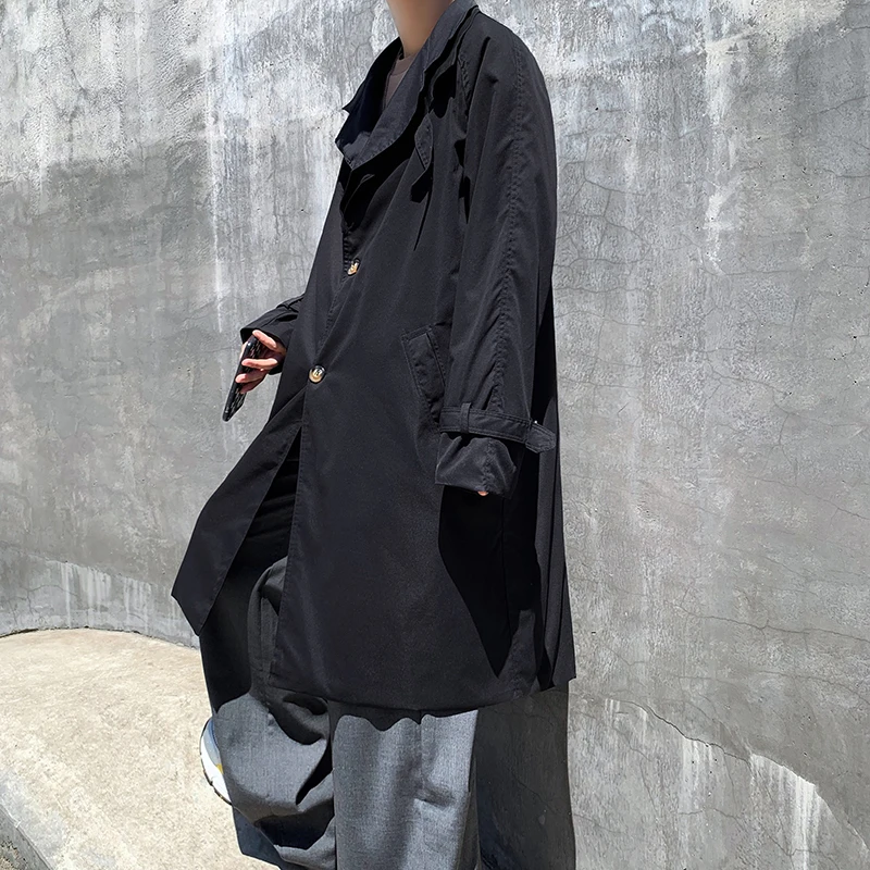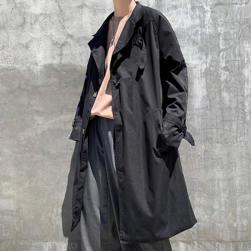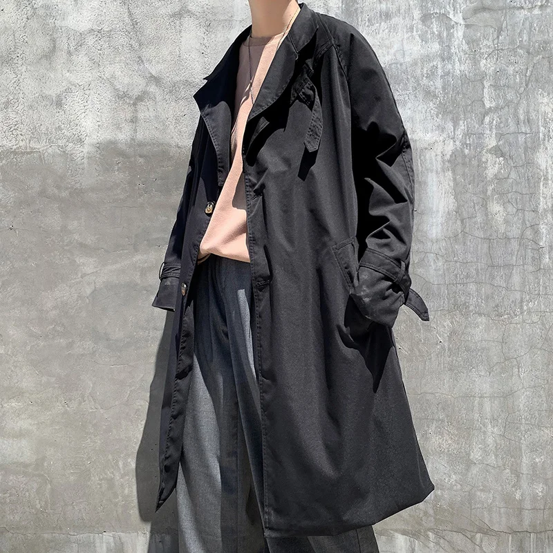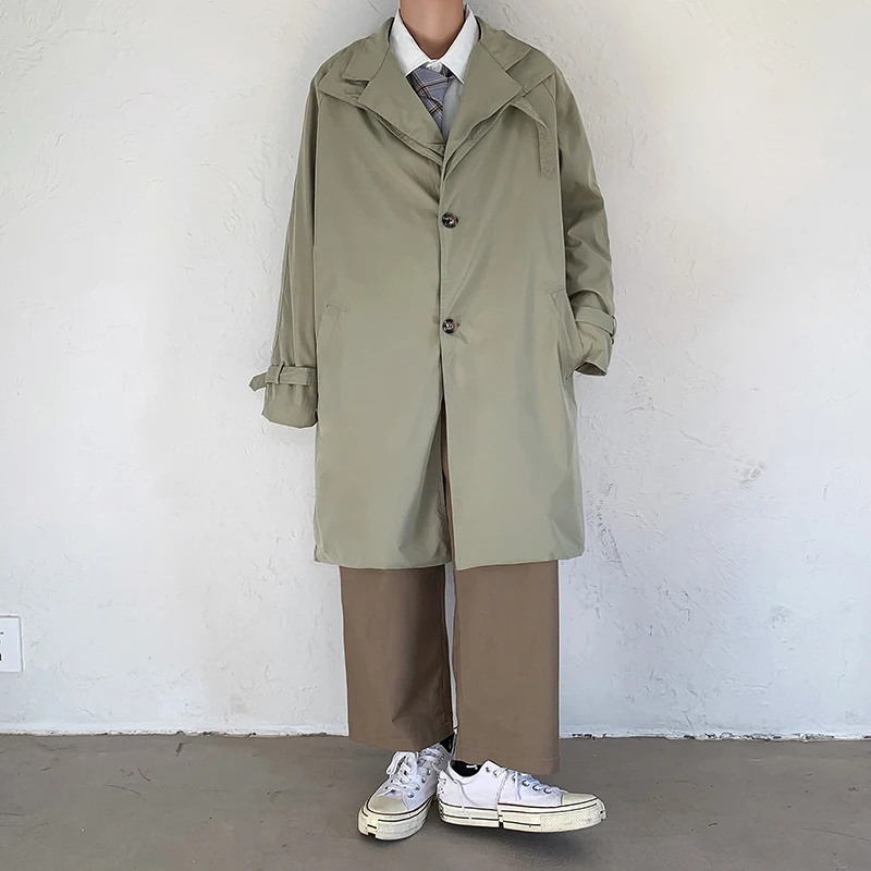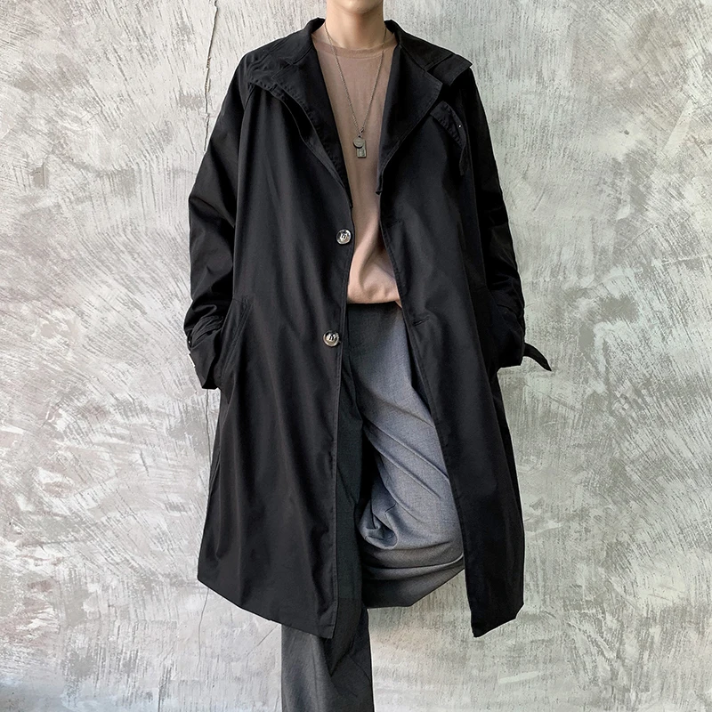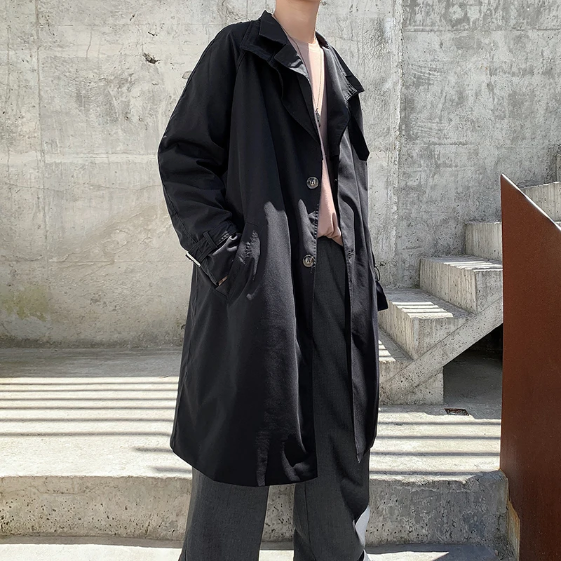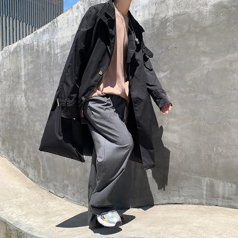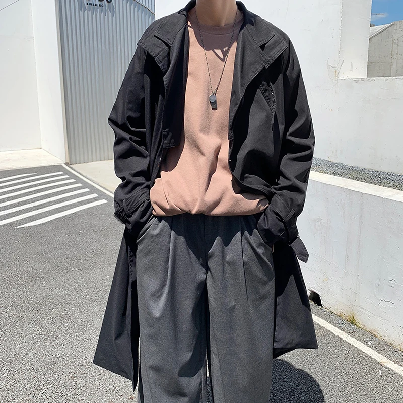 Green Black Trench Coat Men Fashion Casual Long Coat Men Streetwear Korean Loose Oversized Windbreaker Jacket Mens Overcoat
