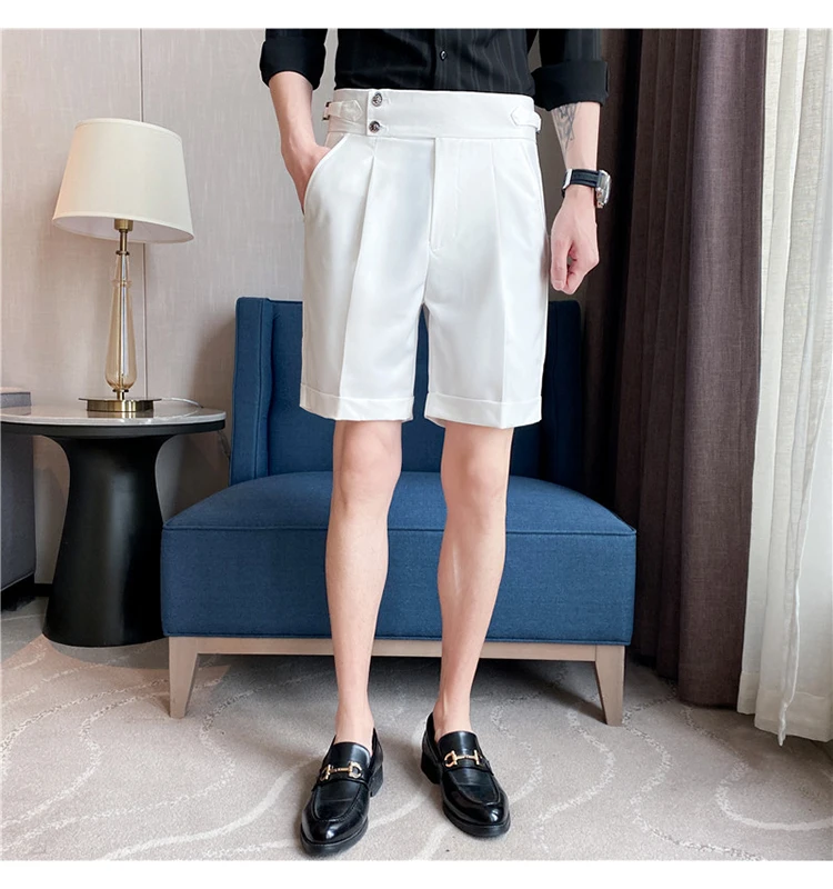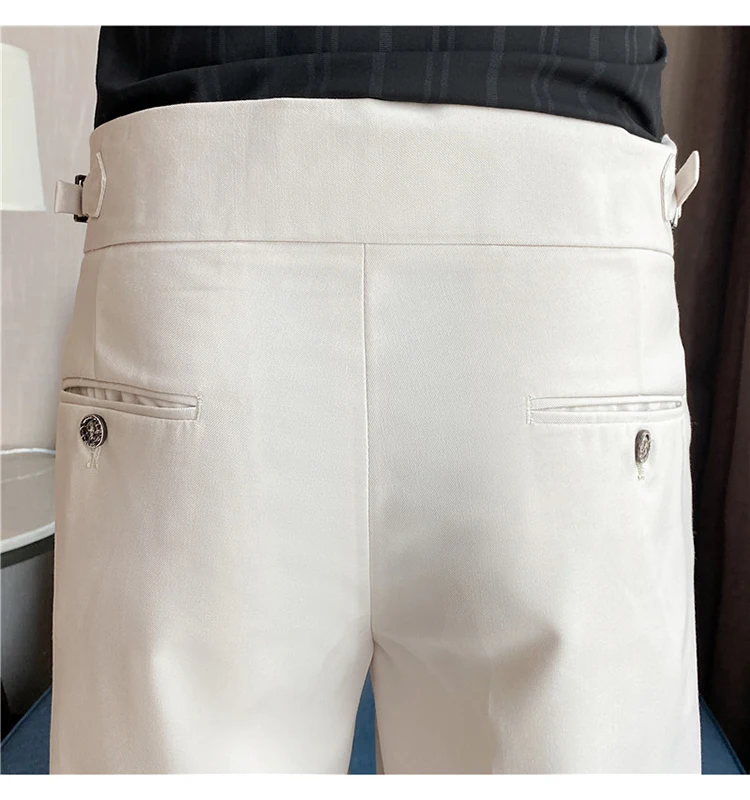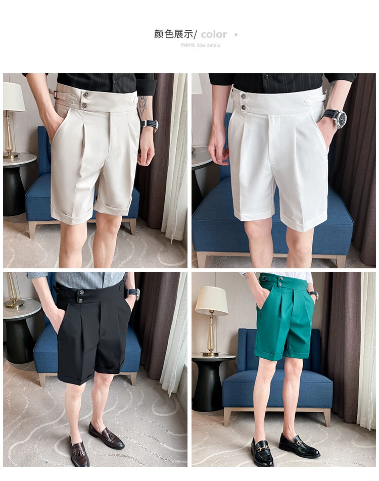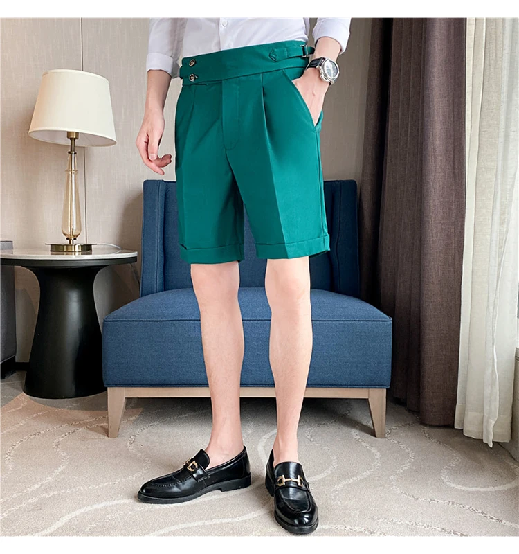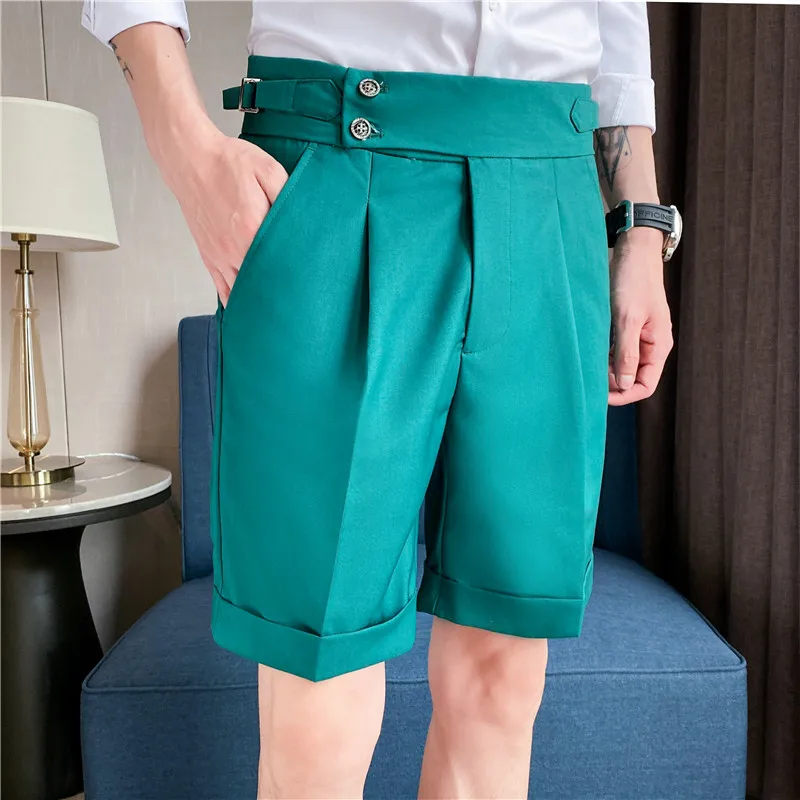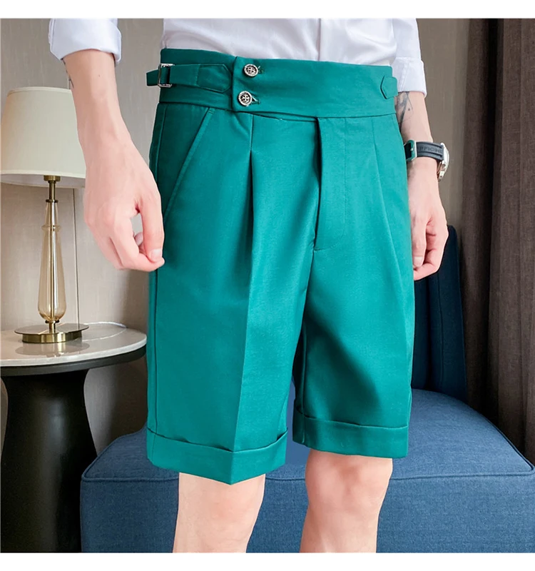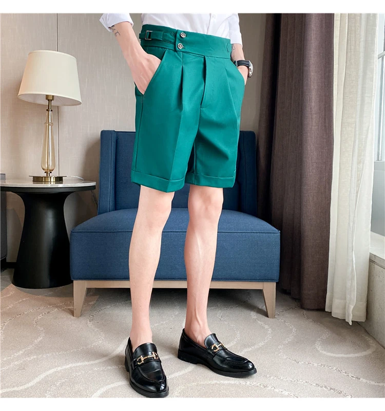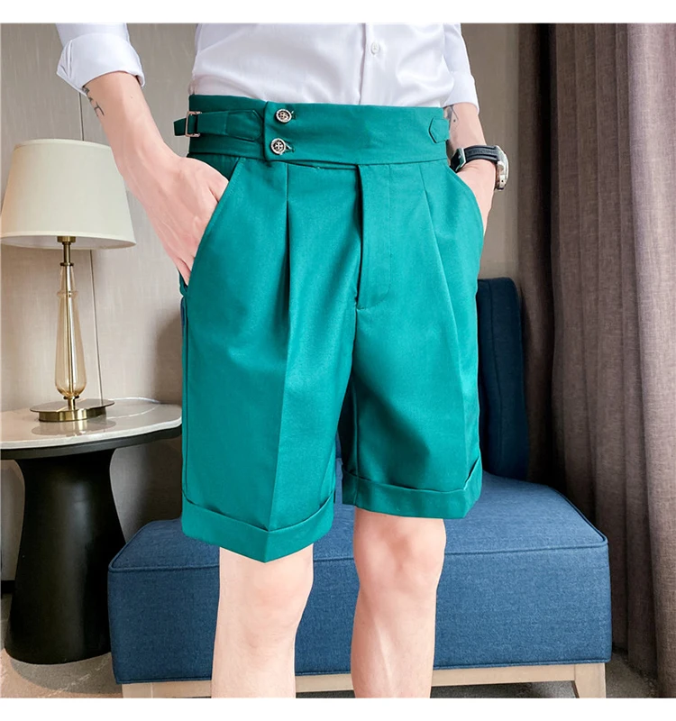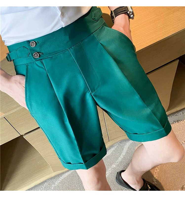 Green Gentleman Retro Cropped Pan High Waist Slim Fit Elegant Mens Shorts White British Style Suit Pants Vintage England Capris