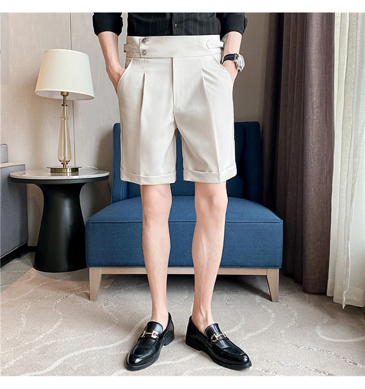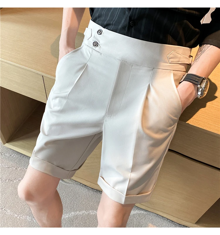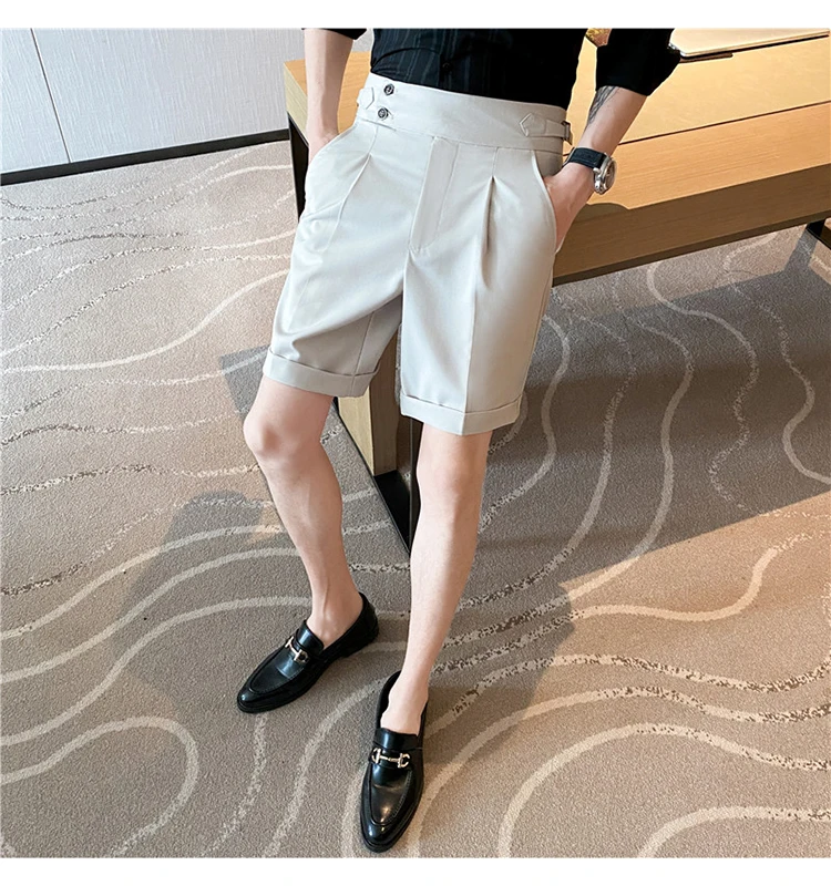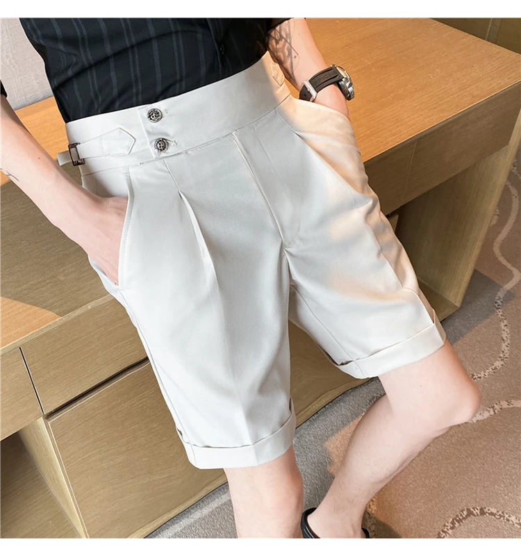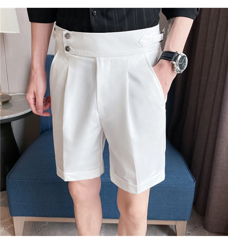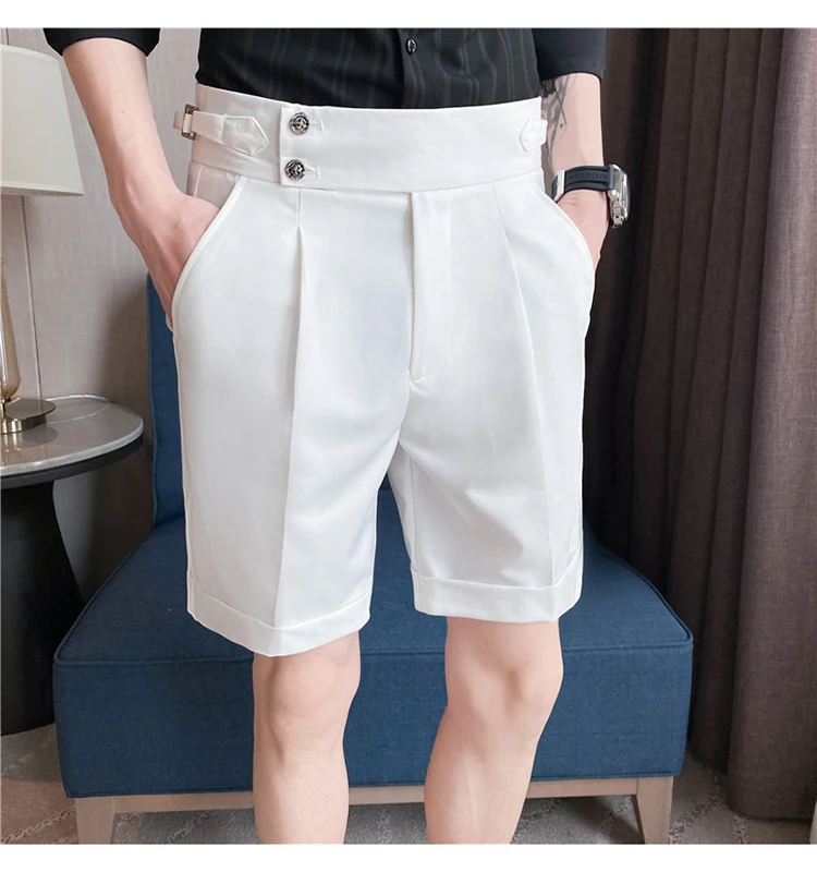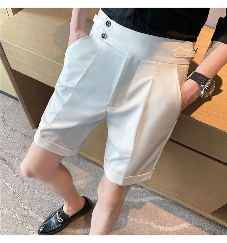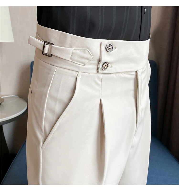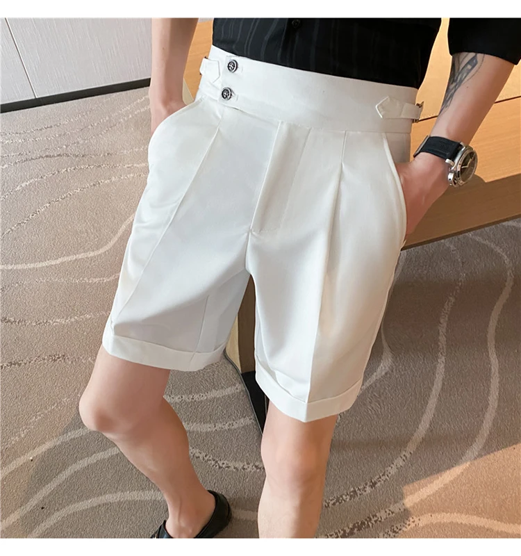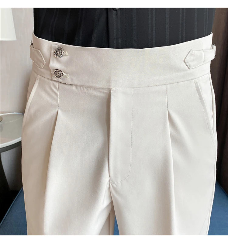 Green Gentleman Retro Cropped Pan High Waist Slim Fit Elegant Mens Shorts White British Style Suit Pants Vintage England Capris