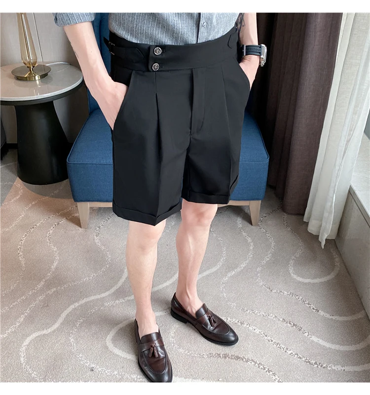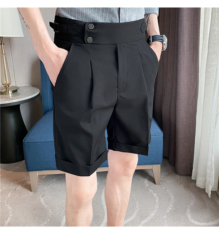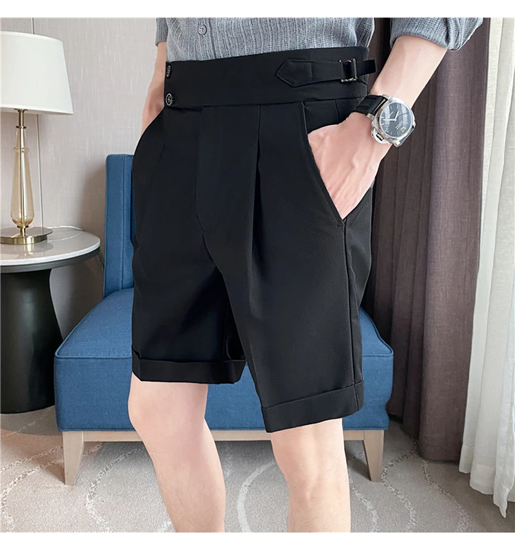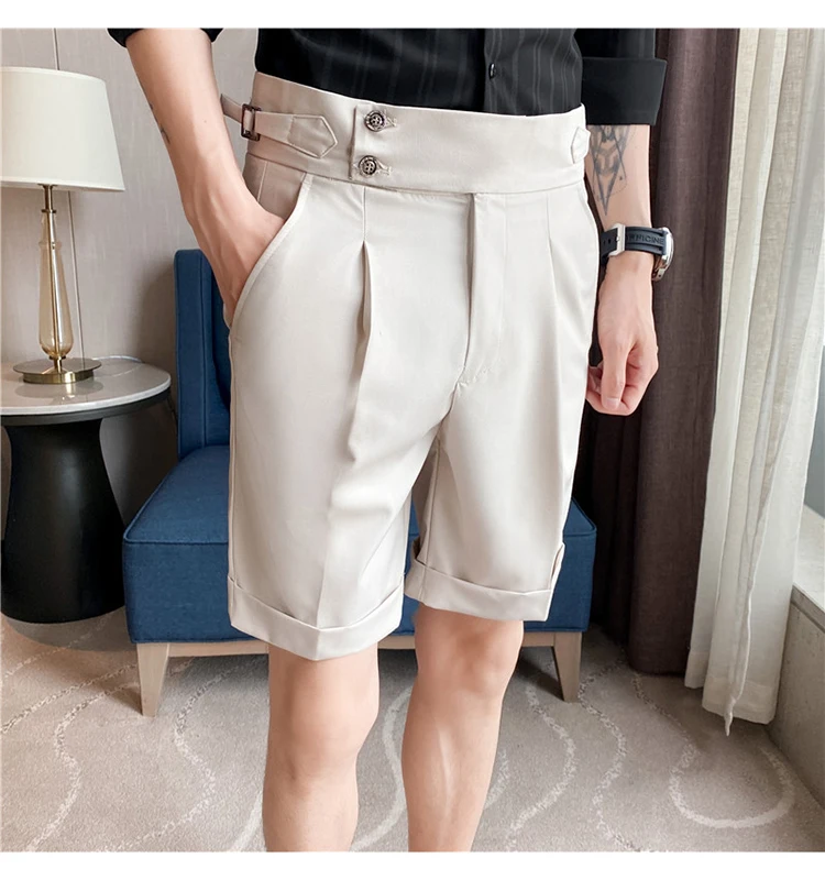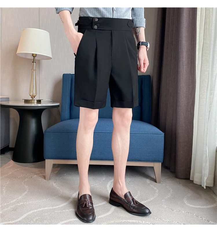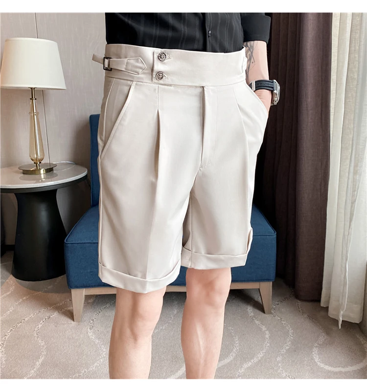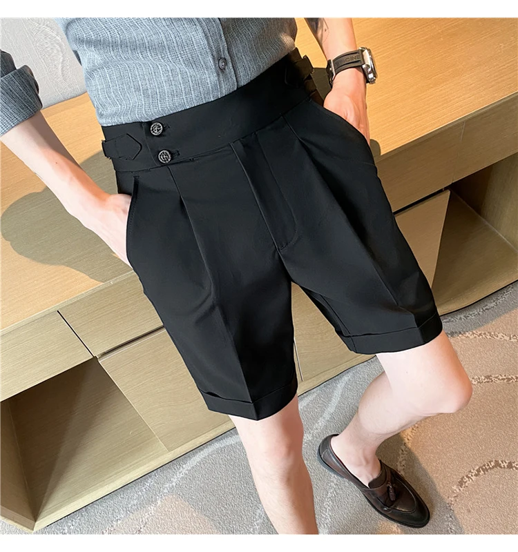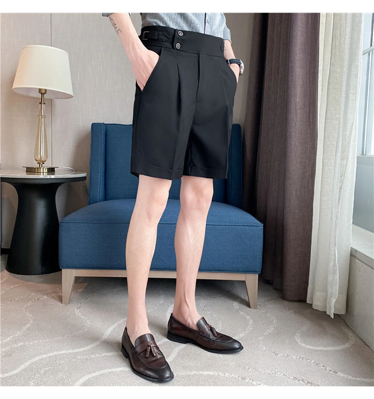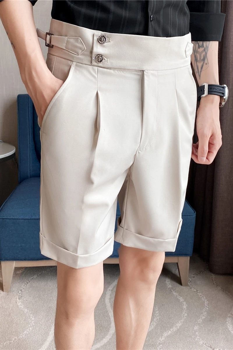 Green Gentleman Retro Cropped Pan High Waist Slim Fit Elegant Mens Shorts White British Style Suit Pants Vintage England Capris