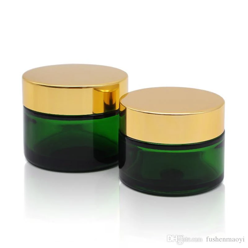 Green Glass Jar Cosmetic Lip Balm Cream Jars Round Glass Test Tube with inner PP Liners 20g 30g 50g Cosmetic Jar
