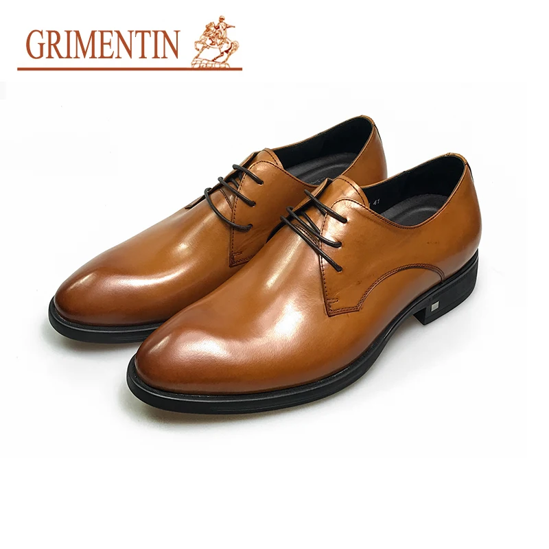 Grimentin mens dress shoes genuine leather business shoes hot sale fashion brand oxford shoes pointed toe wedding male shoes