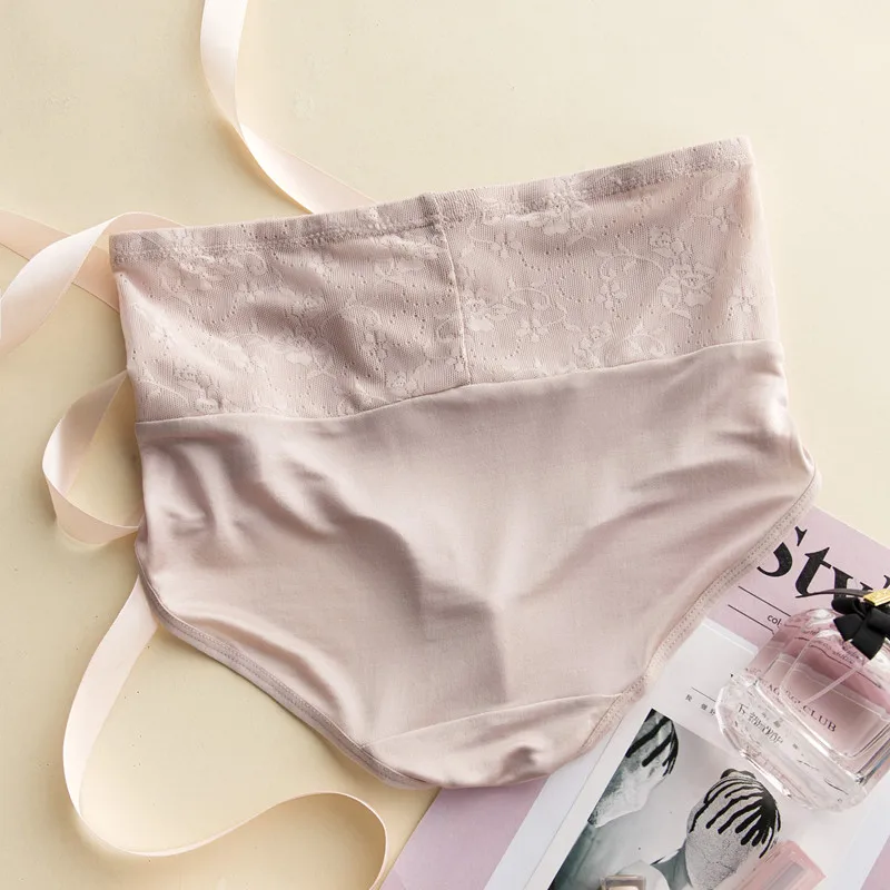 Guiyi 100% Natural Silk Abdomen Hips Boxer Ladies Underwear Plus Size female Postpartum High Waist Lace Underwear for Young