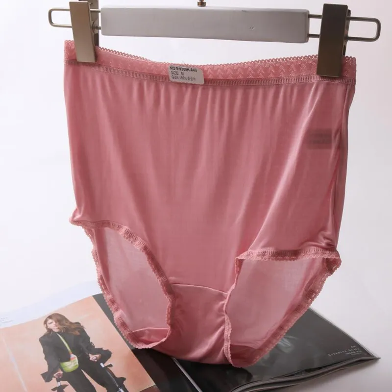 Guiyi 100% Nature Silk Women’s Lace Sexy High Waist Underwear 8 Colors Seamless Abdomen Hips Breathable Truth Real Silk Briefs