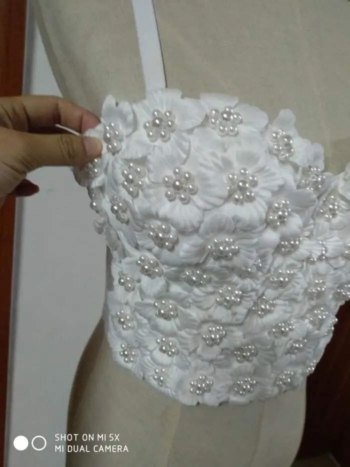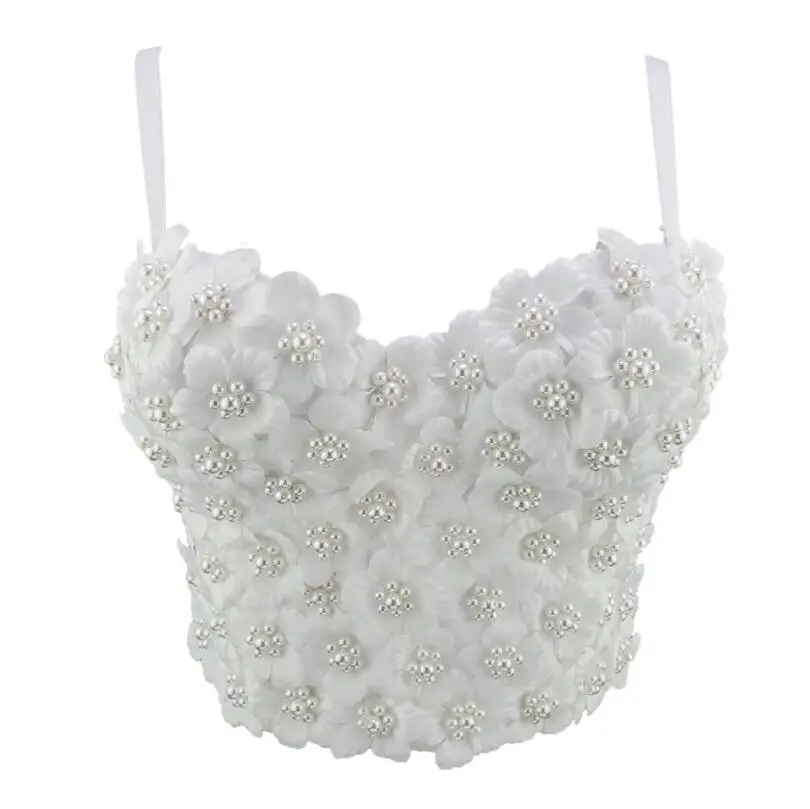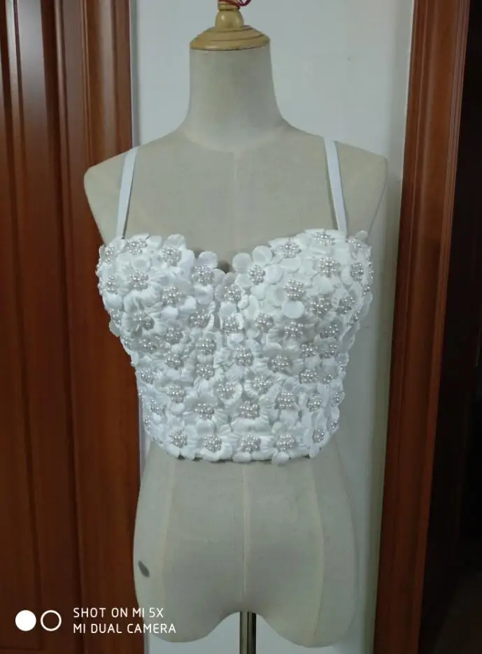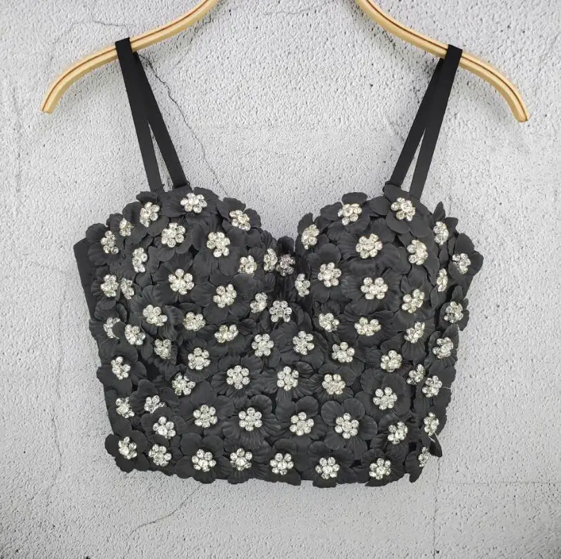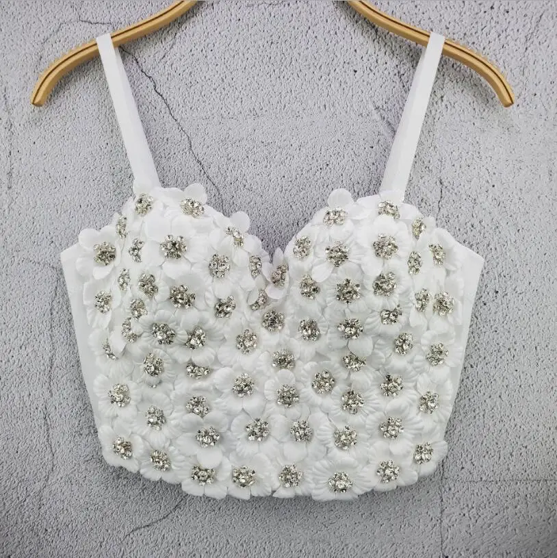 Handmade diamond beaded flowers fashion bra carnival nightclub party cropped crop top tank halter bustier corset women p1673