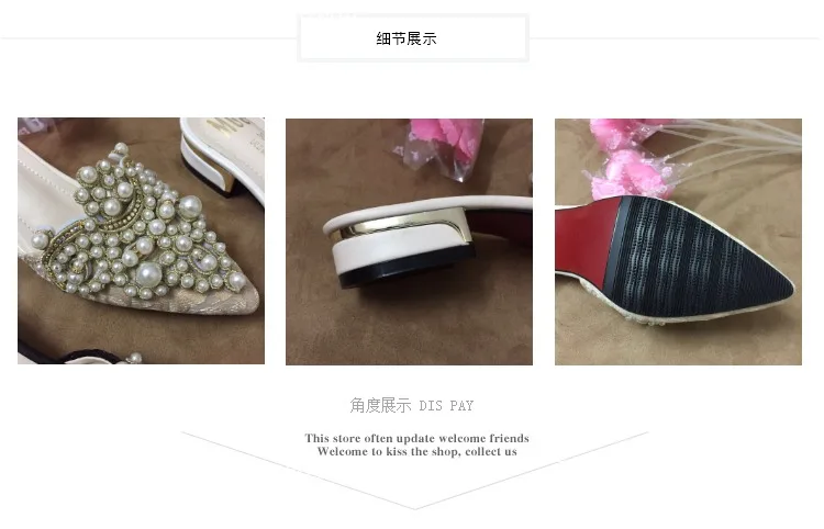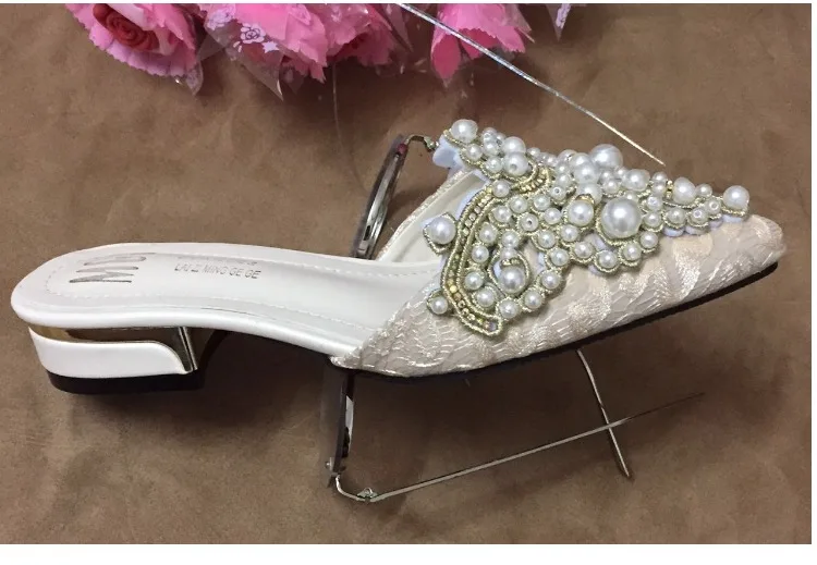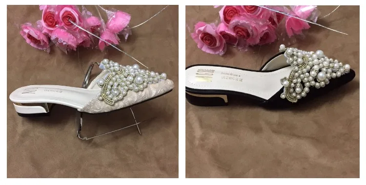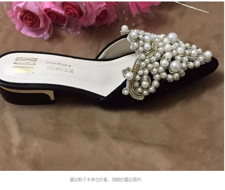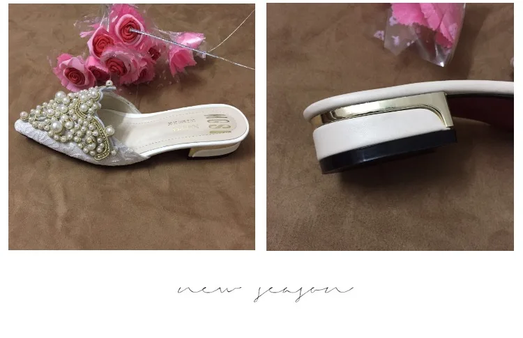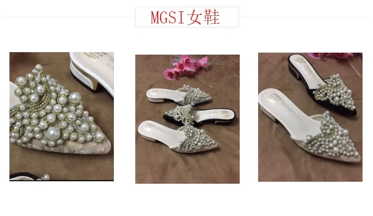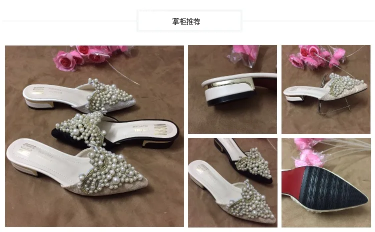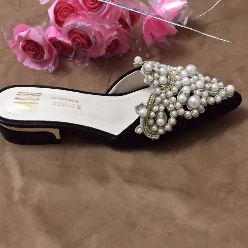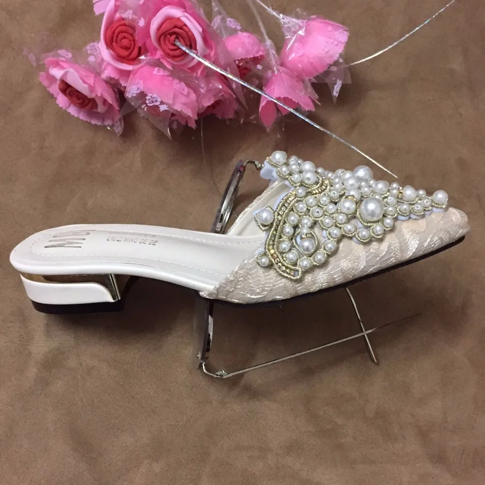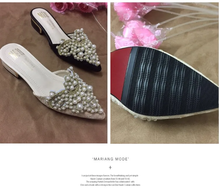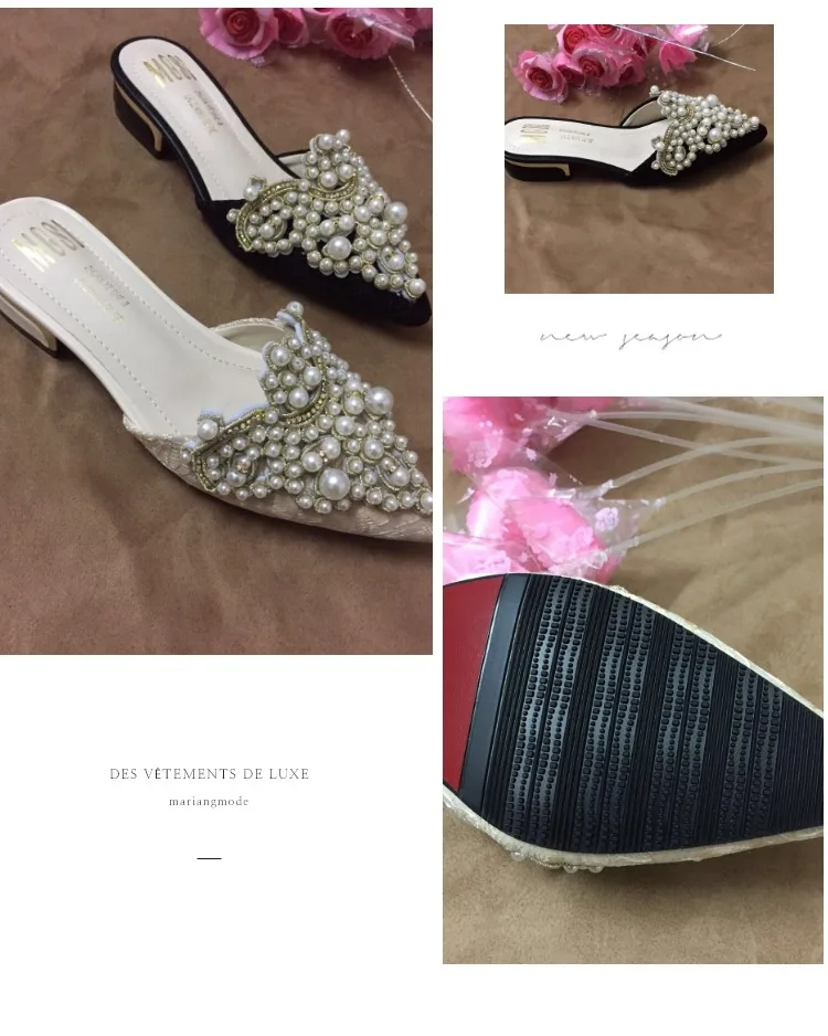 Handmade Shoes Pearl Slippers Woman Beading String Mules Pointed Toe Sandals Home Slides Women Beaded Slippers Summer Flipflops