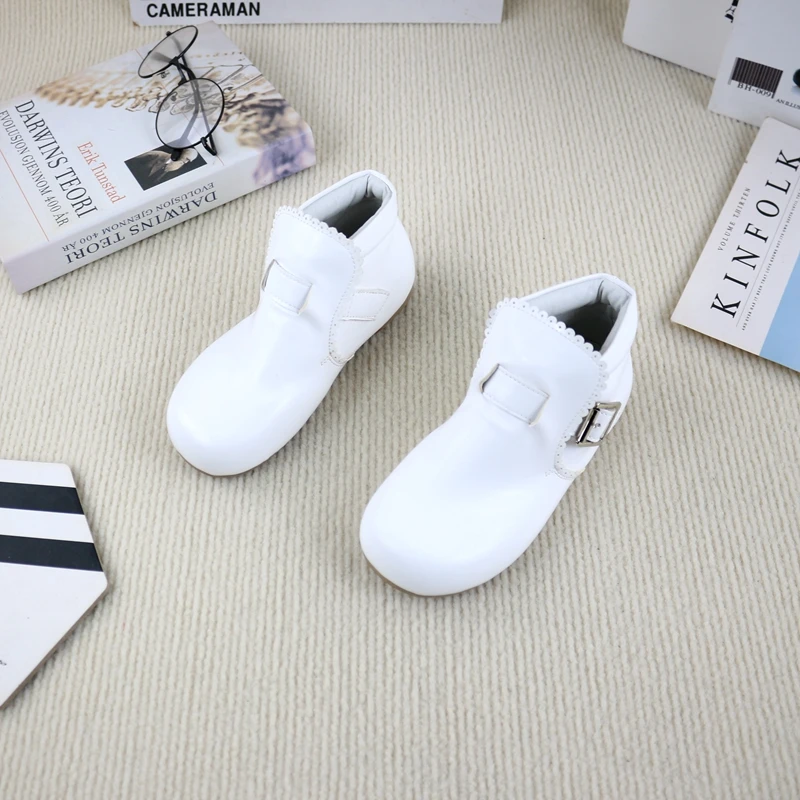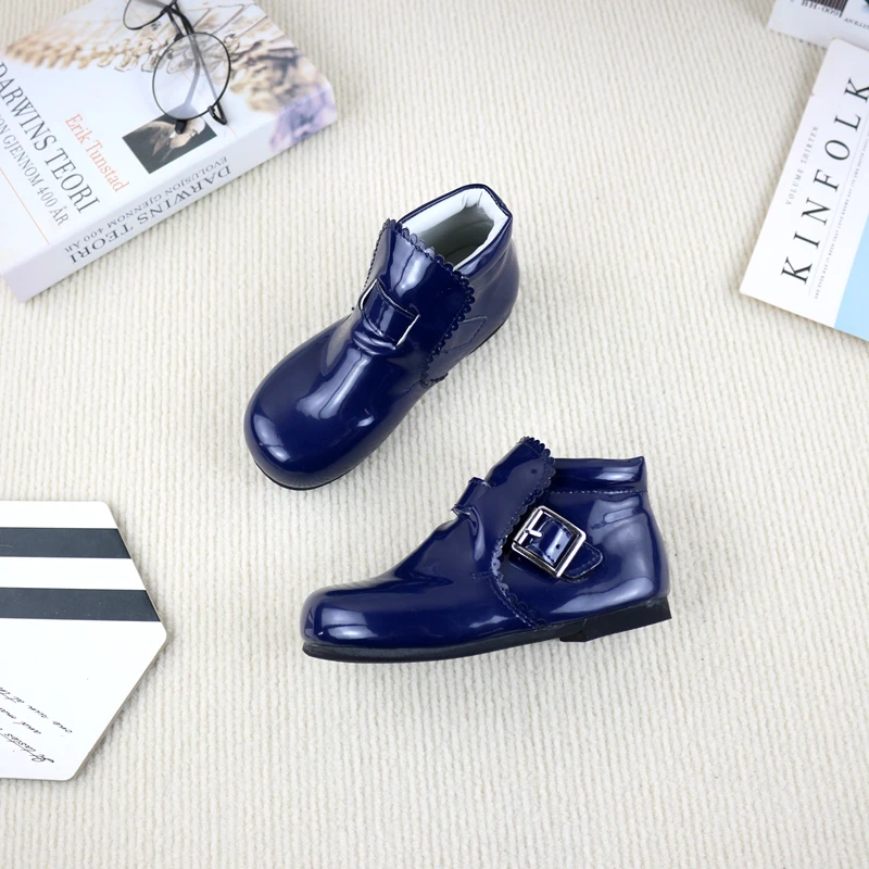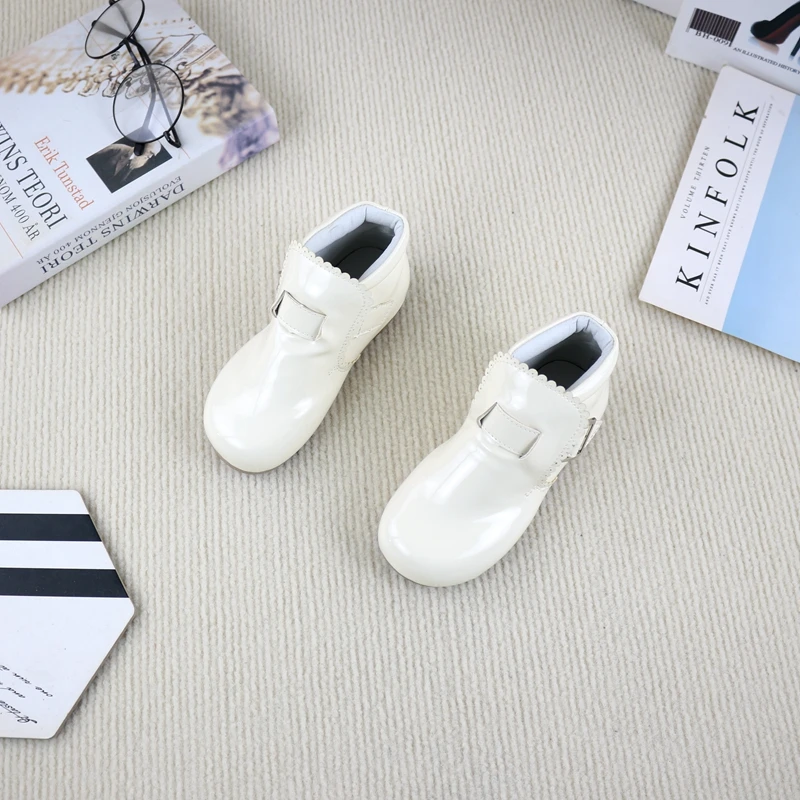 Handmade Winter New Bottom Round Head Patent Leather Soft Little Girls’ Leather Boots Single Boot Kids Baroque Shoes