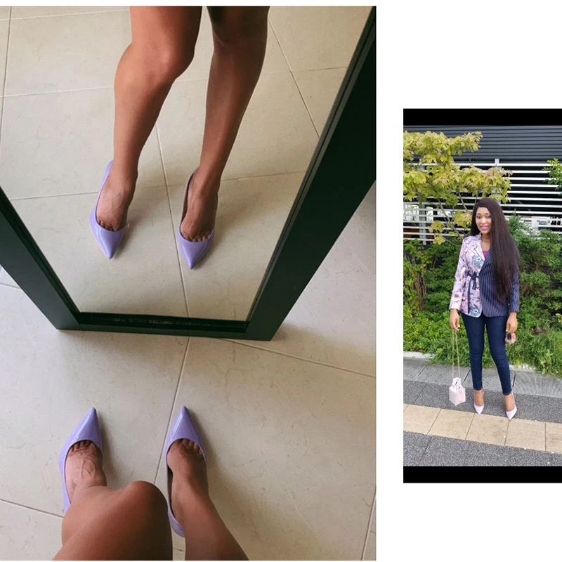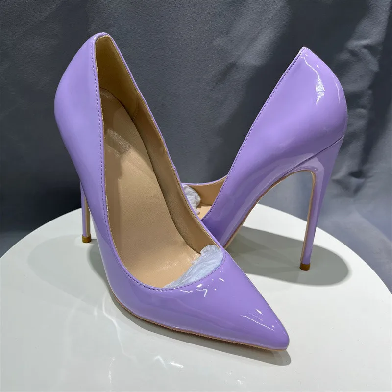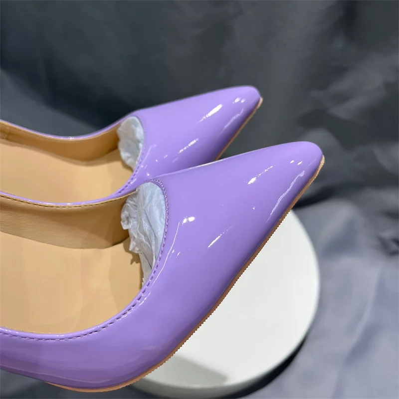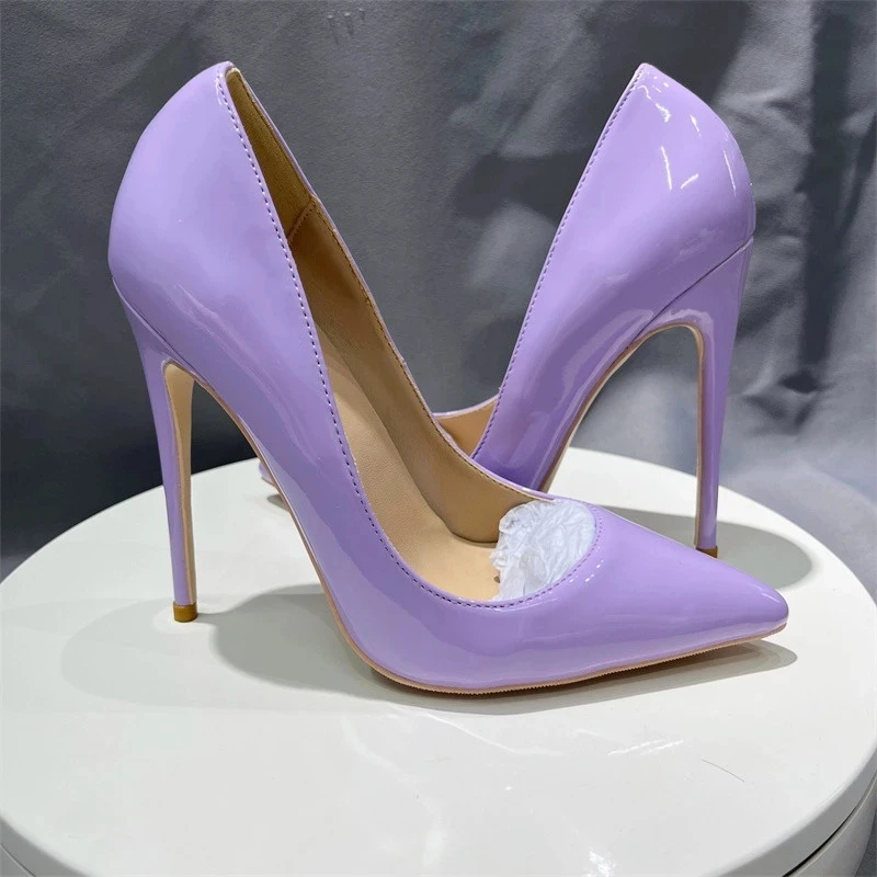 Heelgoo Glossy Light Purple Women Elegant Stiletto Pumps Ladies Wedding Bridesmaid Shoes 3″ 4″ 5″ High Heels Size 33 43 44 45″
