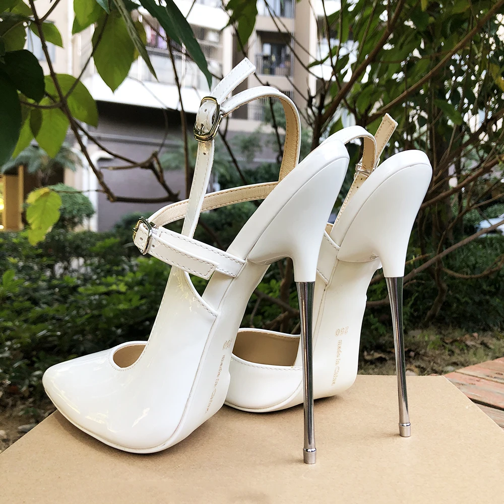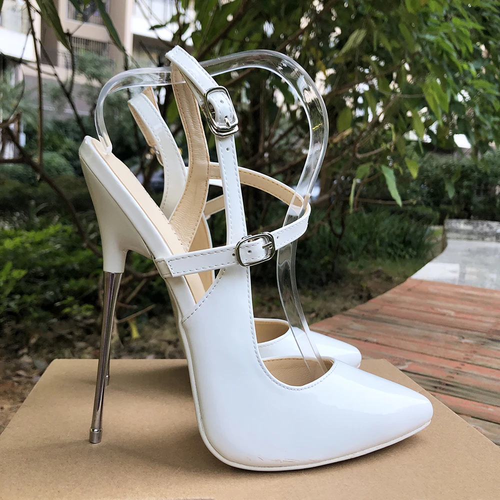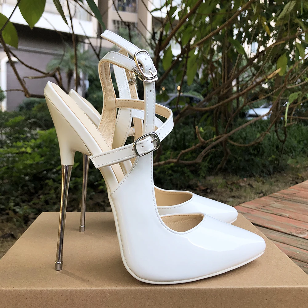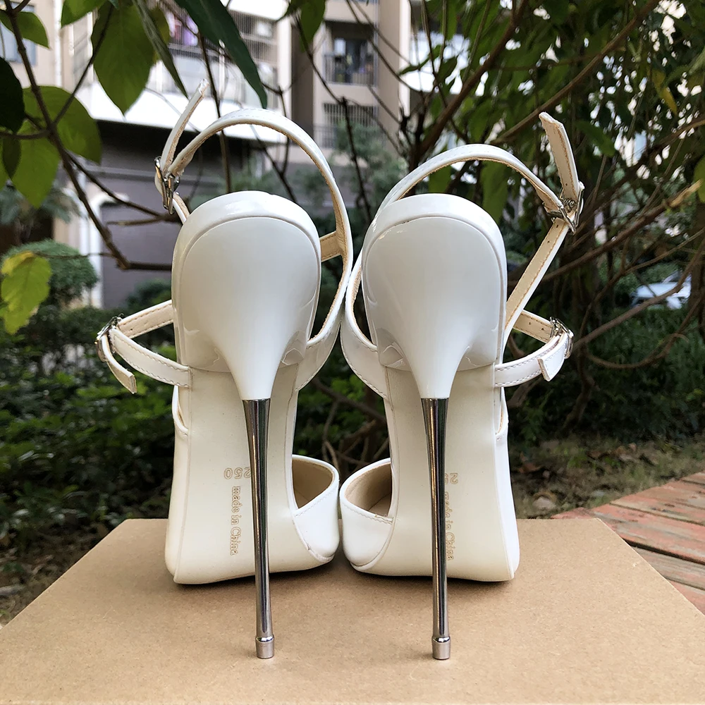 Heelgoo Women White 16cm Ultra High Heel Sandals Sexy Pumps Man Fetish SM Ankle Strap Model Show Party Drag Queen Unisex Shoes