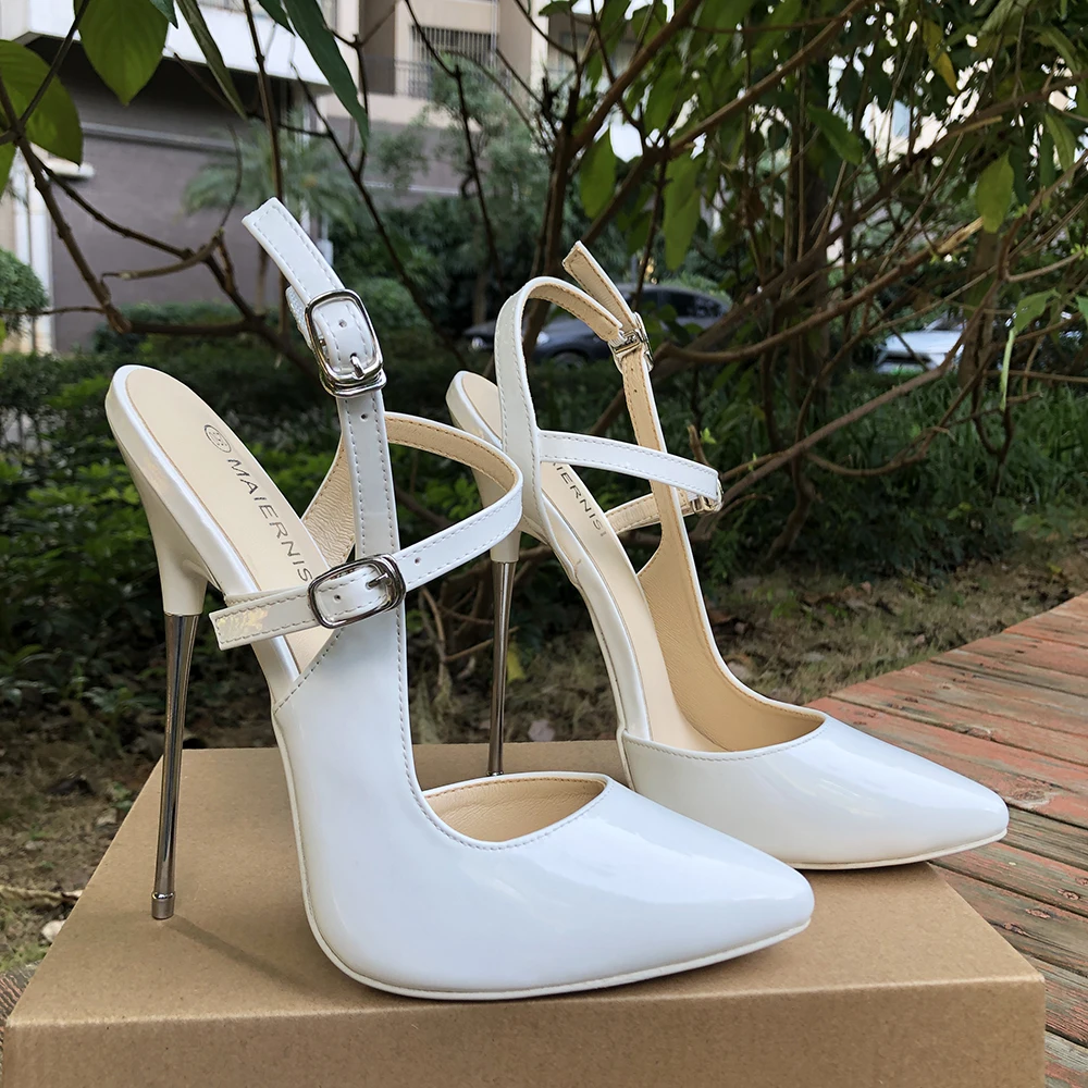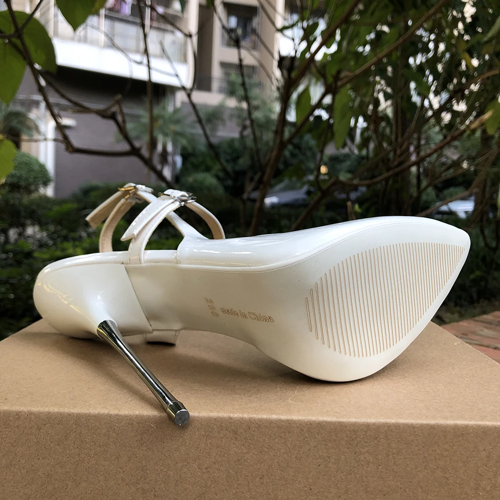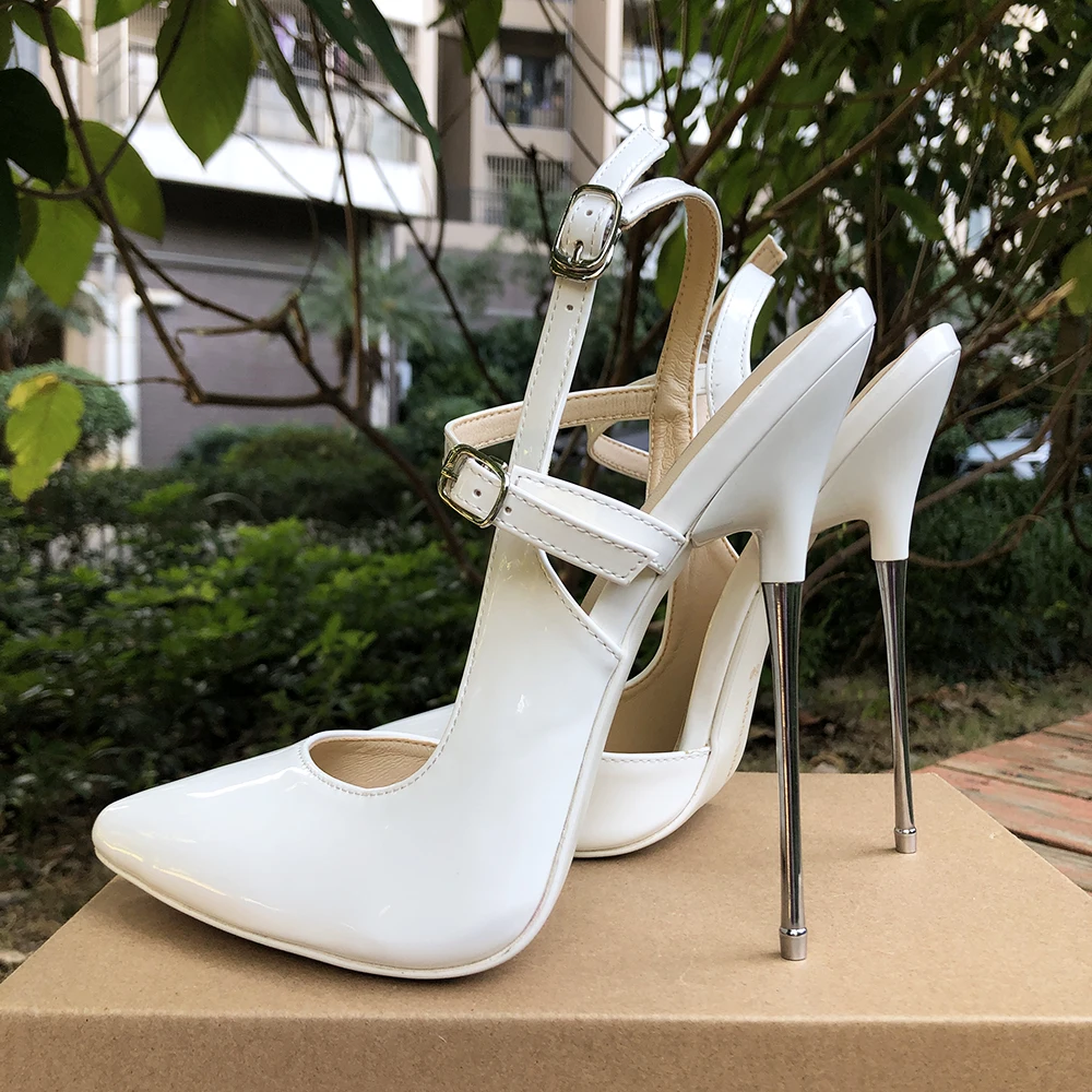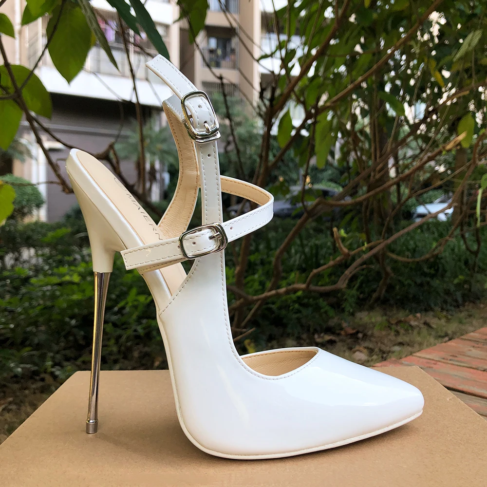 Heelgoo Women White 16cm Ultra High Heel Sandals Sexy Pumps Man Fetish SM Ankle Strap Model Show Party Drag Queen Unisex Shoes