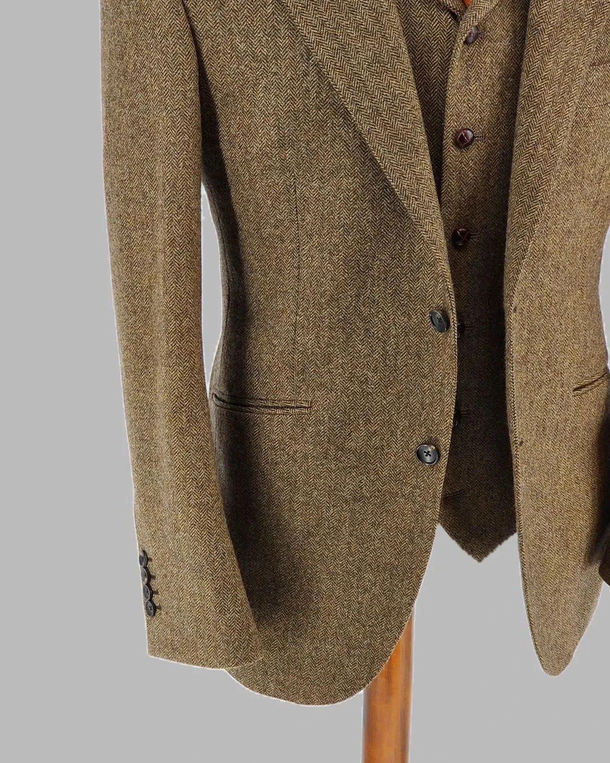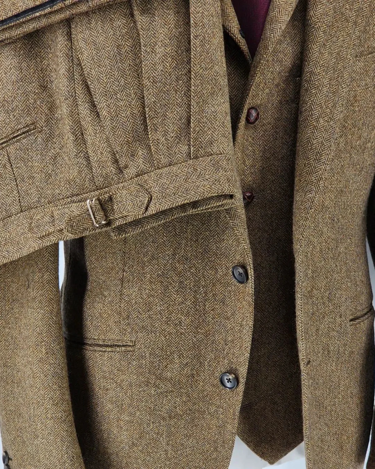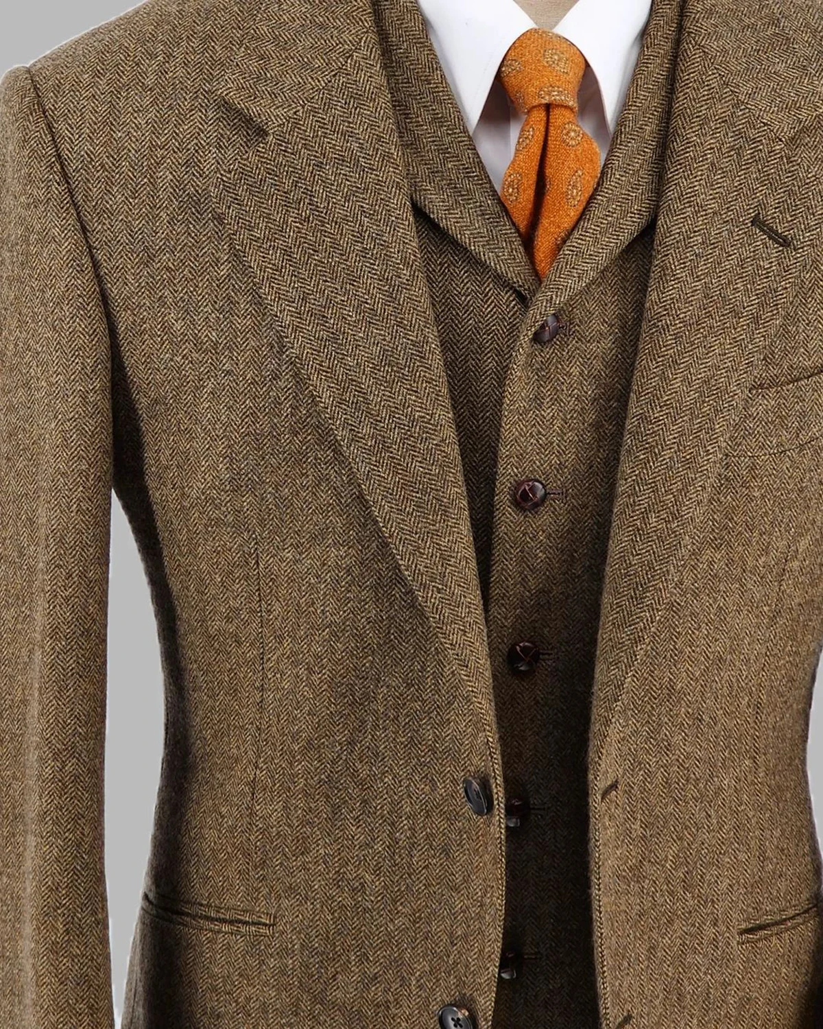 Herringbone Men Suit Tailor-Made 3 Pieces Blazer Vest Pants Tuxedo Single Breasted Fashion Business Wedding Groom Prom Tailored