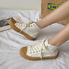 High Gang lace up canvas flat cookie shoes woman vintage street shot loafers women cross-tied rubber round toe espadrilles mujer