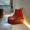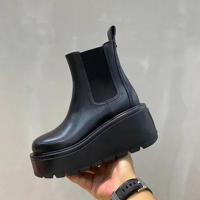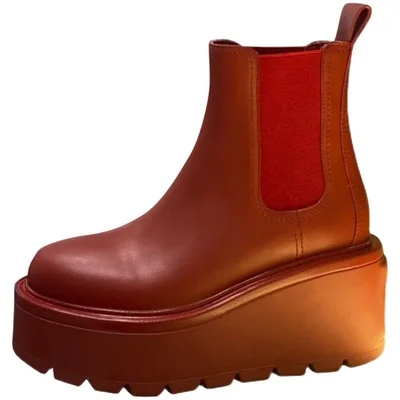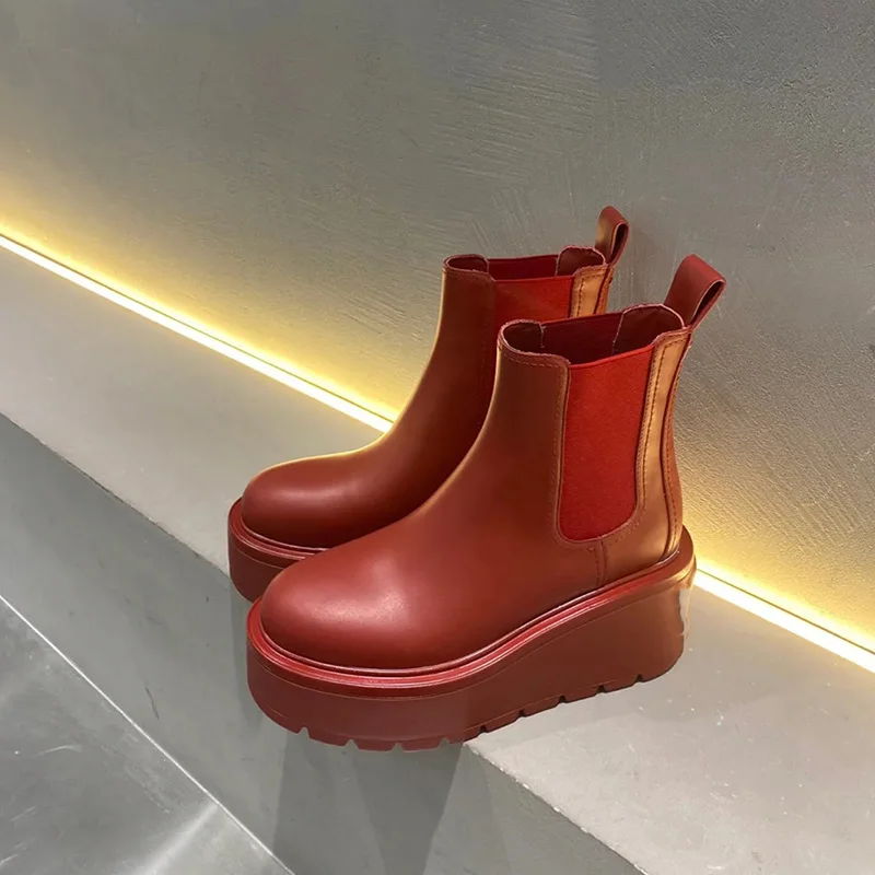 High Platform Stretch Ankle Booties For Women Wedged Shoes Ladies Motorcycle Boots Slip On Martin Chelsea Red Black Botas Mujer