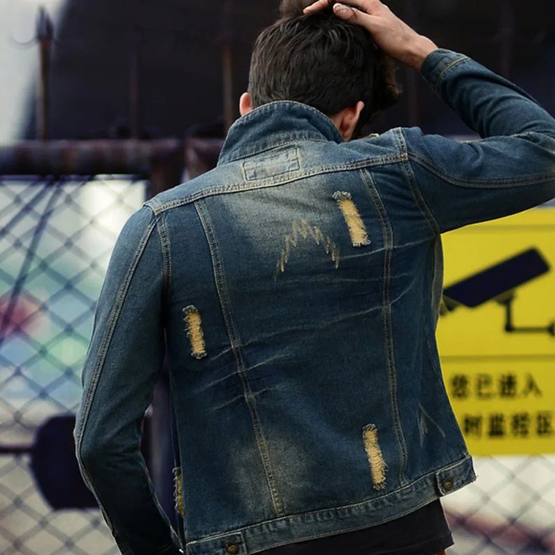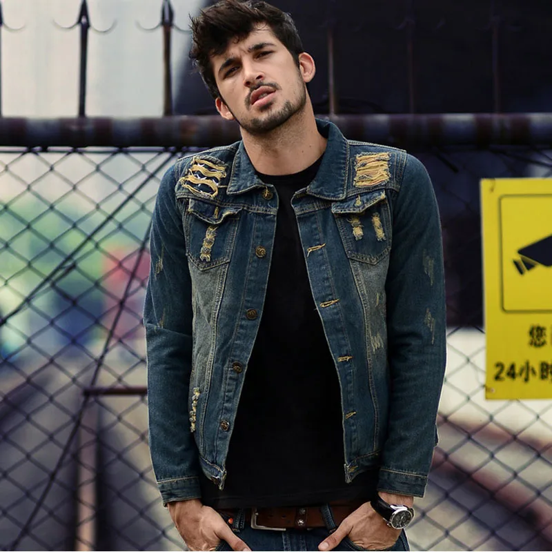 High Quality 2022 Fashion Men Denim Slim Fit Cowboy Jacket Vintage Hip Hop Streetwear Motocycle Biker Jacket Hole Ripped Tops