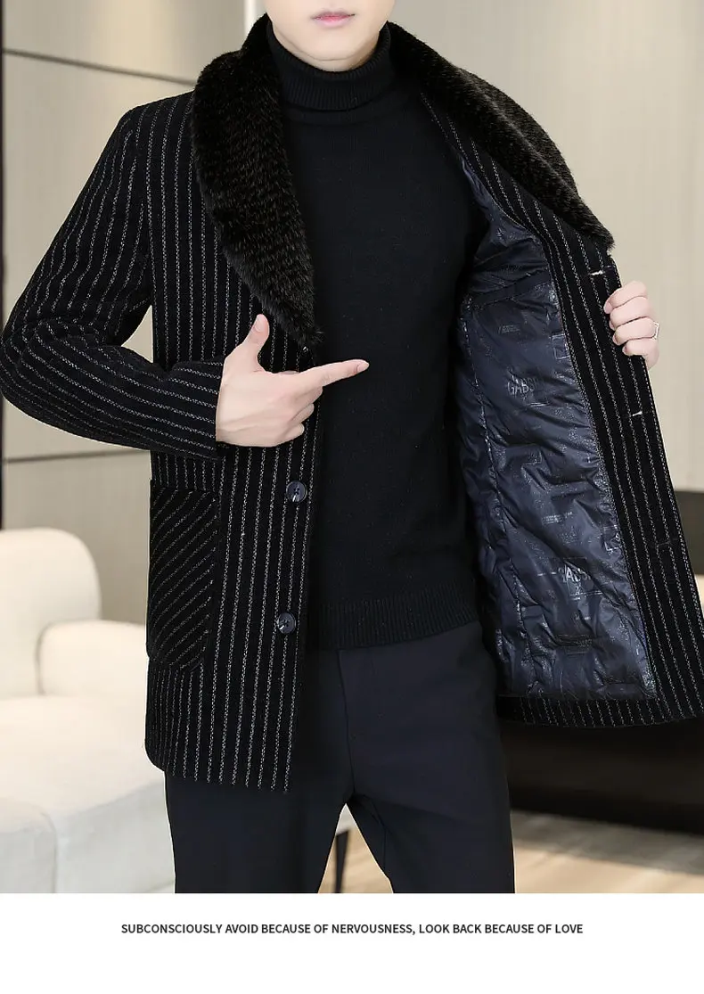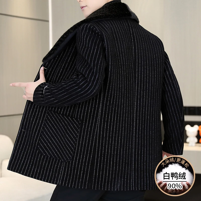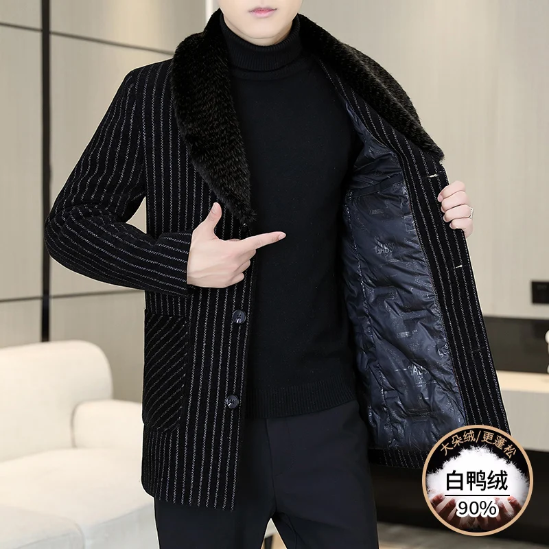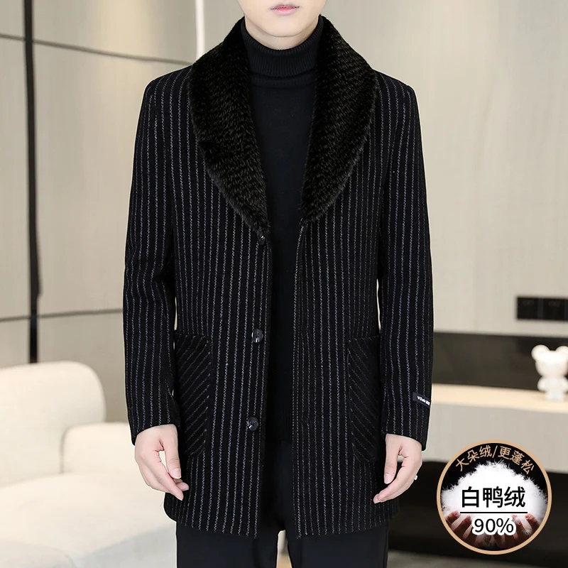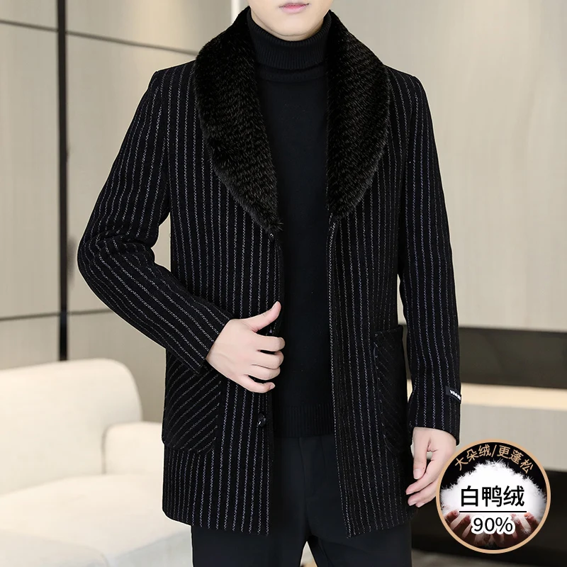 High Quality 90% White Duck Down Luxury Big Fur Collar Overcoats Mens Winter Warm Trenchcoats Gentleman Down Jackets Boss Father