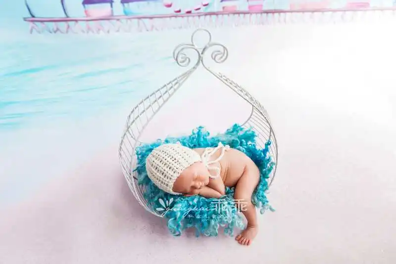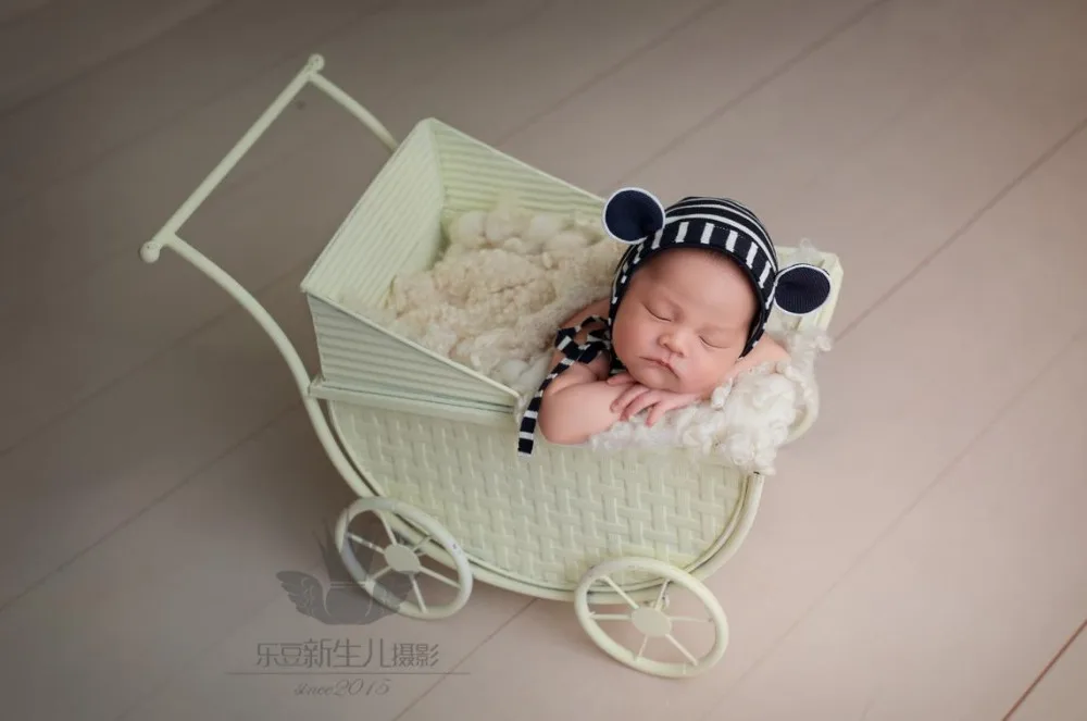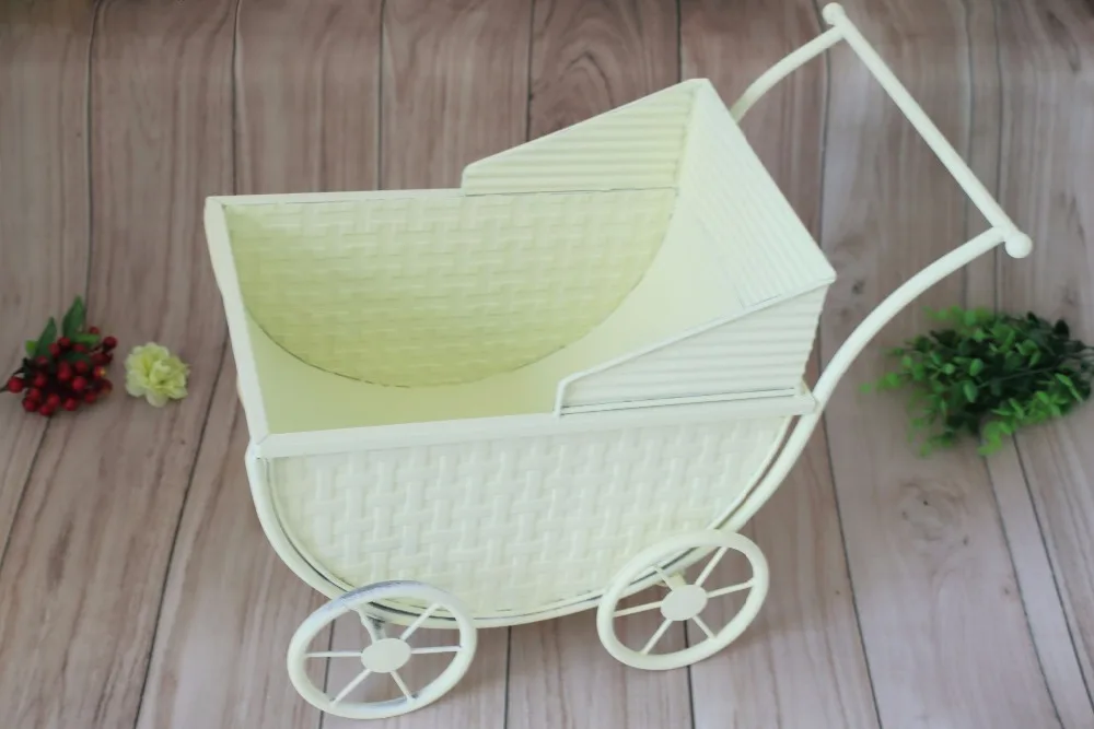 High Quality baby Crib Newborn Cradle Crib Photography Props Newborn Metal Cart Boys iron bed Photo Prop Baby Wheel Cart Gift