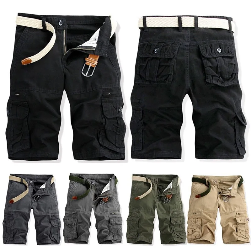 High Quality Cargo Shorts Men Summer Gray 100% Cotton Shorts Male Loose Multi-Pocket Shorts Pans Brand Clothing Solid Short Mans