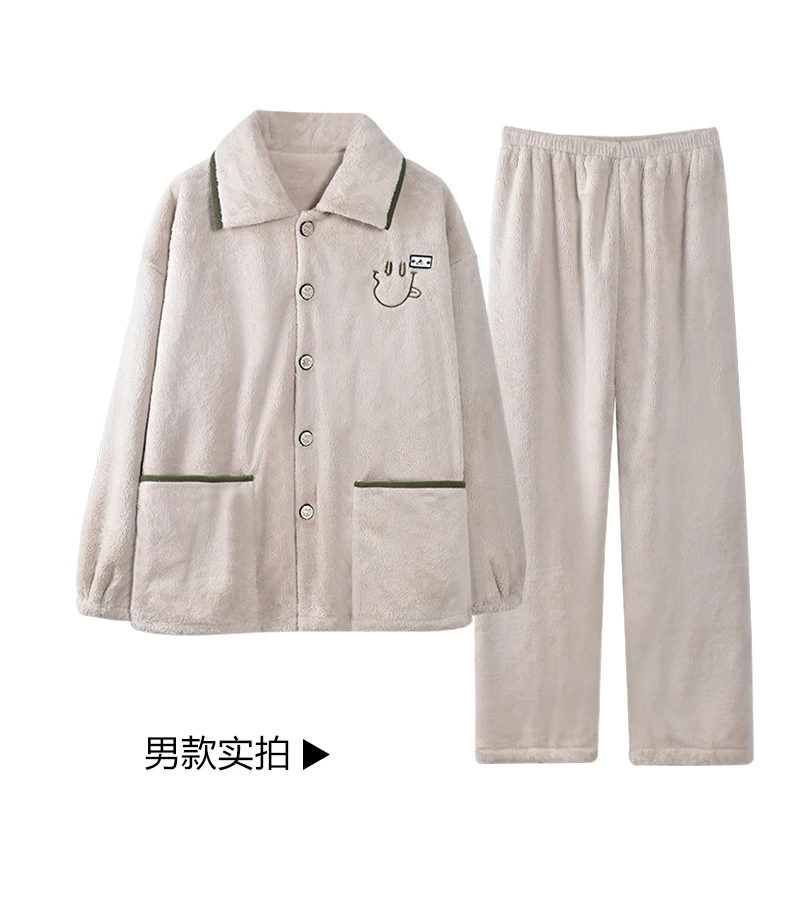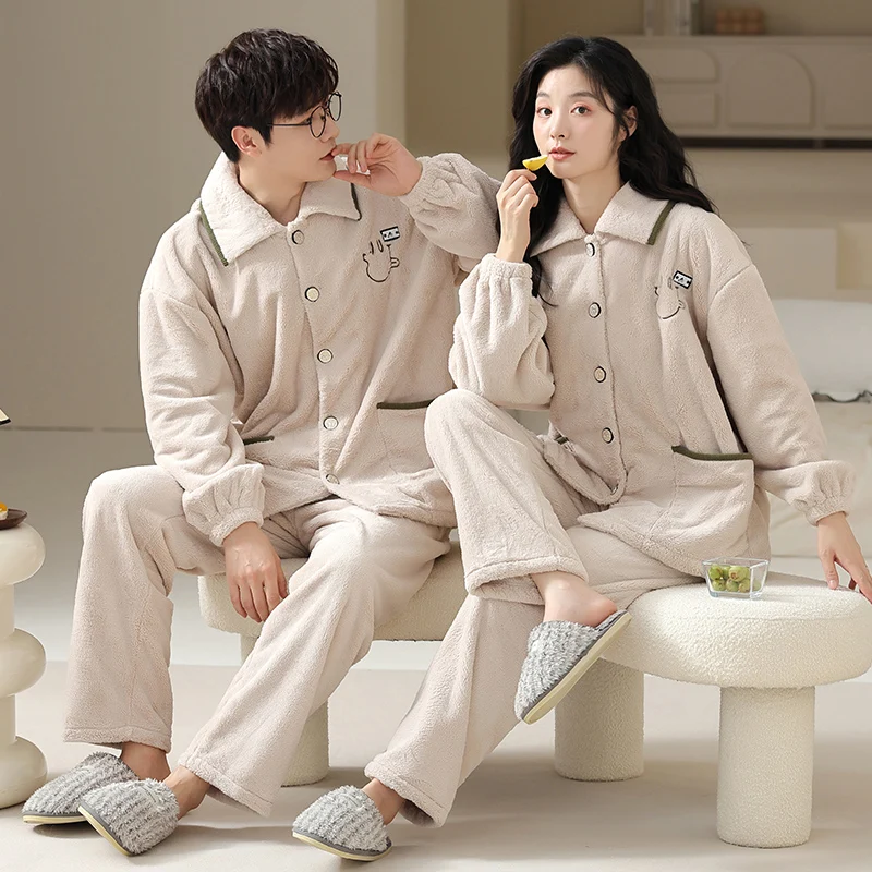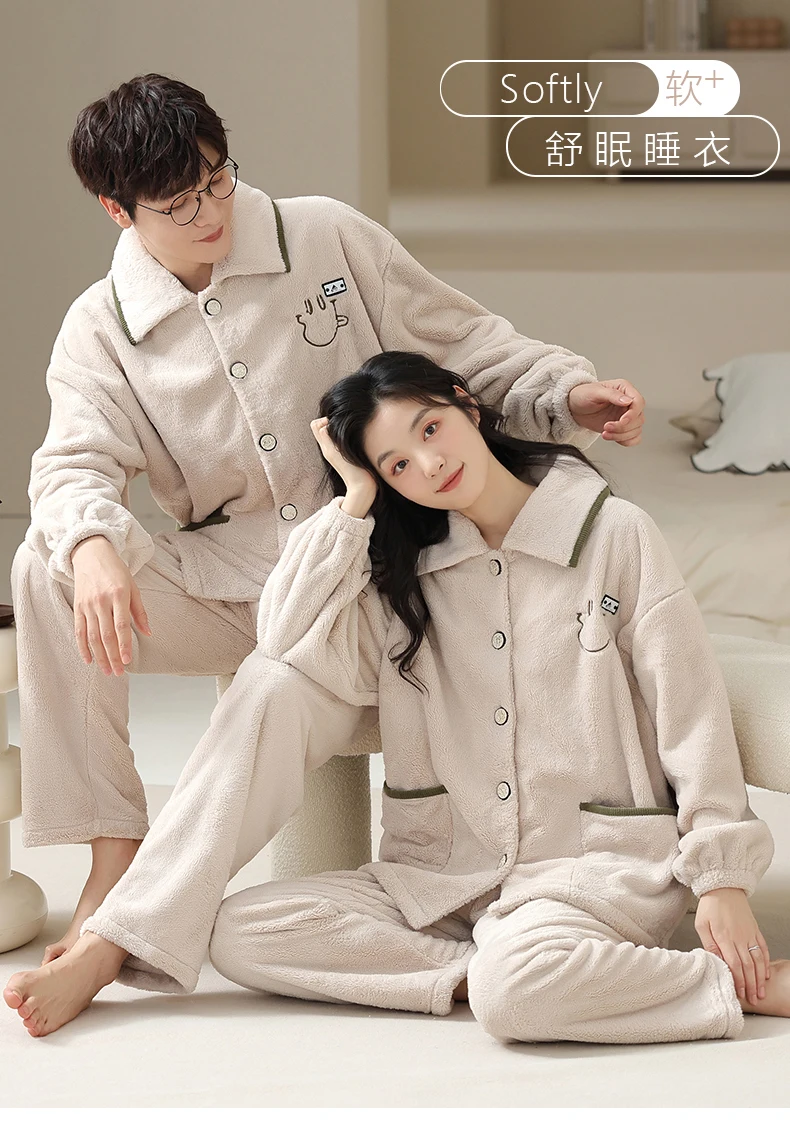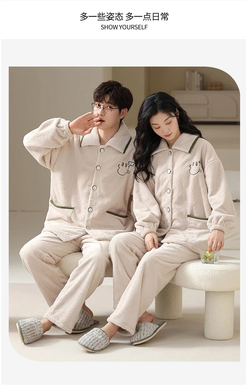 High Quality Couple Pajama Set Thick Warm Men And Women Flannel Sleepwear Casual Homewear Cardigan Turn-down Collar Home Clothes