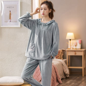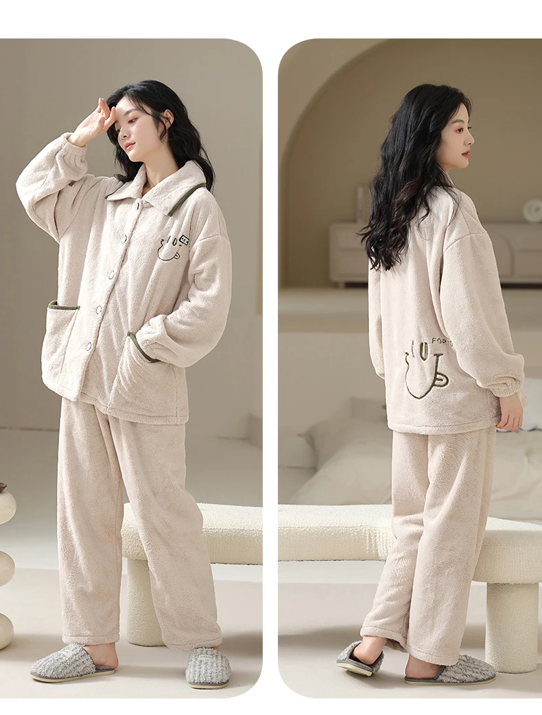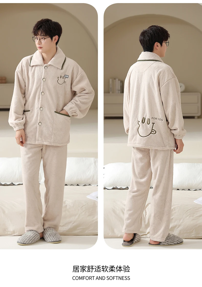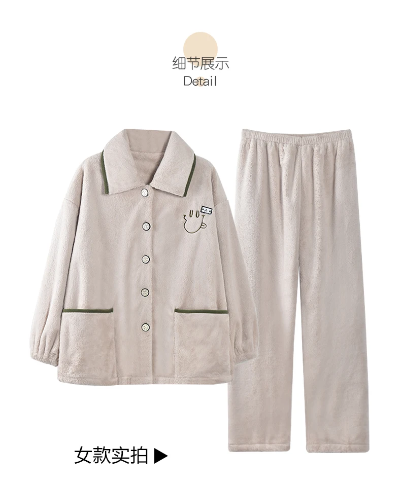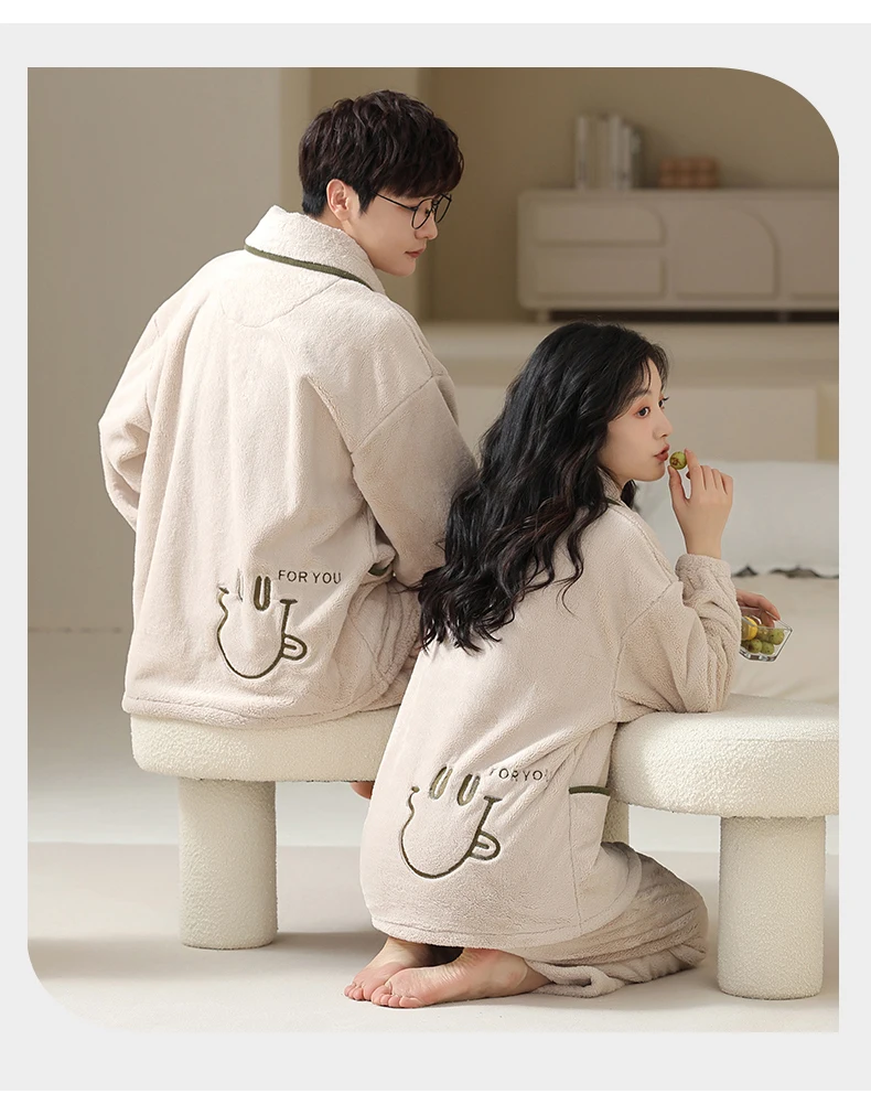 High Quality Couple Pajama Set Thick Warm Men And Women Flannel Sleepwear Casual Homewear Cardigan Turn-down Collar Home Clothes