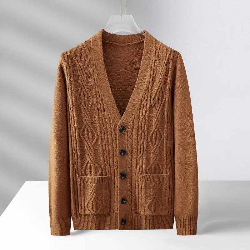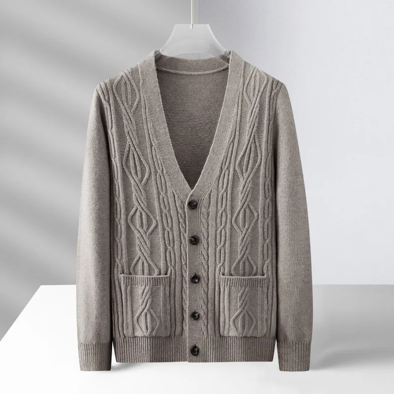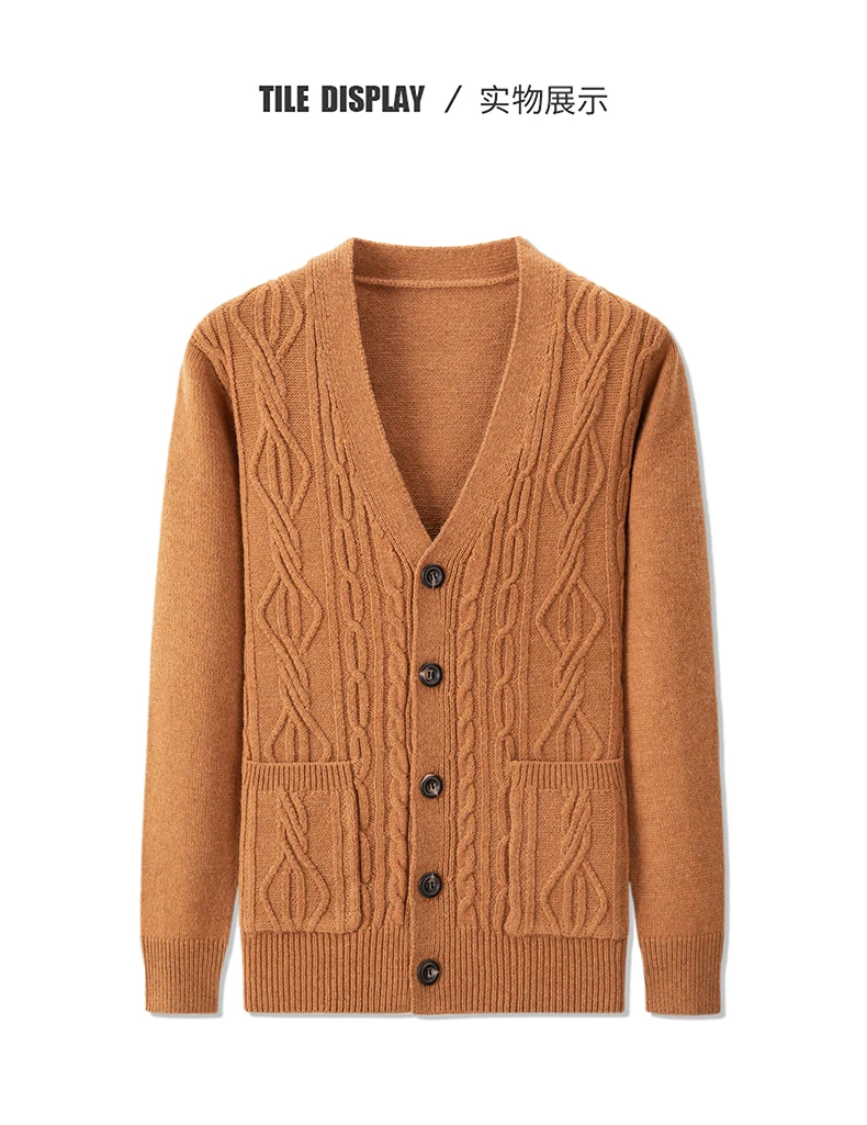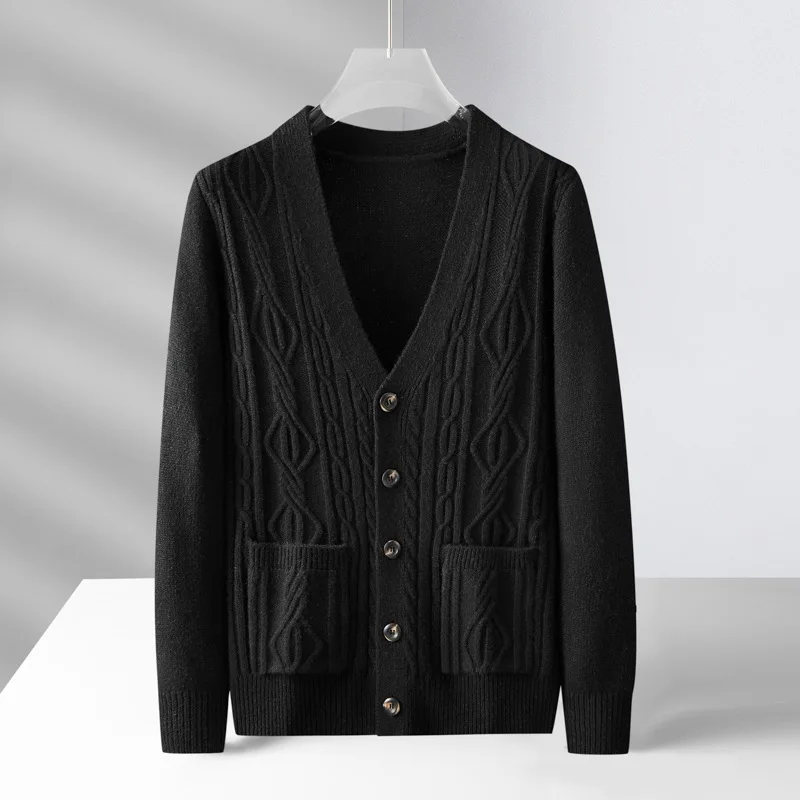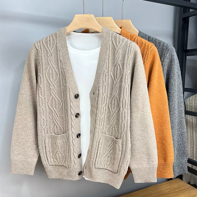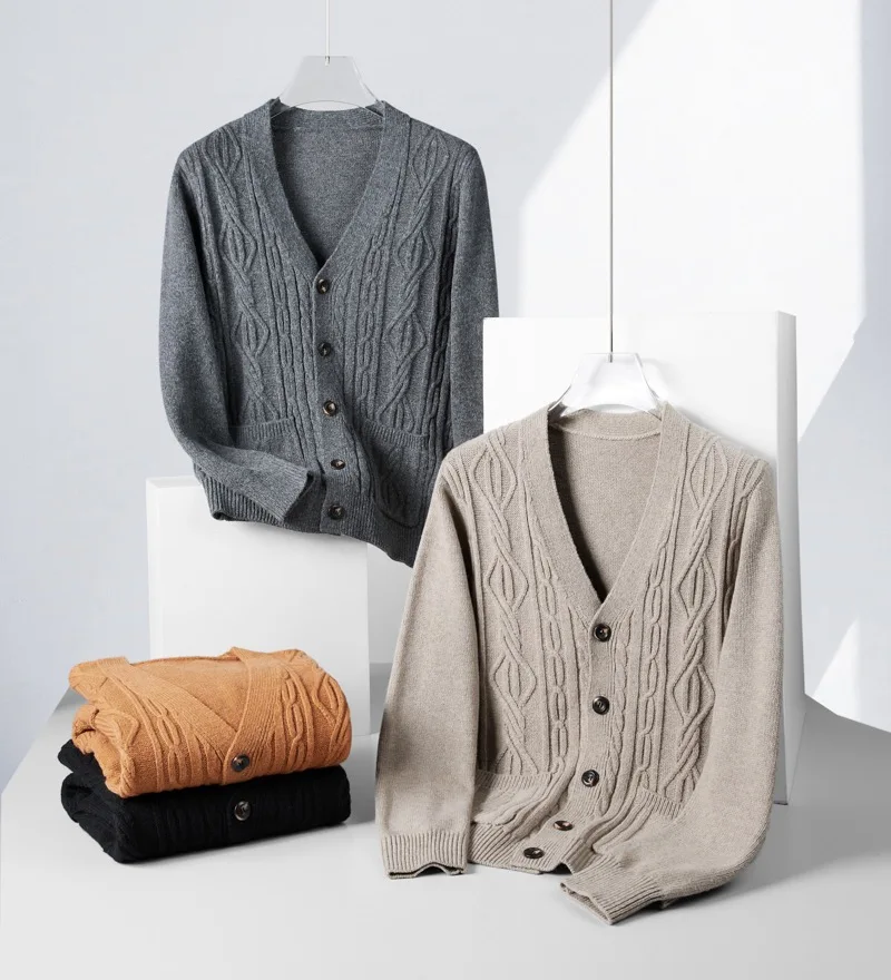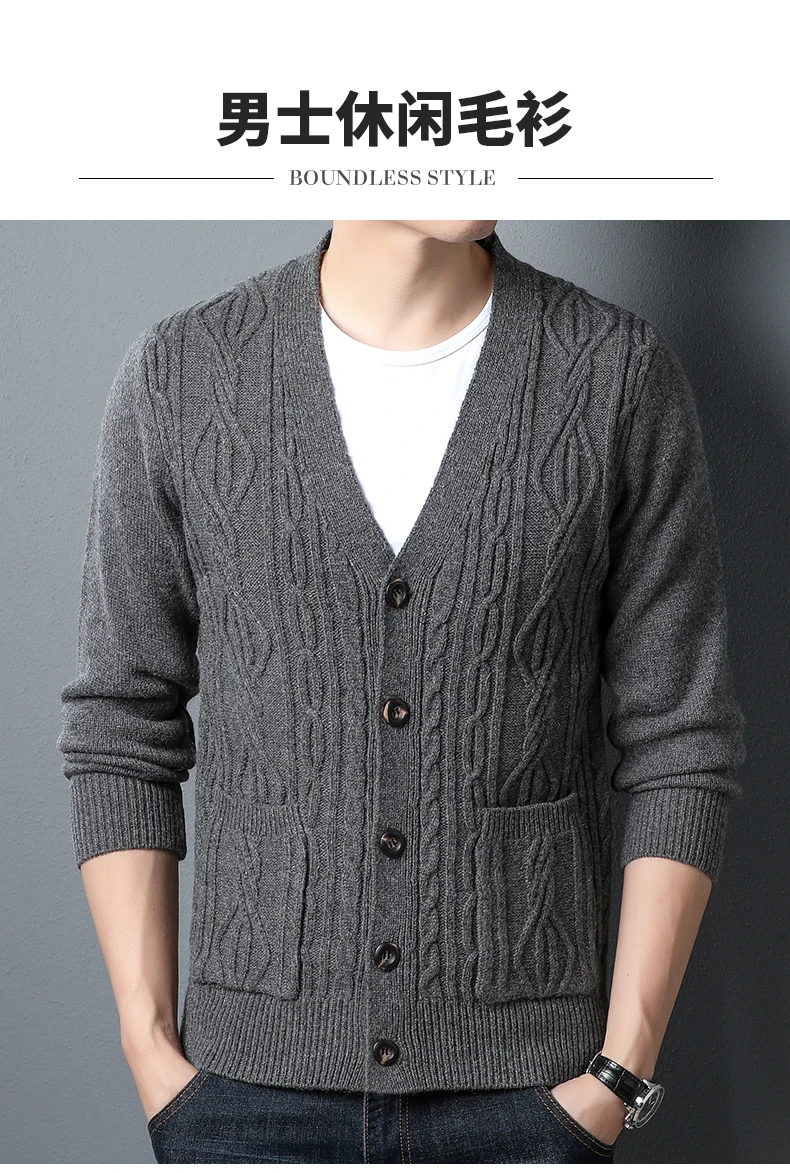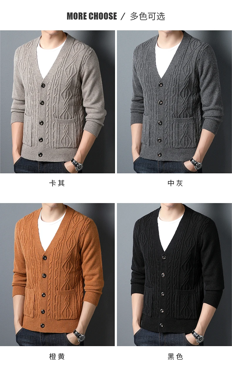 High quality fashion jacquard cardigan sweater men’s autumn new casual solid color top versatile loose knit coat men