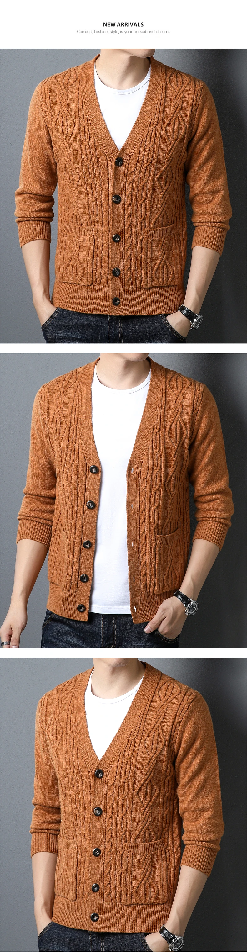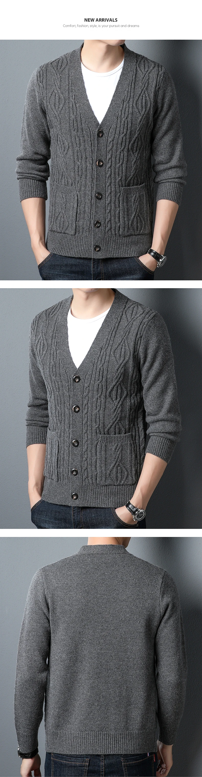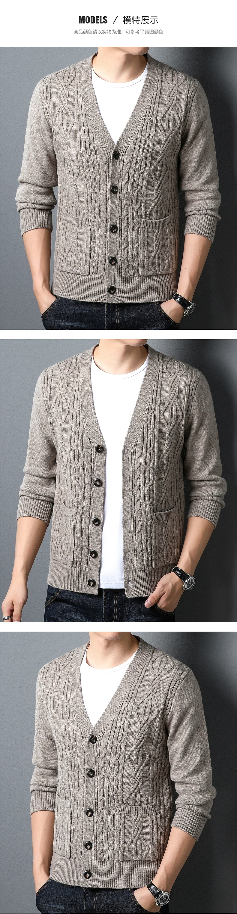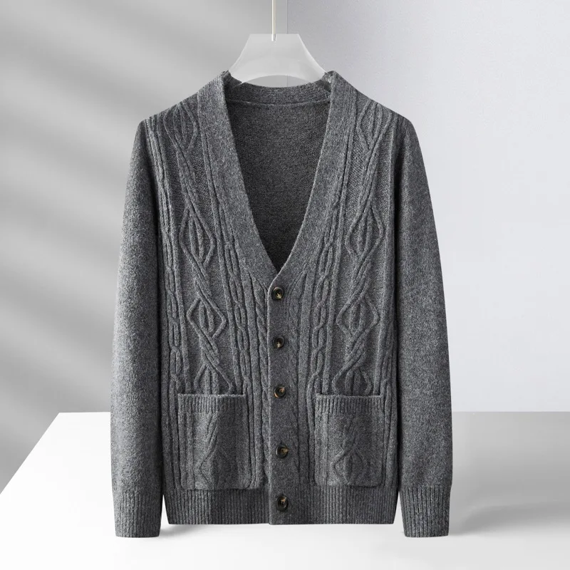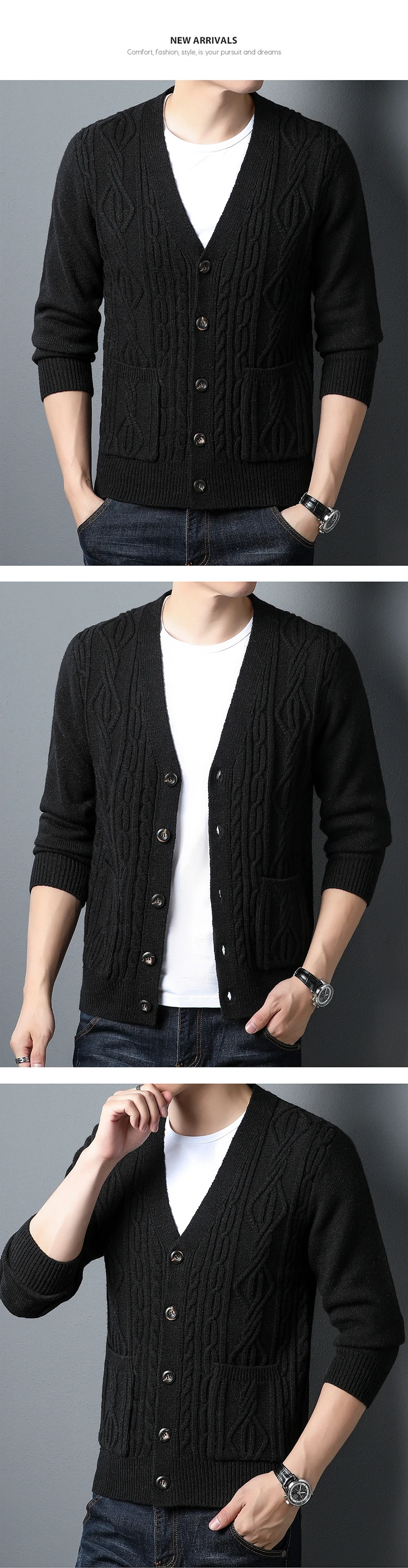 High quality fashion jacquard cardigan sweater men’s autumn new casual solid color top versatile loose knit coat men