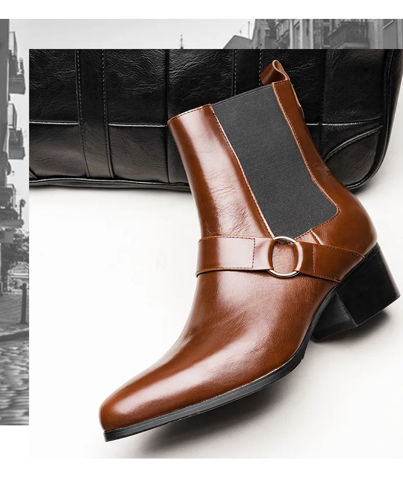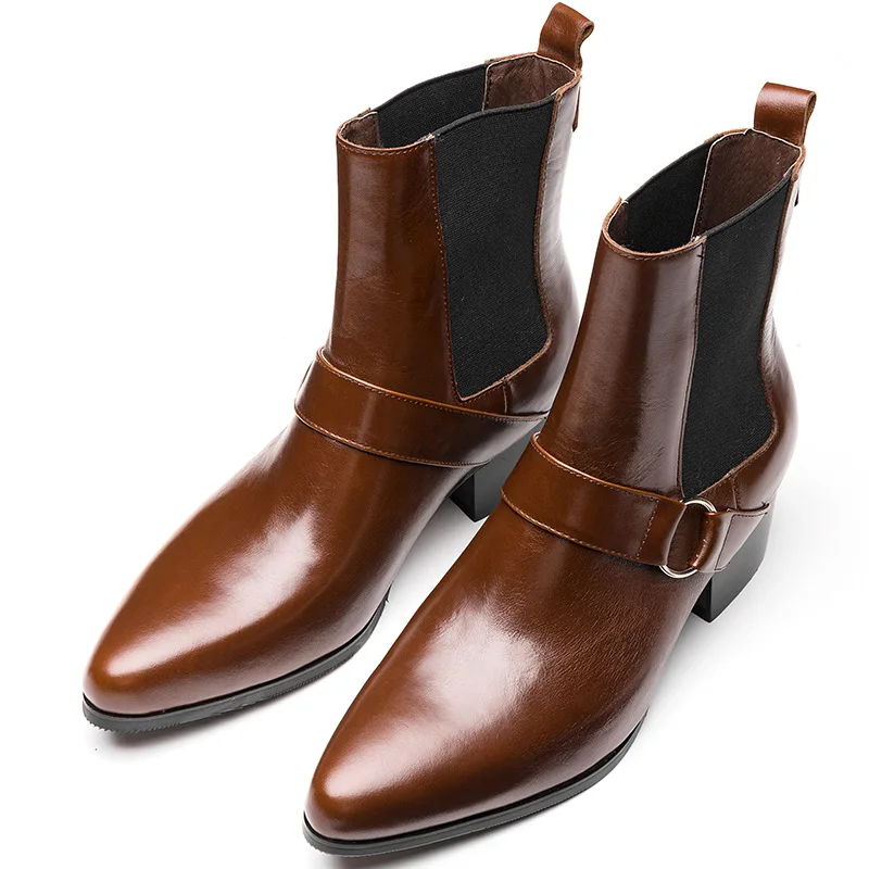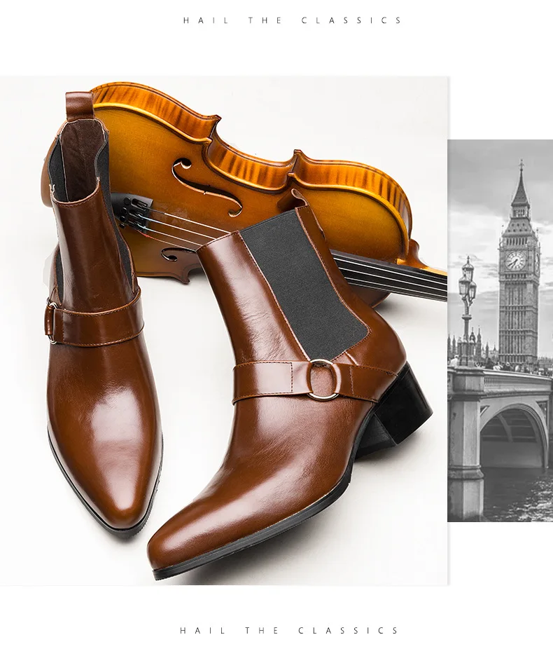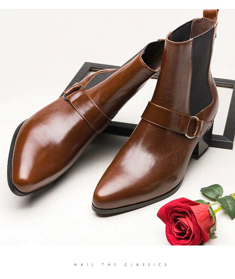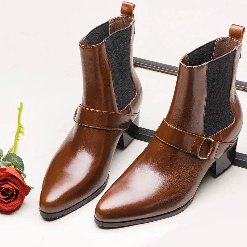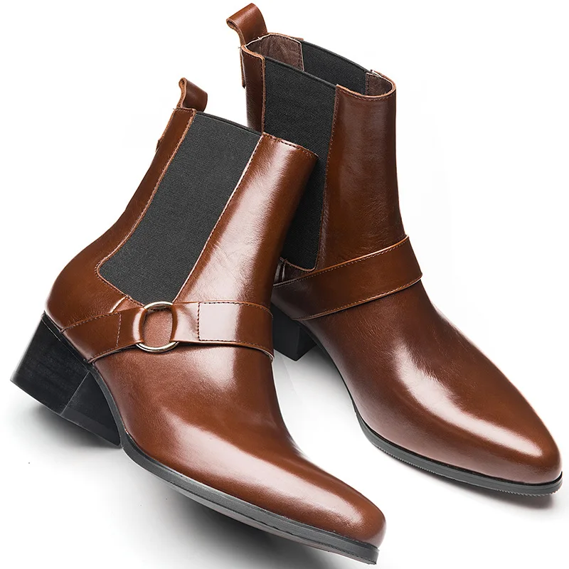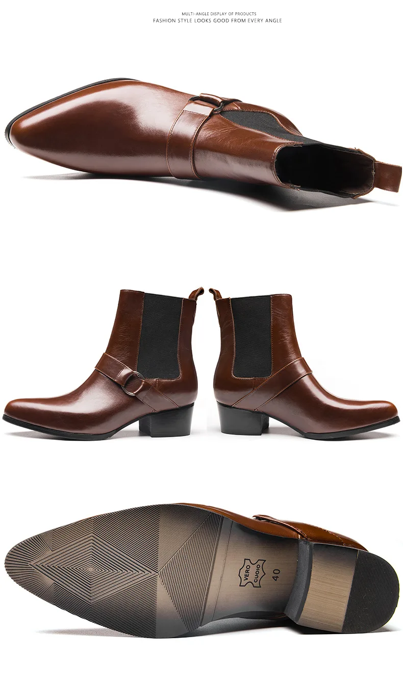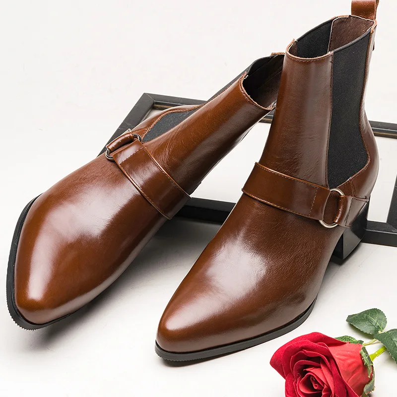 High Quality Fashion Men Ankle Boots Chelsea Formal Dress Leather Shoes Western Boots Cowboy Boots Casual Shoes Brown Boots Man