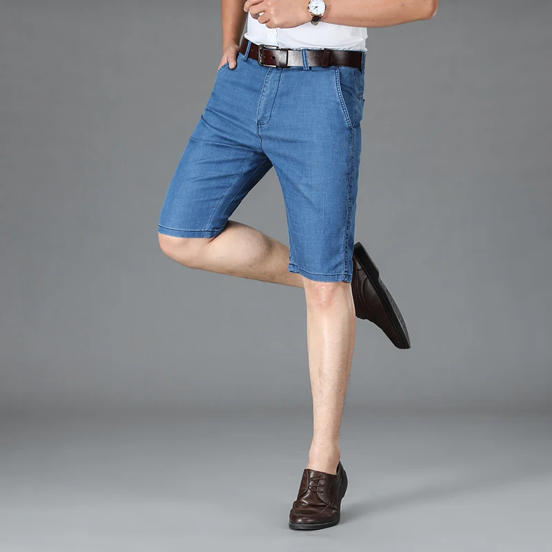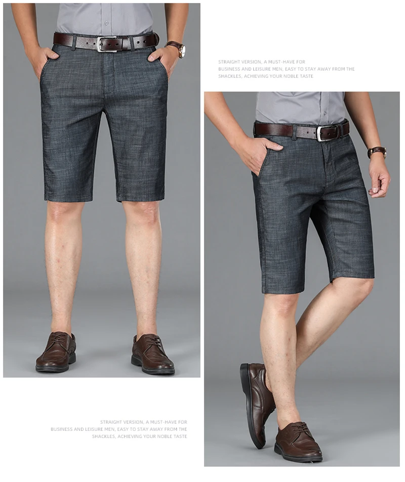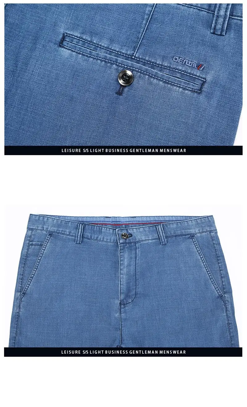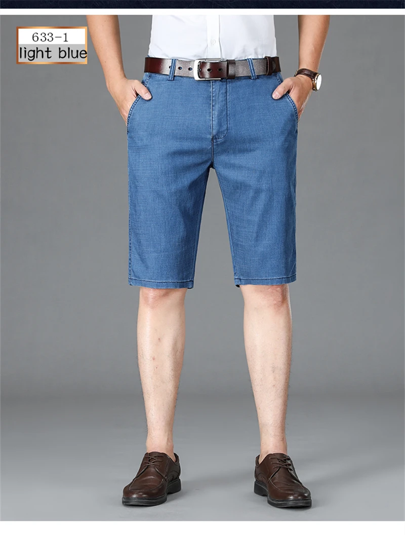 High quality Lyocell fabric Summer Pop Men’s Denim Shorts Business Casual Loose Straight-Leg Stretch Jeans Male Plus Size 40 42
