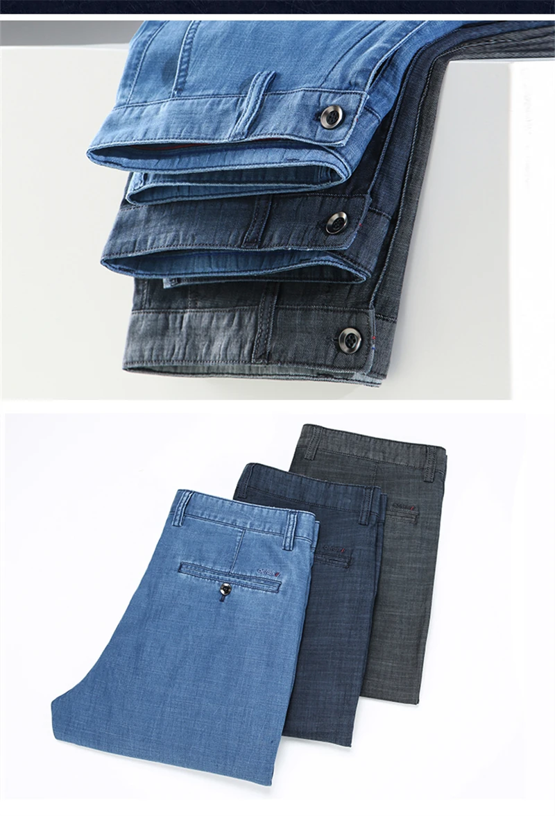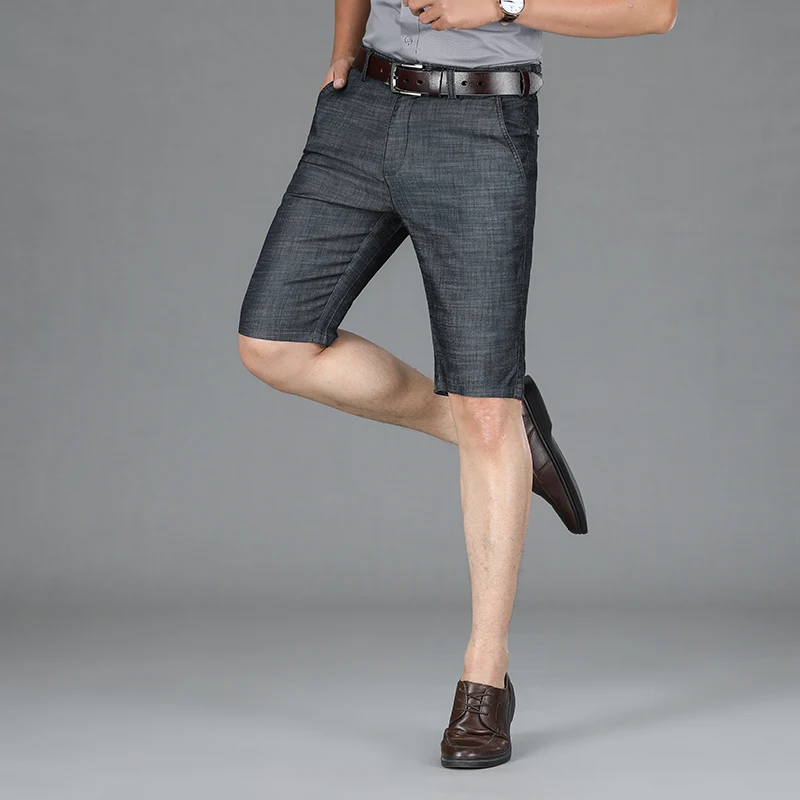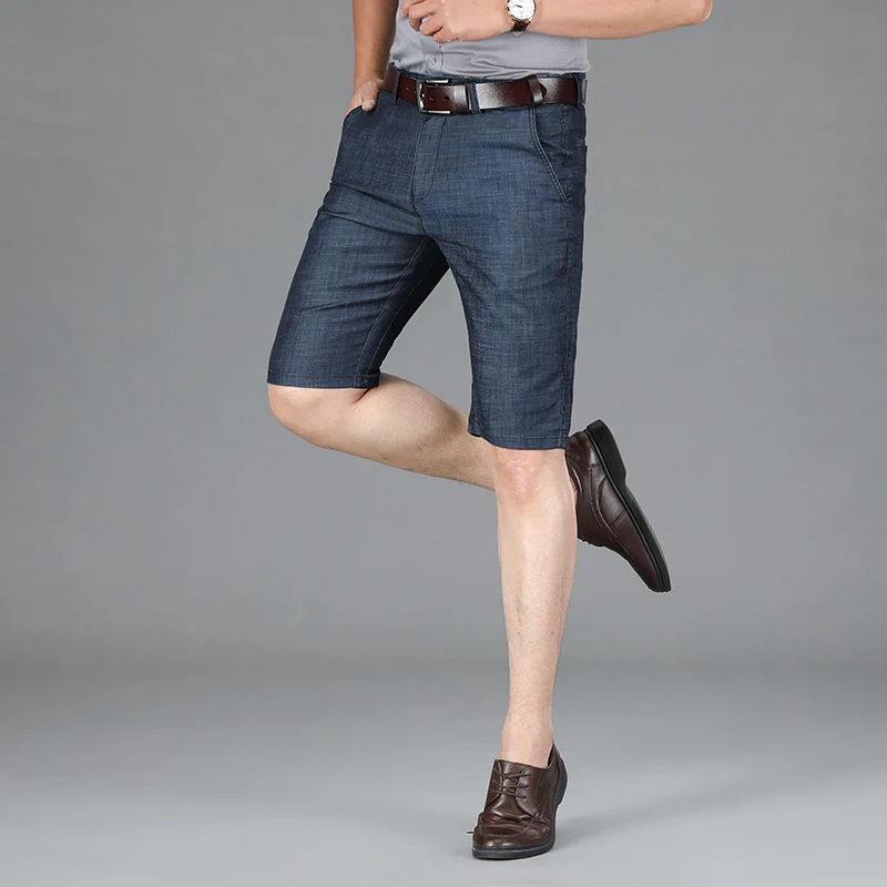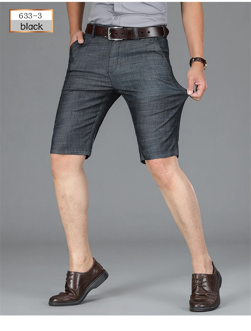High quality Lyocell fabric Summer Pop Men’s Denim Shorts Business Casual Loose Straight-Leg Stretch Jeans Male Plus Size 40 42
