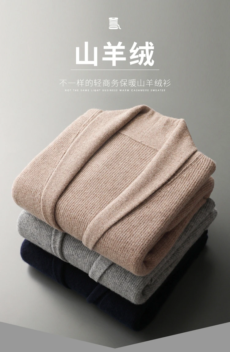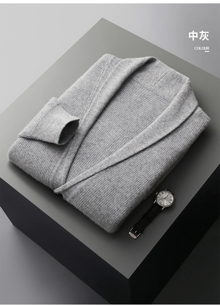 High Quality Thicken Cashmere Sweater for Men Winter Soft Warm Cashmere Sweatercoat Man Shawl Collar Long Sleeve Cardigan